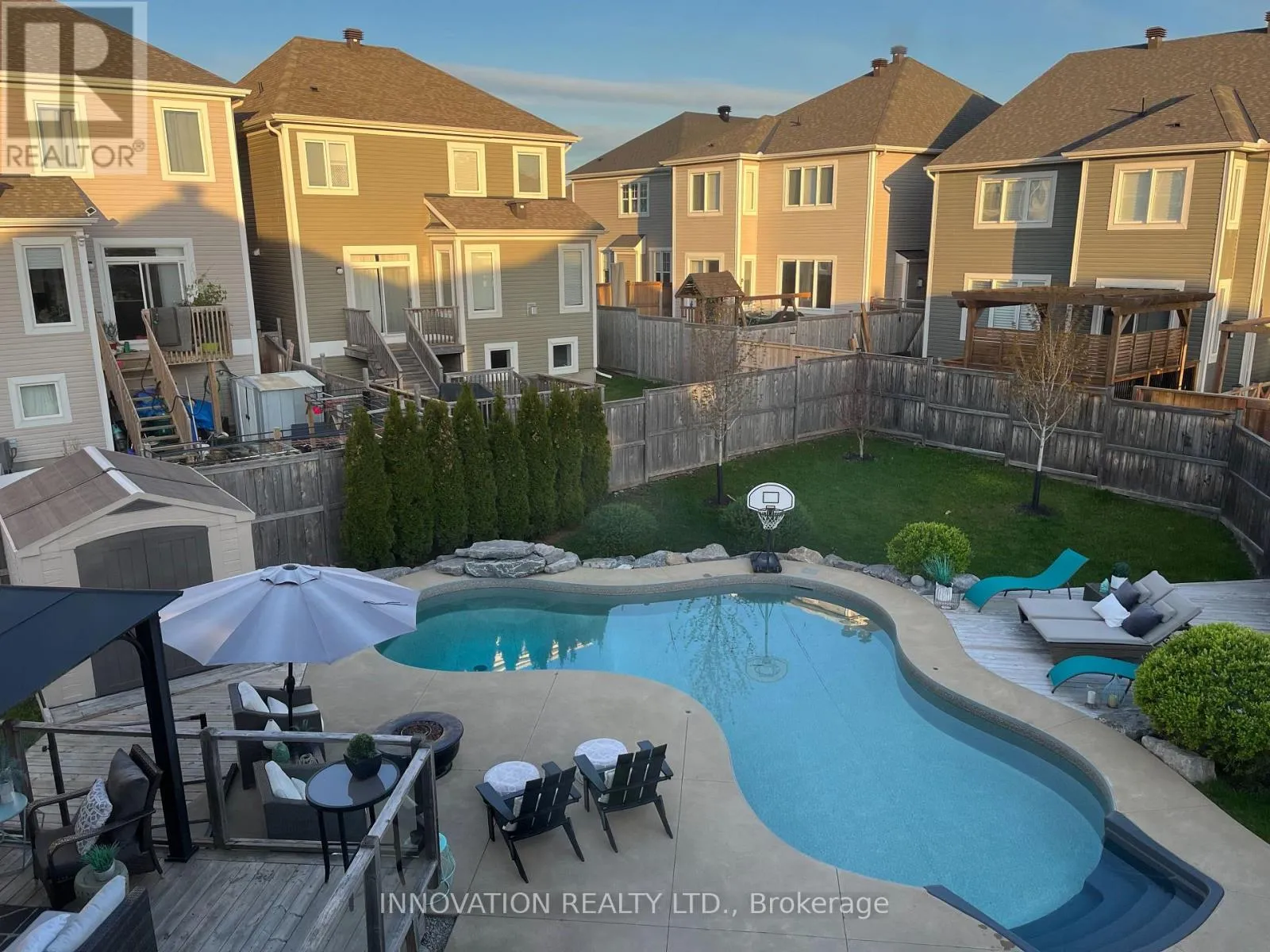 Cross Streets: Huntmar Drive / Maple Grove Road. ** Directions: Highway 417 West to Palladium Drive / Huntmar Drive exit. Turn left onto Huntmar Drive Then Turn right onto Maple Grove Road, then Turn left onto Eucalyptus Circle. #304. Welcome Home to 304 Eucalyptus Circle, an impressive 4-bedroom, 3-bath detached home set on a beautifully groomed and fully fenced lot in the highly sought-after Fernbank Crossing community. This meticulously maintained property offers a bright, open-concept layout with abundant natural light and elegant high-end finishes, including hardwood flooring throughout the main level. The spacious living room features a warm brick gas fireplace, while the separate dining area provides an ideal setting for hosting family and friends. A stunning chef-style eat-in kitchen showcases stainless steel appliances, ample cabinetry, generous counter space, and a convenient breakfast bar, complemented by a main-floor office and powder room for everyday ease. Upstairs, the sunlit primary suite offers a walk-in closet and a luxurious 5-piece ensuite with a jacuzzi tub and separate shower, accompanied by three additional bedrooms and a stylish shared 5-piece bath. Convenient second-floor laundry offers added functionality. The unfinished lower level presents an exciting opportunity to customize the space to suit your lifestyle. Step outside to your private outdoor oasis, complete with a saltwater inground pool, hot tub, double-tiered deck, gazebo, shed and a fully fenced yard that creates the perfect backdrop for entertaining or unwinding in total tranquility. An attached 2-car garage adds comfort and practicality to this exceptional home. Located in an ideal pocket of Stittsville, this charming suburban community blends small-town warmth with city convenience, offering access to multiple school boards, OC Transpo routes, the Queensway, and a wide range of nearby amenities including the Ottawa-Carleton Trailway, Canadian Tire Centre, Tanger Outlets, scenic walking and cycling paths, recreation facilities, sports fields, dog parks, and diverse shopping and dining options. (id:27476)