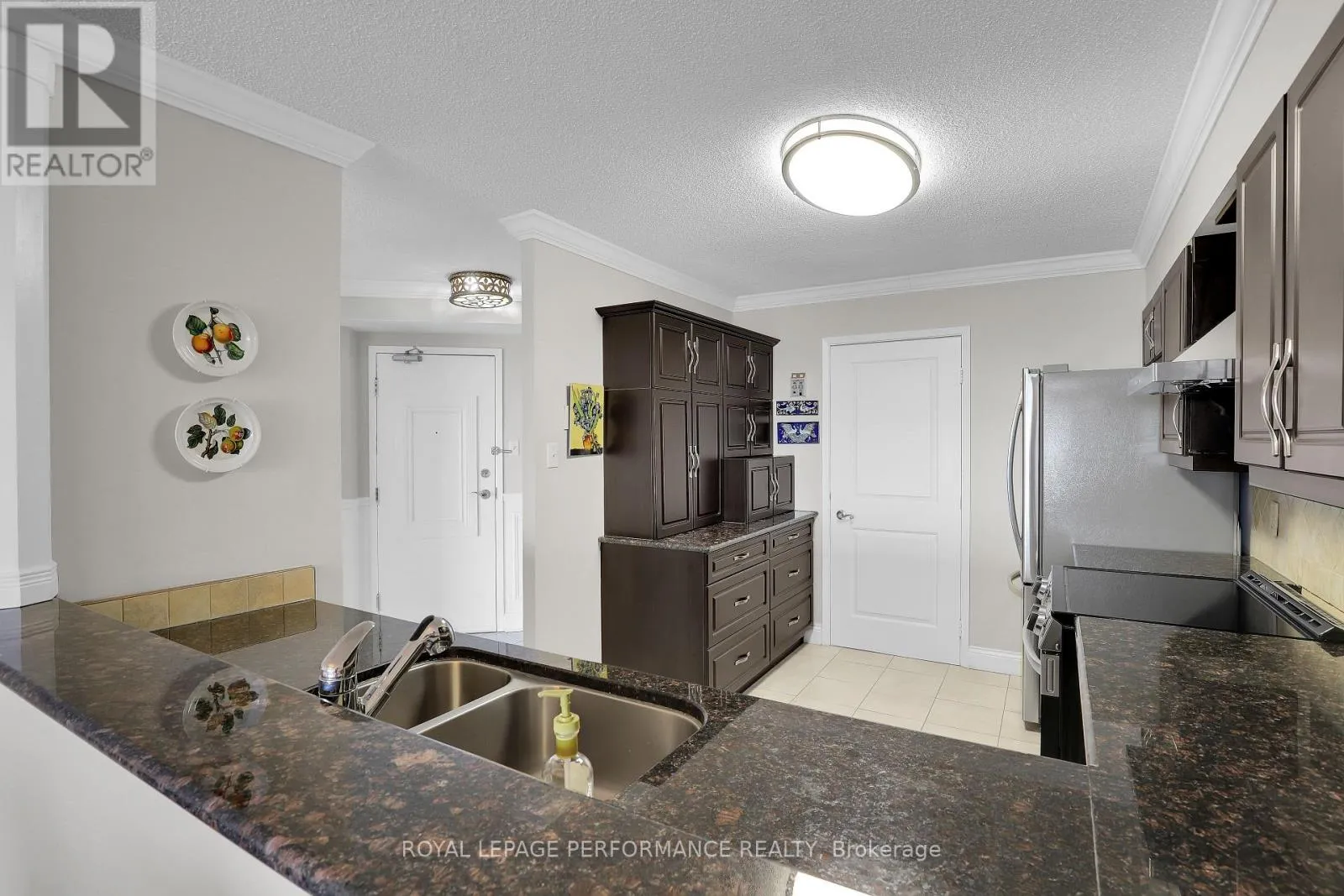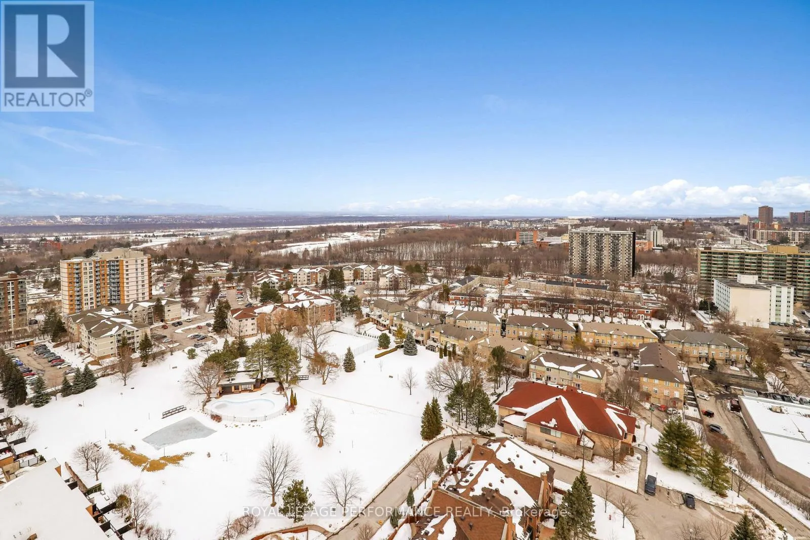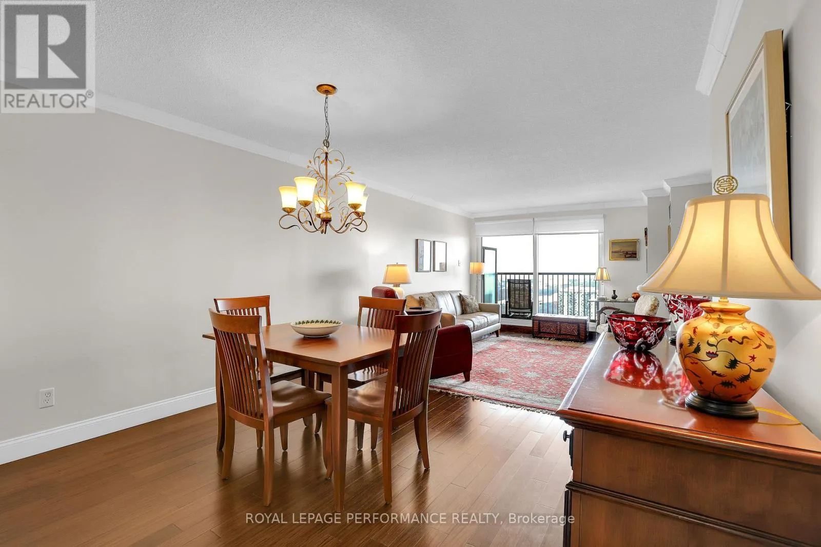 Cross Streets: St Laurent and Montreal Rd. ** Directions: St Laurent past Montreal Rd. 955 sq ft renovated one-bedroom, one-bathroom condo set within beautifully landscaped grounds with 27th-floor river views. Move-in ready and updated throughout. The renovated kitchen features dark wood cabinetry, granite countertops, stainless steel appliances, ample drawers, and a large pantry, finished with tile flooring and backsplash. The kitchen opens to a spacious living and dining area, creating a functional great-room layout ideal for everyday living and entertaining. Large windows and balcony access provide excellent natural light and showcase river and grounds views. The generous primary bedroom offers expansive windows and a walk-in closet. The updated bathroom includes a designer vanity and modern mirror. Building amenities include 24-hour security/concierge, car wash bay, indoor and outdoor pools, sauna, exercise gym, tennis, basketball, and squash courts. Condo fees include all utilities - electricity, heating, and water. Conveniently located within walking distance to shopping, transit, restaurants, and everyday amenities. Well-maintained building and a move-in ready suite with great views. (id:27476)