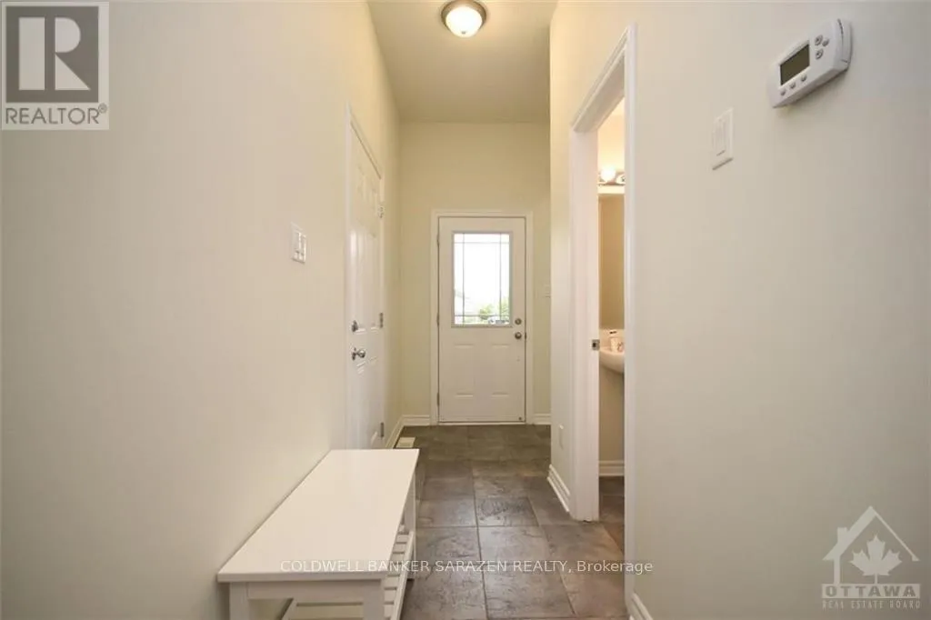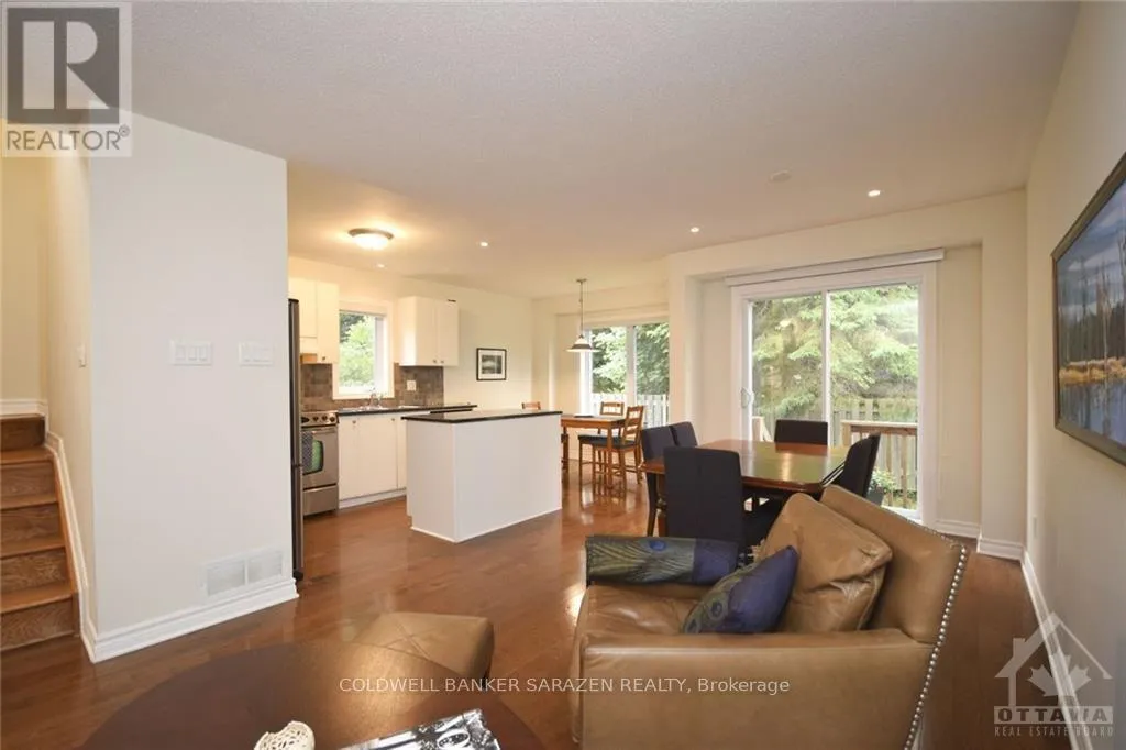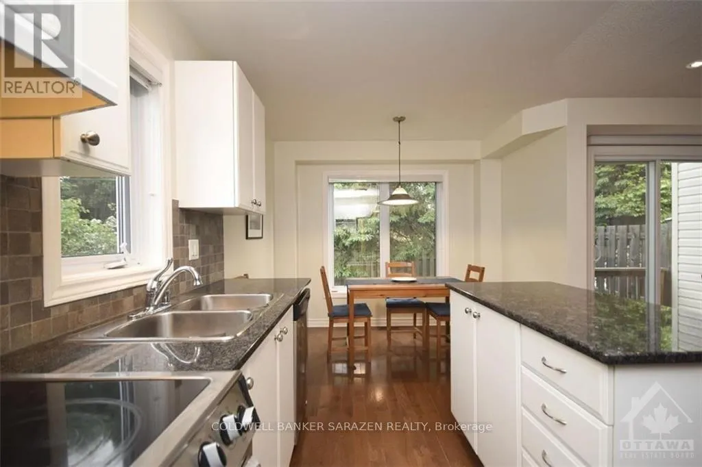 East on Montreal road, right on Elwood Street, left on Crownhill Street, left on Steel Street, right on Marrissa Avenue. Impressive end-unit Minto 3-Bedroom townhome with prime oversized lot. Modern open-concept design with rich oak hardwood flooring on main level, stairs, and second floor. Elegant living room and dining room. Sun-filled eat-in kitchen with modern white cabinetry, and island. Granite counters, and slate backsplash. Window in kitchen with view of park and S/S appliances. Patio doors from living and dining room extends your living to the outdoors. Primary bedroom with walk-in closet and en-suite bathroom. Two other bedrooms that are a good size. Main 4-piece bathroom. Family room with gas fireplace. Freshly painted throughout. Tops in Location: CSIS, NRC, CSEC, OC/LRT Transpo, Shopping, School and Parks nearby., Flooring: Hardwood, Flooring: Linoleum, Flooring: Carpet Wall To Wall (id:27476)
