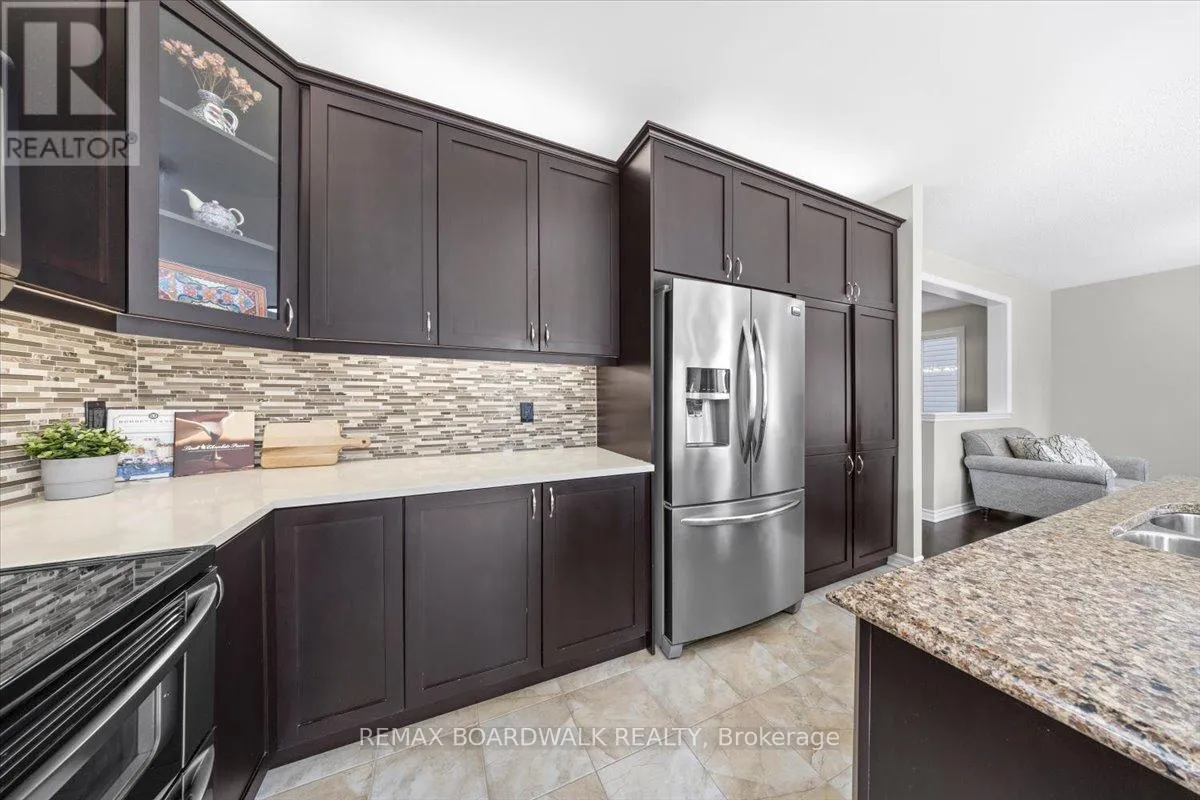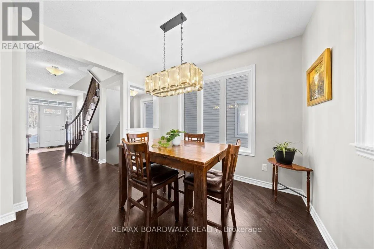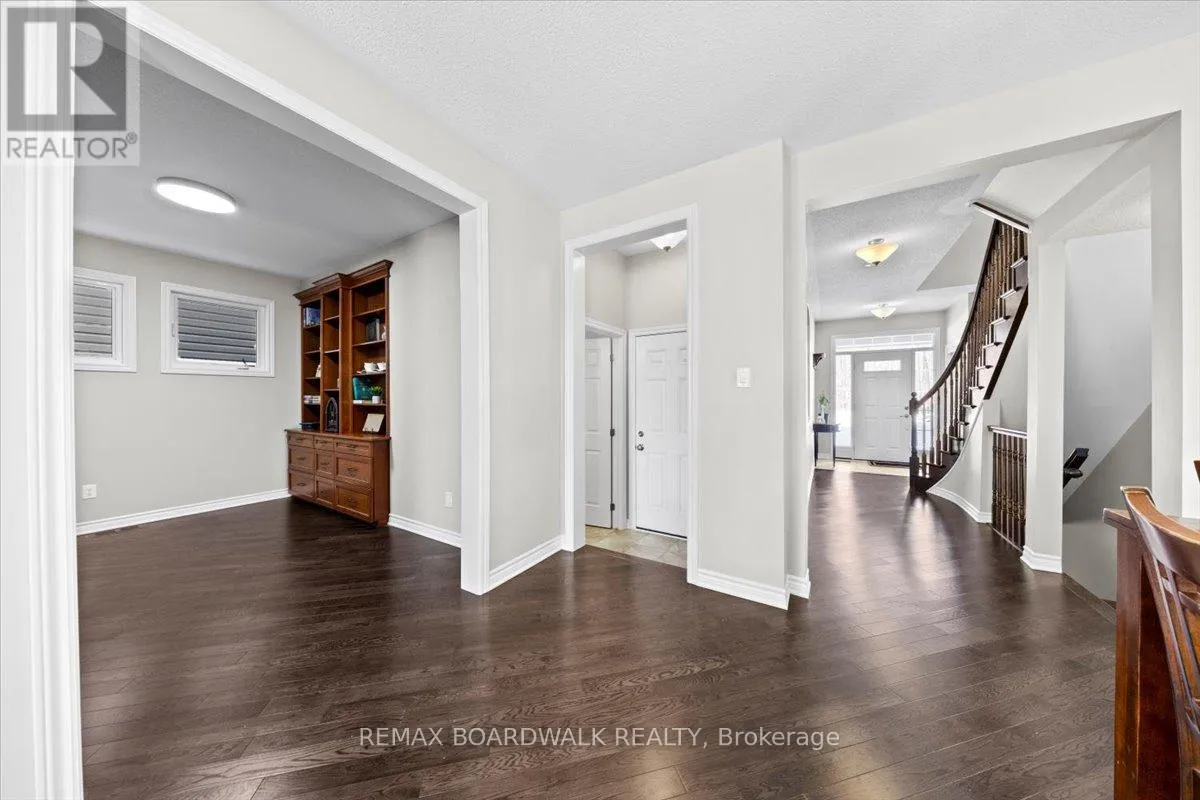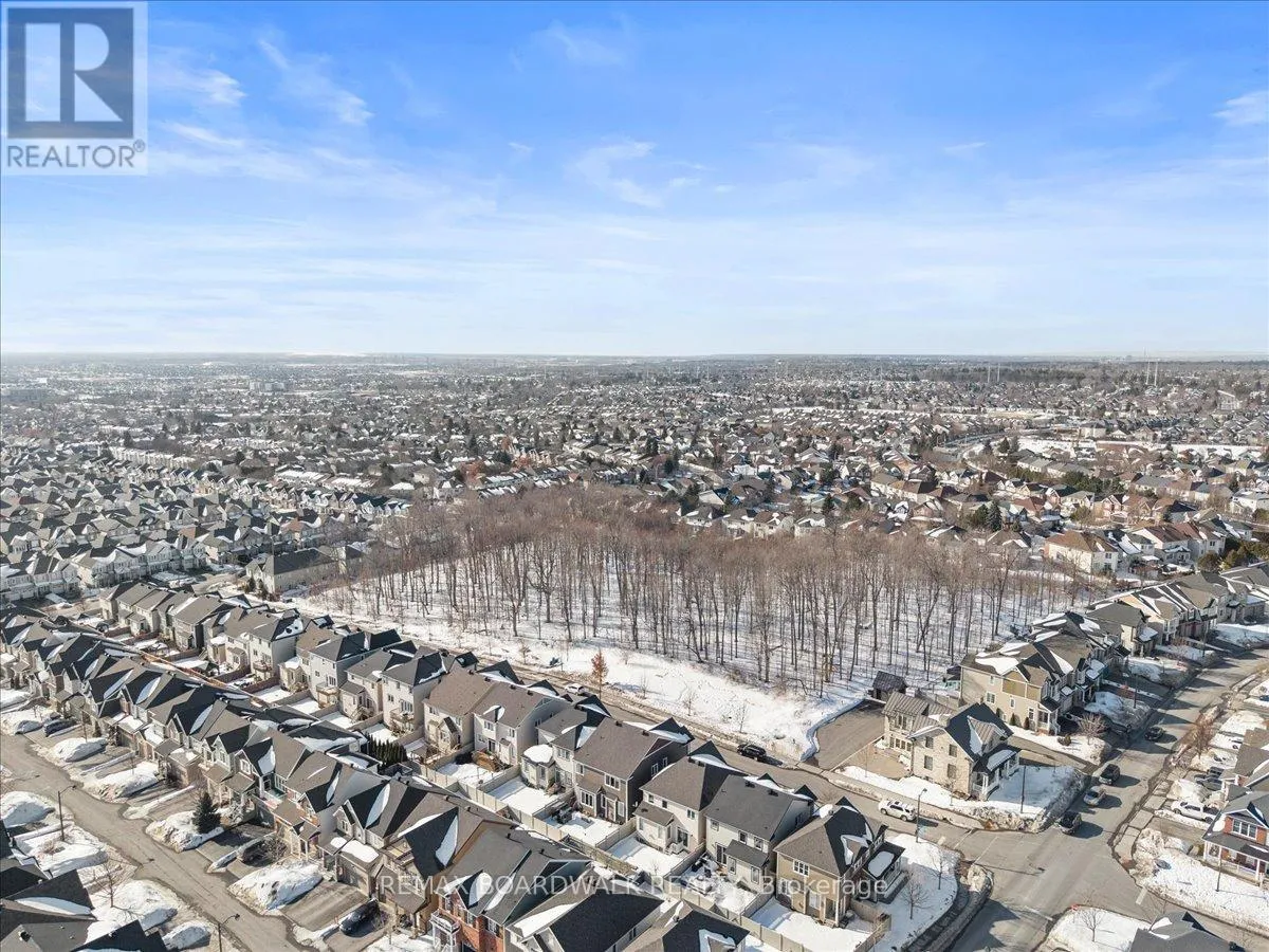 Hopeside to Acceptance right on Pinelock Welcome to this stylish 4-bedroom single-family home, in Bridlewood. Positioned across from a picturesque wooded park, you'll enjoy beautiful views and added privacy with no direct front neighbors. Step inside to a bright, open-concept layout featuring 9-foot ceilings and hardwood floors throughout the main level. The spacious living and dining areas flow seamlessly into the open-concept kitchen; ideal for everyday living and effortless entertaining. A private workspace, just off the dining room, offers the perfect setup for working from home or managing busy family life. Upstairs you'll find four generous bedrooms, plus a versatile bonus room complete with a loft and its own balcony; a fantastic retreat for movie nights, a playroom, or a cozy lounge space. Convenient second-floor laundry makes day-to-day living easy and efficient. Step outside to your private backyard oasis, designed for hosting and comfort. The stamped concrete walkway and backyard patio add curb appeal and function, creating the perfect setting for summer BBQs and gatherings with family and friends. Thoughtfully designed with modern families in mind, this home offers space, style, and a prime location in one of Kanata's most desirable communities. (id:27476)