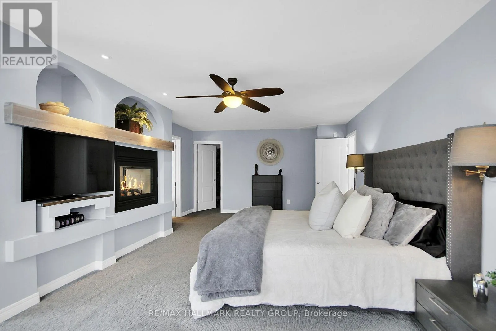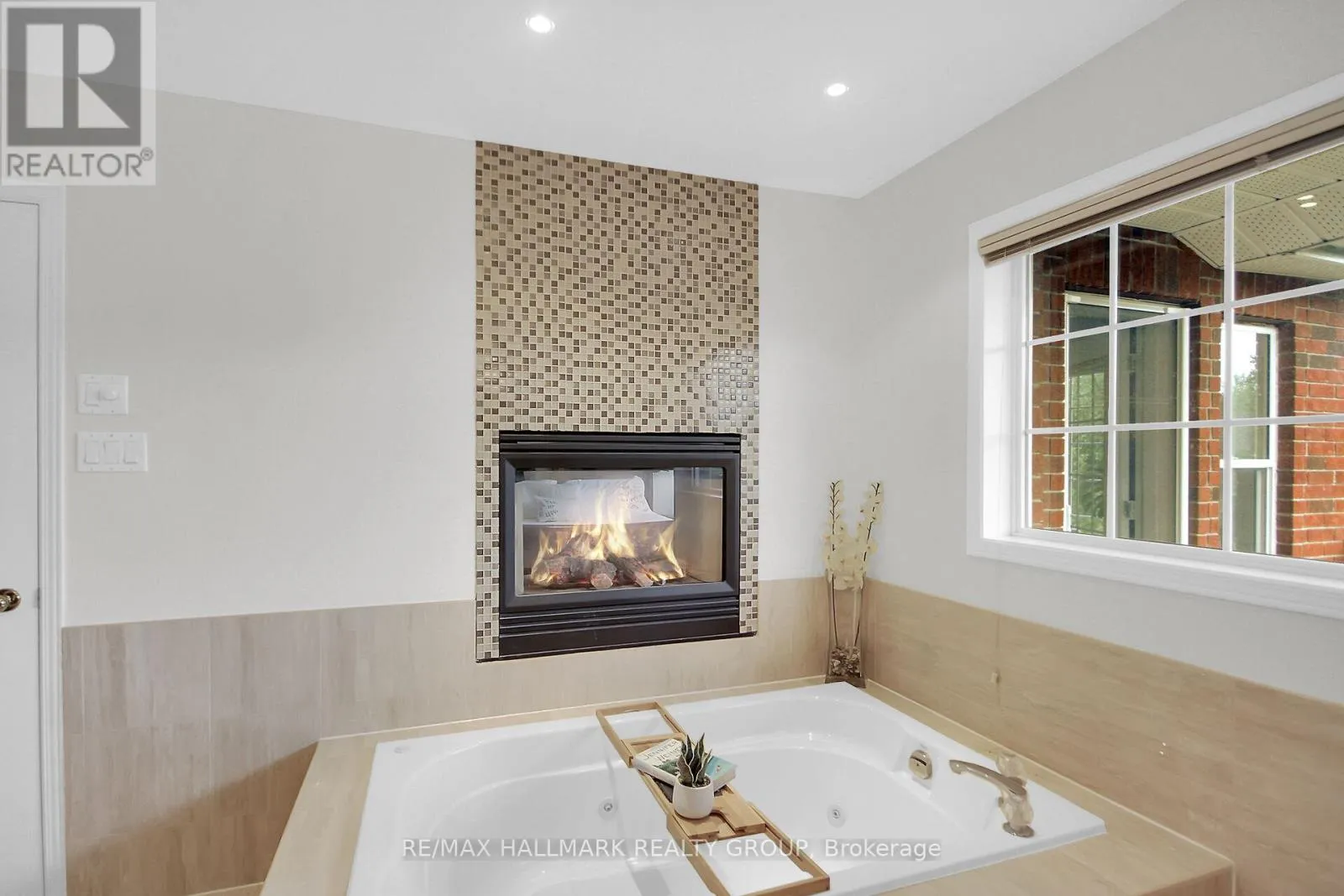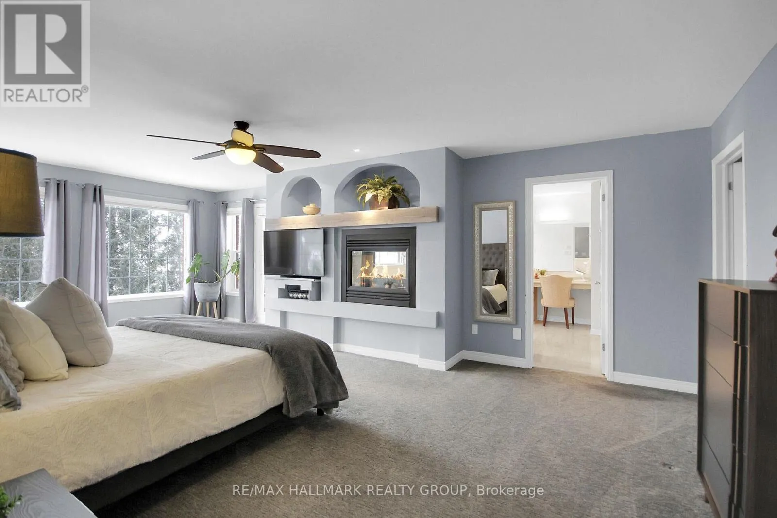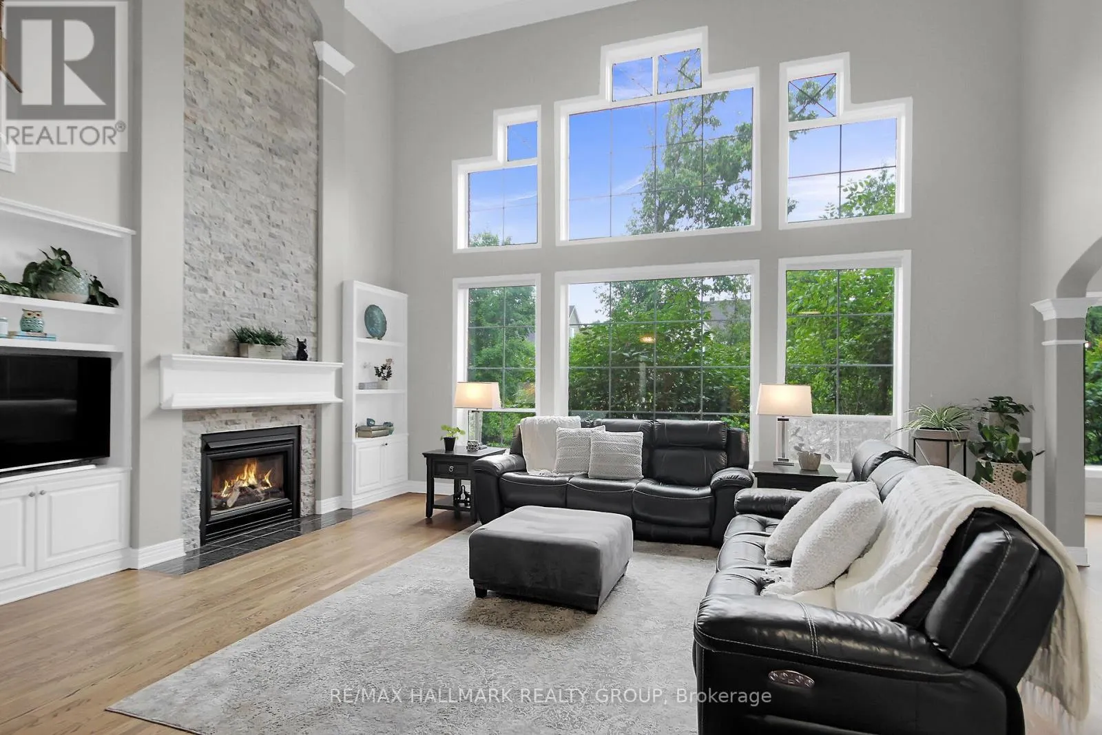 Cross Streets: Brae Cres. & Cyrpess Gardens. ** Directions: Stittsville Main St. to Brae Cres., right on Beechgrove Gardens. Open House Sunday March 15, 1-3. Welcome to 13 Beechgrove Gardens, an elegant all-brick home set on a rare, expansive, and private lot in one of Stittsville's most sought-after neighbourhoods. Surrounded by lush landscaping, this exceptional property features a tranquil pond, mature trees and greenery, a 9-zone irrigation system, and a beautiful three-season sunroom, all complemented by a three car garage and a stunning interlocked driveway, walkway, and front porch.Step inside to a grand foyer that opens to a breathtaking open to above living room with soaring 20-foot ceilings, walls of windows, and a striking fireplace that fills the space with natural light and warmth. The main level also offers a private office, powder room, and a welcoming family room with a second fireplace. A formal dining room with a butler's pantry connects seamlessly to the gourmet kitchen, complete with a walk-in pantry, bright eating area, and convenient mudroom/laundry with a secondary staircase leading to the soundproof family room above the garage. The sun-filled three-season room with hot tub provides the perfect place to relax while overlooking the beautifully manicured backyard. Upstairs, you'll find four spacious bedrooms, including a luxurious primary retreat featuring a private balcony, a two-sided fireplace shared with the spa-inspired ensuite, and a generous walk-in closet. The second bedroom includes its own private ensuite, while bedrooms three and four share a stylish Jack-and-Jill bathroom.The finished lower level offers the ideal space for both entertaining and relaxation, featuring oversized windows, a large recreation area, a fifth bedroom currently used as a games room, and plenty of additional storage.This remarkable home offers the perfect blend of luxury, comfort, and functionality-a rare opportunity to own a truly special property in a prime Stittsville location, ideal for both family living and entertaining. FURNACES AND AC'S UPDATE SEPT 2025 (id:27476)