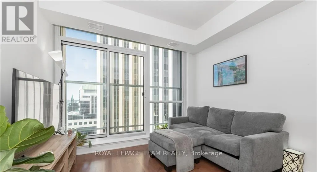 Cross Streets: Bank St/Nepean St. ** Directions: North on Bank Street, Right on Nepean. Welcome to upscale downtown living on the 25th floor, where sweeping views span the city skyline, the Gatineau Hills, and Ottawa's iconic Peace Tower. This bright, open-concept suite features rich hardwood flooring throughout the main living area and ceramic tile in the kitchen and bathroom, creating a stylish and functional space. The modern kitchen offers ample cabinetry, quality finishes, and six stainless steel appliances, seamlessly connecting to the generous living and dining area-perfect for everyday comfort or entertaining guests. Step out onto your private balcony to enjoy stunning urban scenery and warm afternoon light. Ideally located just steps from the ByWard Market, Rideau Canal, University of Ottawa, LRT transit, National Arts Centre, and a wide selection of shops, restaurants, and cafés, with Farm Boy conveniently located at street level. Residents have access to the exceptional amenities of the Tribeca Club, including a fully equipped fitness centre, indoor pool, party and meeting rooms, lounge, guest suites, concierge service, and 24-hour security. Rent includes heating, cooling, parking, and a storage locker. Application requirements include proof of income, photo ID, and a credit check. An outstanding opportunity for professionals or students seeking comfort, style, and unbeatable convenience in the heart of the city-schedule your private viewing today. (id:27476)