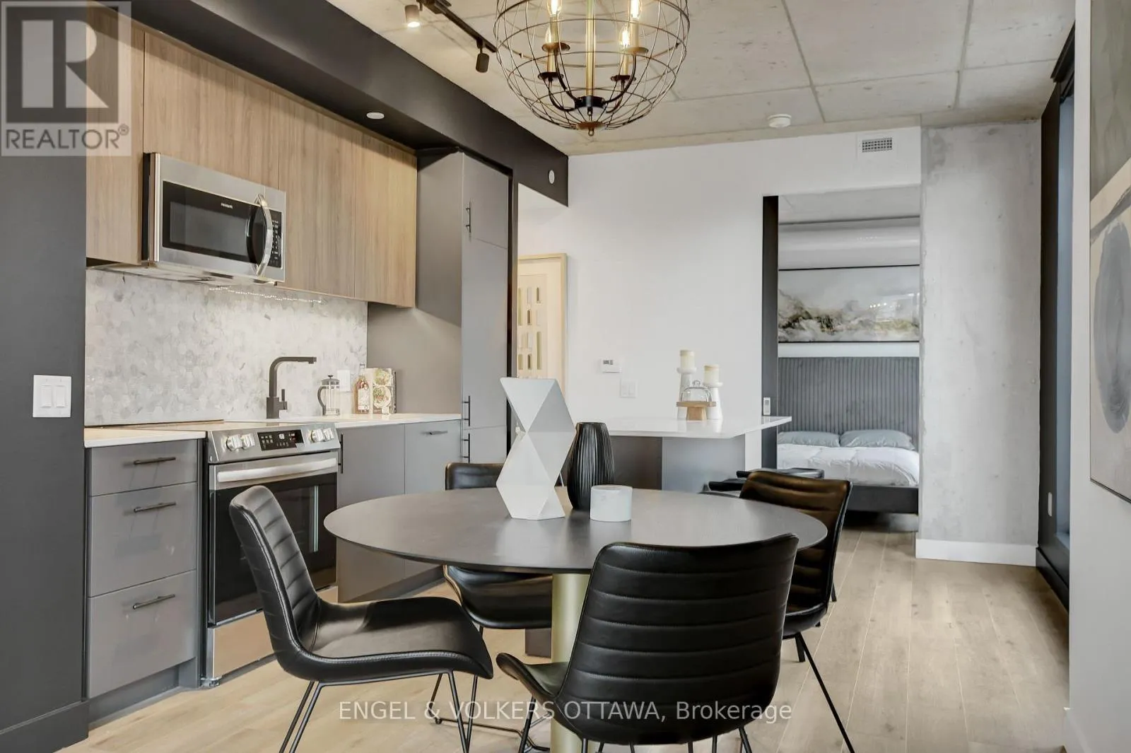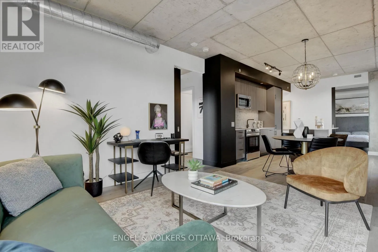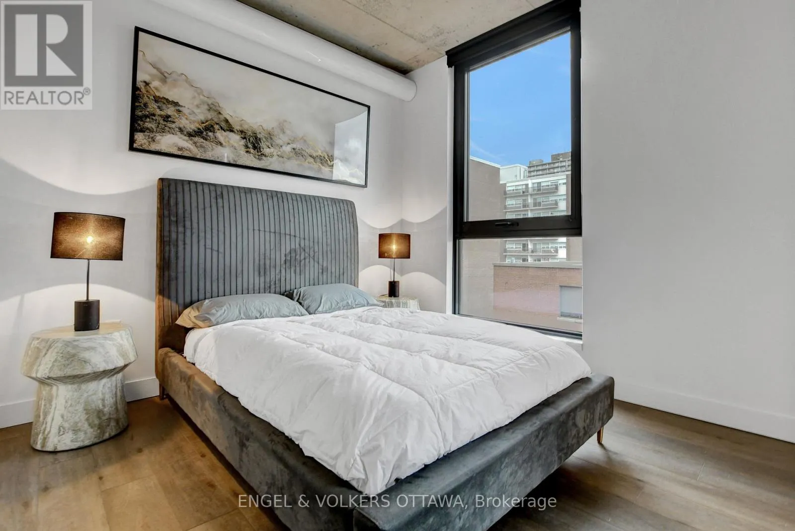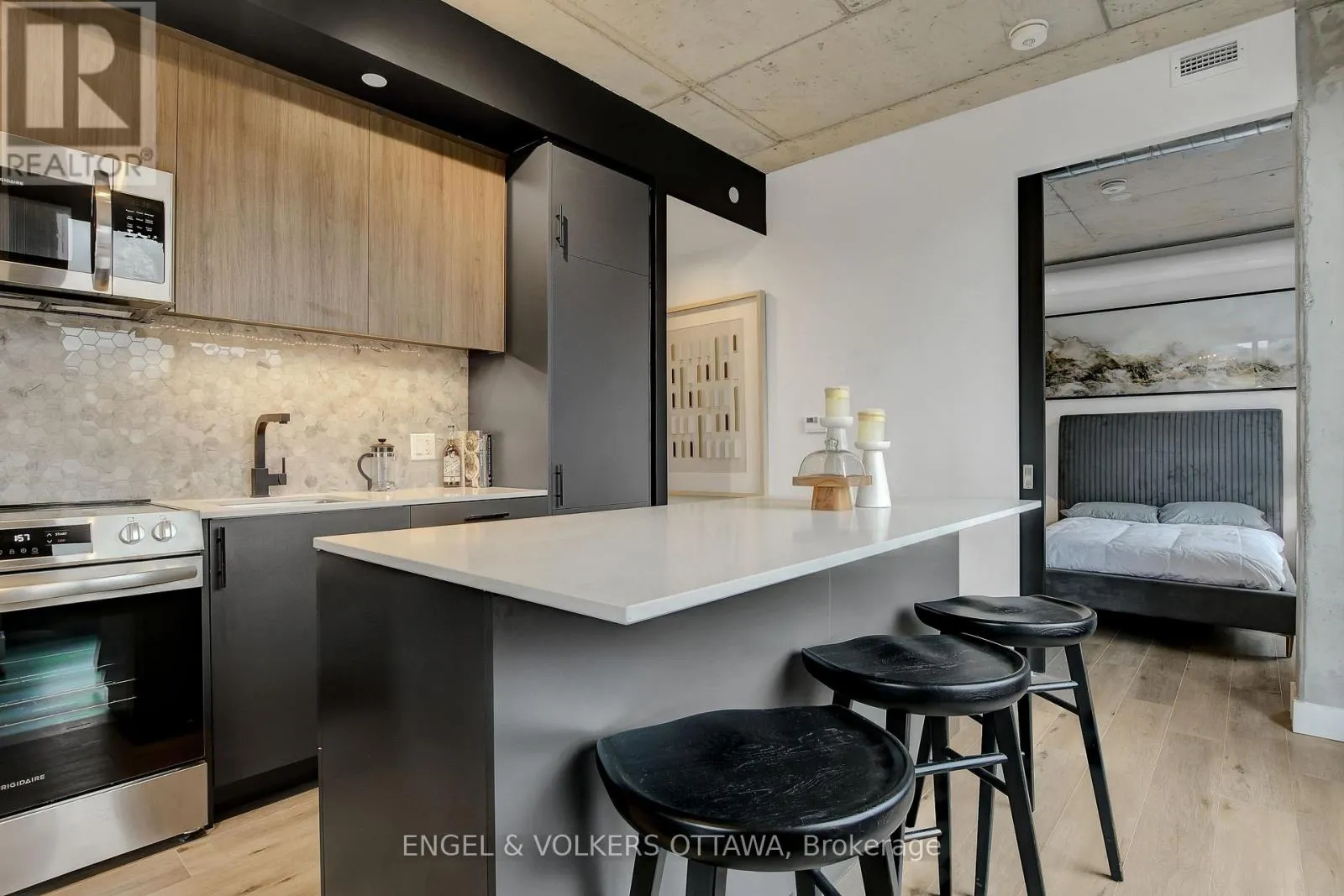 Cross Streets: Bank St. / James St. ** Directions: From Bank St. and Gladstone Ave., head North on Bank St, then turn West onto James St. Experience elevated living at James House, a boutique condominium redefining urban sophistication in the heart of Centretown. Designed by award-winning architects, this trend-setting development offers contemporary new-loft style living and thoughtfully curated amenities. This stylish 2-bedroom corner suite spans 921 sq.ft. of interior space and features 9-ft ceilings, large windows, exposed concrete accents, and a private balcony. The modern kitchen is equipped with a sleek island, quartz countertops, built-in refrigerator and dishwasher, stainless steel appliances, and ambient under-cabinet lighting. The primary bedroom features a walk-in closet and 3-piece en-suite with walk-in shower. The thoughtfully designed layout includes in-suite laundry conveniently located near the entrance and a second full bathroom with modern finishes. James House enhances urban living with amenities including a west-facing rooftop saltwater pool, fitness center, yoga studio, zen garden, stylish resident lounge, and a dog washing station. Located steps from Centretown and the Glebe's finest dining, shopping, and entertainment, James House creates a vibrant and welcoming atmosphere that sets a new standard for luxurious urban living. On-site visitor parking adds to the appeal. Other suite models are also available. Inquire about our flexible ownership options, including rent-to-own and save-to-own programs, designed to help you move in and own faster. (id:27476)
