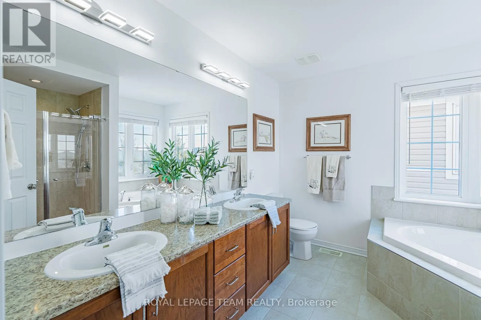 Cross Streets: Sunita Crescent. ** Directions: Heading south on Kilbirnie Drive, turn right onto Blackleaf Drive, then right onto Sunita Crescent. The property will be on your right. Welcome to this beautifully upgraded home in the highly sought-after Stonebridge community of Barrhaven. From the moment you arrive, the inviting front porch offers the perfect place to relax with a morning coffee or unwind in the evening.Inside, the main level features maple hardwood flooring, a bright family and dining area with a stylish feature accent wall, and a modern kitchen complete with quartz countertops, mosaic backsplash, and upgraded lighting. The living room is highlighted by a stunning floor-to-ceiling fireplace feature wall, creating a warm and elegant gathering space.Upstairs offers three spacious bedrooms with updated lighting and a comfortable layout for family living. The fully finished basement adds over 700 sq ft of additional living space, featuring a fourth bedroom, 3-piece bathroom, and walk-in closet, ideal for guests, extended family, or a home office.Step outside to enjoy the private backyard with no rear neighbours, featuring a large deck with pergola, PVC fencing, and a storage shed - perfect for entertaining or relaxing outdoors.Located just steps from parks, green space, the Minto Recreation Complex, and minutes to the Stonebridge Golf Club, this home also offers access to excellent schools and a vibrant family-friendly community. A fantastic opportunity to own a move-in ready home in one of Barrhaven's most desirable neighbourhoods. (id:27476)
