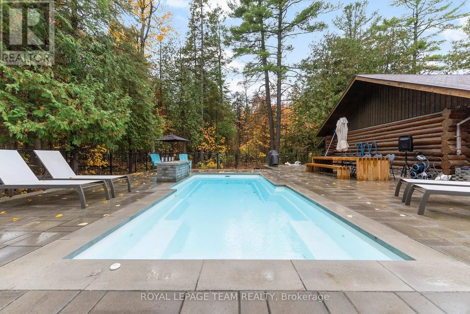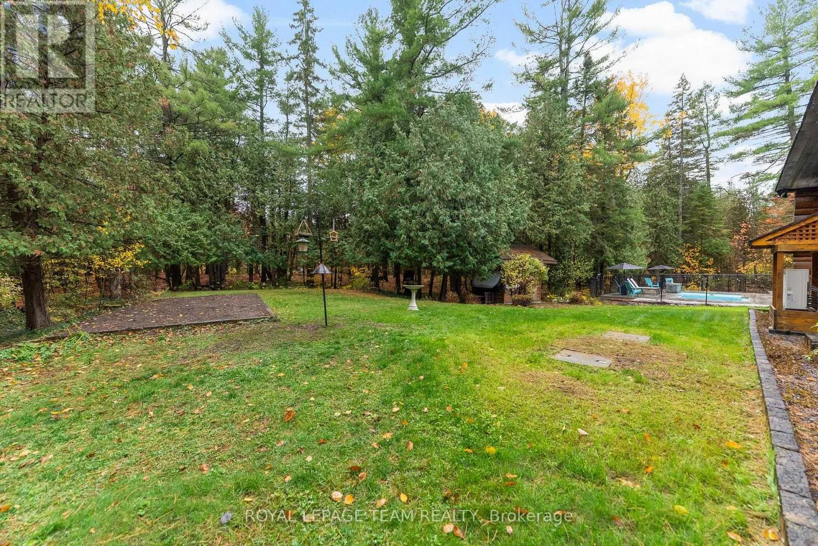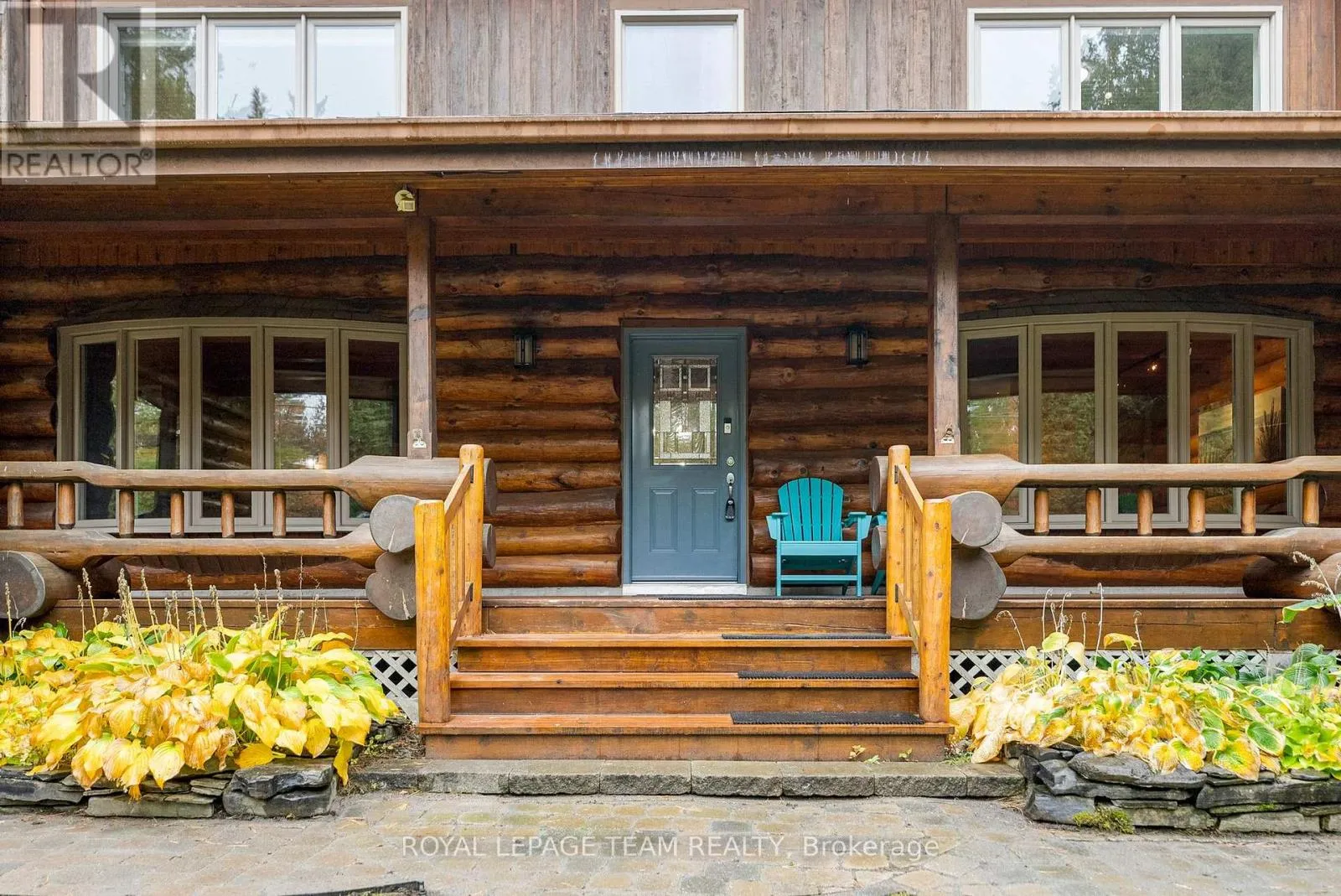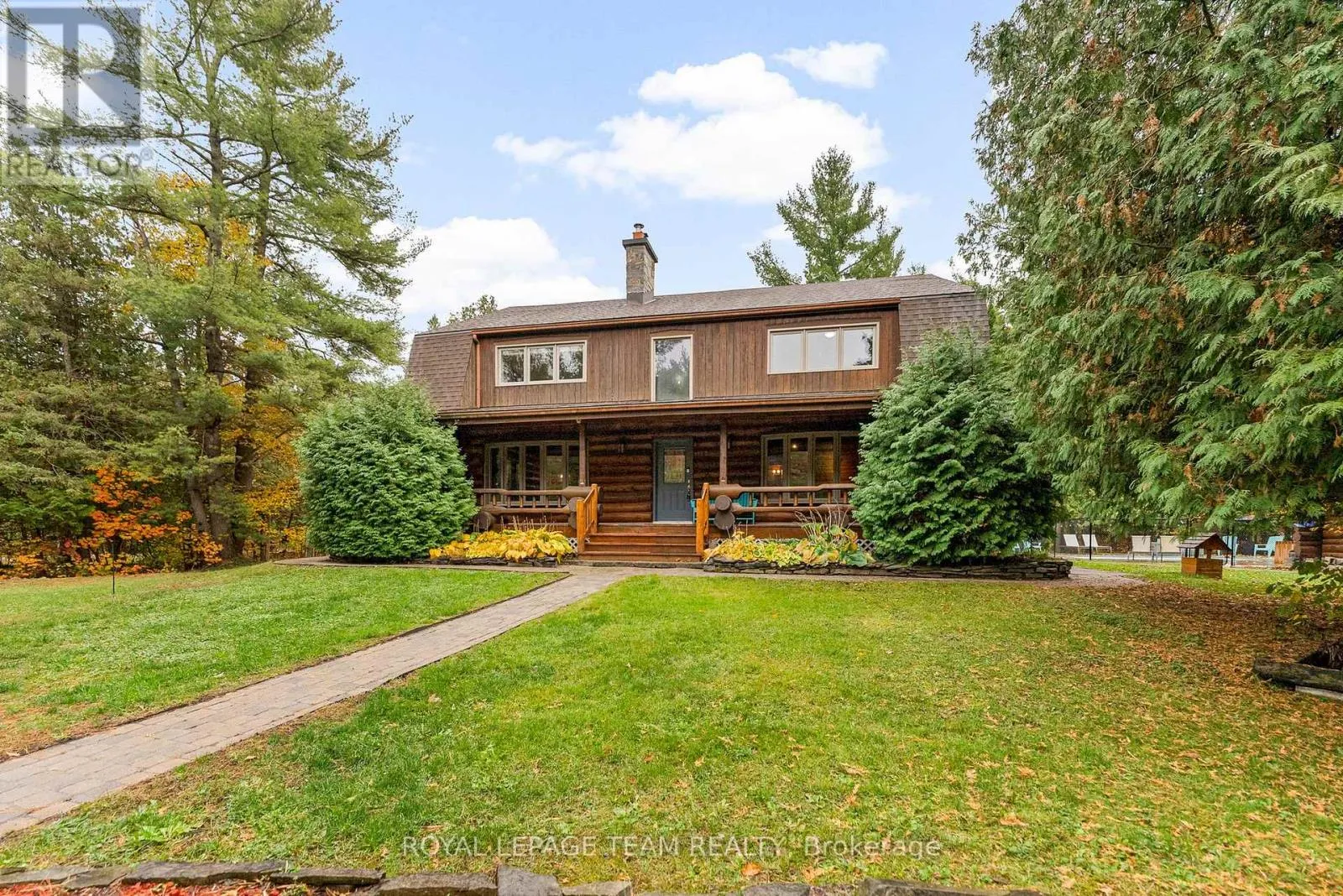 Cross Streets: Lucas Lane / Hubertine Gate. ** Directions: Hwy 7 to Hazeldean Rd exit then right on Jinkinson Rd, right on Fernbank, left on Lucas Lane then right on Hubertine Gate. Situated on a peaceful 2-acre lot in Stittsville, this custom-built detached log home is a true masterpiece of rustic elegance and modern comfort. The handcrafted wood exterior and charming front porch invite you into a world where country serenity meets contemporary luxury. Step inside to discover 4 bedrooms and 3 bathrooms spread over an expansive living space, thoughtfully designed for family living and effortless entertaining. The recently updated kitchen steals the spotlight with its gleaming stainless steel appliances, quartz countertops, tiled backsplash, elegant cabinetry, and a bright eat-in area - the perfect space to gather over morning coffee. The main floor's flowing layout connects the dining room and cozy family room, into a spacious living area, all framed by rich wood beams and sweeping views of the surrounding green space. Upstairs, new hardwood flooring guides you to four generously sized bedrooms. The primary suite is a luxurious escape featuring a large walk-in closet and a renovated ensuite adorned with modern finishes. A second full bath, complete with dual vanities and unique touches, ensures comfort for everyone.The basement offers endless flexibility - a perfect spot for a home theatre, gym, or games room and additional storage. Outside, unwind in your private oasis with a newly installed pool, relaxing hot tub, sprawling lawn, or brand new composite deck - the ideal backdrop for summer gatherings. Year-round comfort is ensured with a radiant heating system with a high efficiency boiler. A detached 2-car log garage provides ample space for vehicles, tools, and outdoor gear. A rare blend of craftsmanship, comfort, and charm - this log home redefines rural luxury just minutes from the heart of Stittsville. 24 hour Irrevocable. (id:27476)