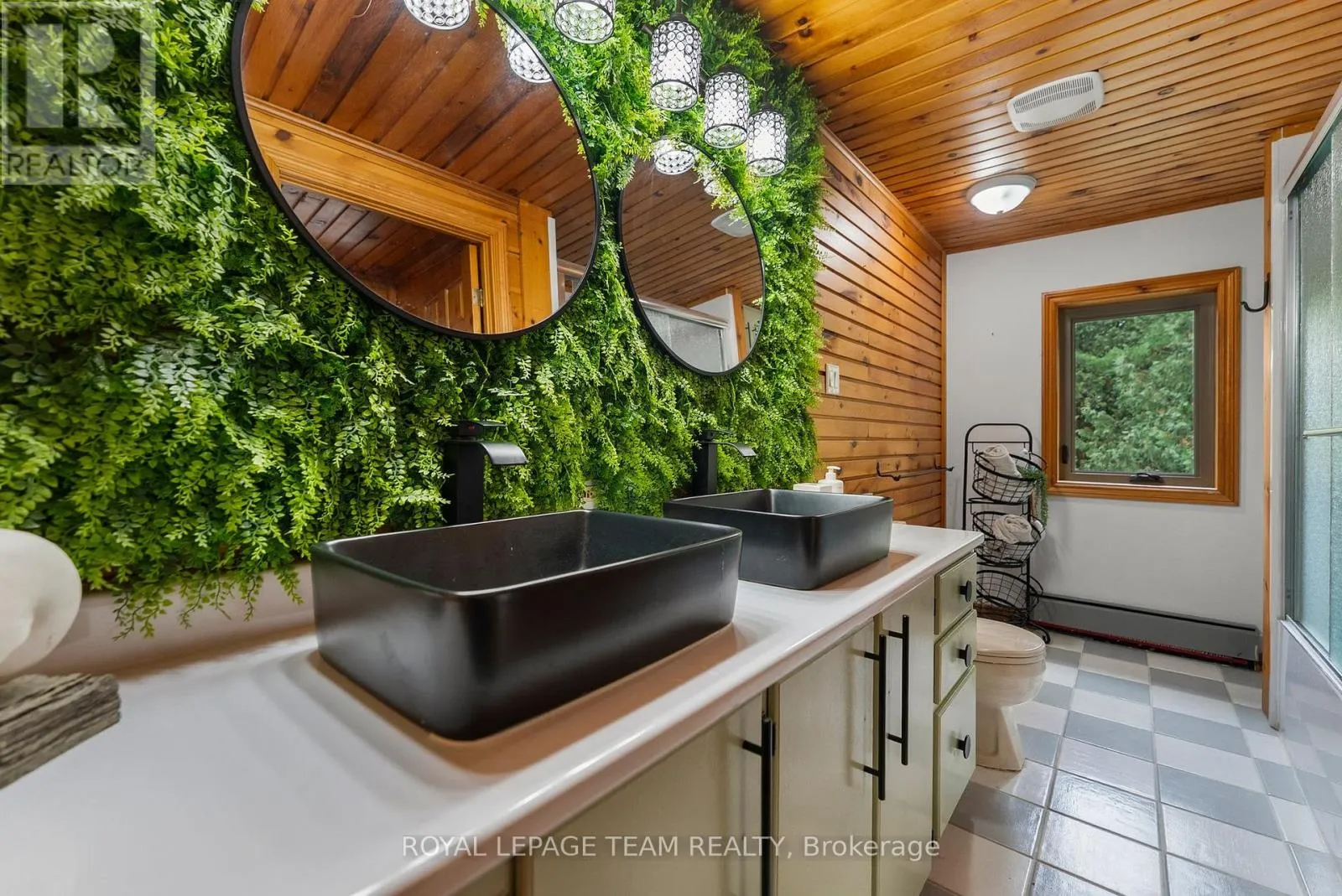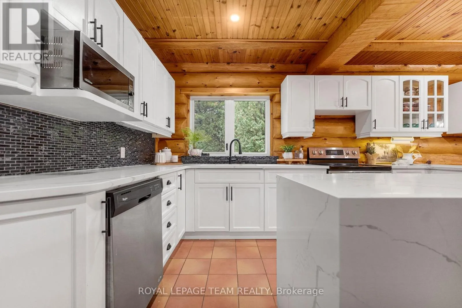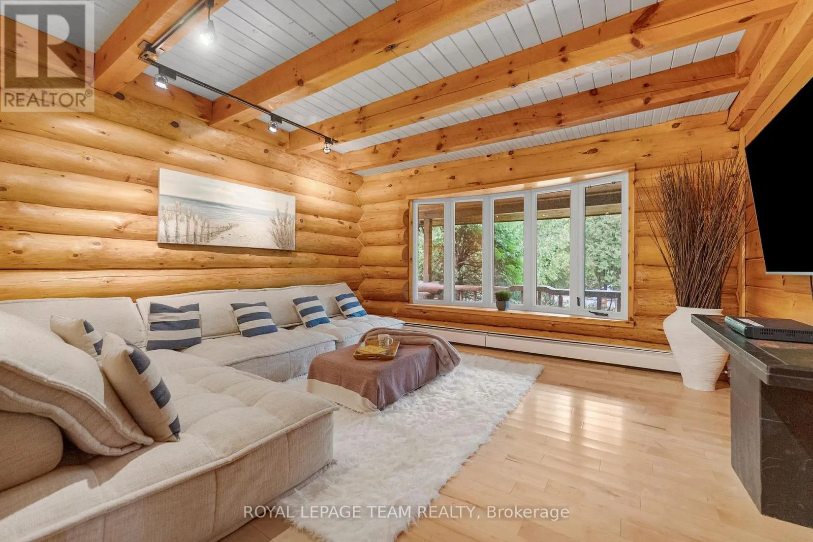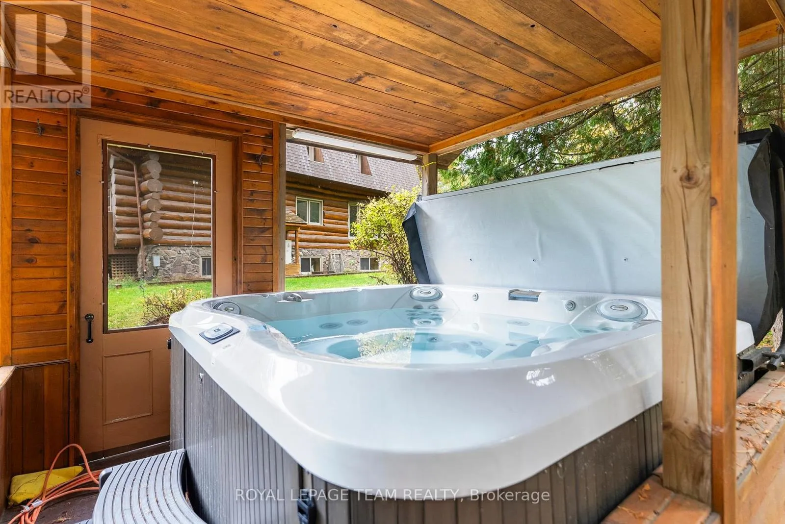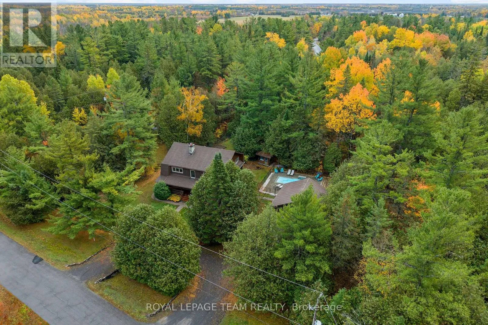 Cross Streets: Lucas Lane / Hubertine Gate. ** Directions: Hwy 7 to Hazeldean Rd exit then right on Jinkinson Rd, right on Fernbank, left on Lucas Lane then right on Hubertine Gate. Situated on a peaceful 2-acre lot in Stittsville, this custom-built detached log home is a true masterpiece of rustic elegance and modern comfort. The handcrafted wood exterior and charming front porch invite you into a world where country serenity meets contemporary luxury. Step inside to discover 4 bedrooms and 3 bathrooms spread over an expansive living space, thoughtfully designed for family living and effortless entertaining. The recently updated kitchen steals the spotlight with its gleaming stainless steel appliances, quartz countertops, tiled backsplash, elegant cabinetry, and a bright eat-in area - the perfect space to gather over morning coffee. The main floor's flowing layout connects the dining room and cozy family room, into a spacious living area, all framed by rich wood beams and sweeping views of the surrounding green space. Upstairs, new hardwood flooring guides you to four generously sized bedrooms. The primary suite is a luxurious escape featuring a large walk-in closet and a renovated ensuite adorned with modern finishes. A second full bath, complete with dual vanities and unique touches, ensures comfort for everyone.The basement offers endless flexibility - a perfect spot for a home theatre, gym, or games room and additional storage. Outside, unwind in your private oasis with a newly installed pool, relaxing hot tub, sprawling lawn, or brand new composite deck - the ideal backdrop for summer gatherings. Year-round comfort is ensured with a radiant heating system with a high efficiency boiler. A detached 2-car log garage provides ample space for vehicles, tools, and outdoor gear. A rare blend of craftsmanship, comfort, and charm - this log home redefines rural luxury just minutes from the heart of Stittsville. 24 hour Irrevocable. (id:27476)