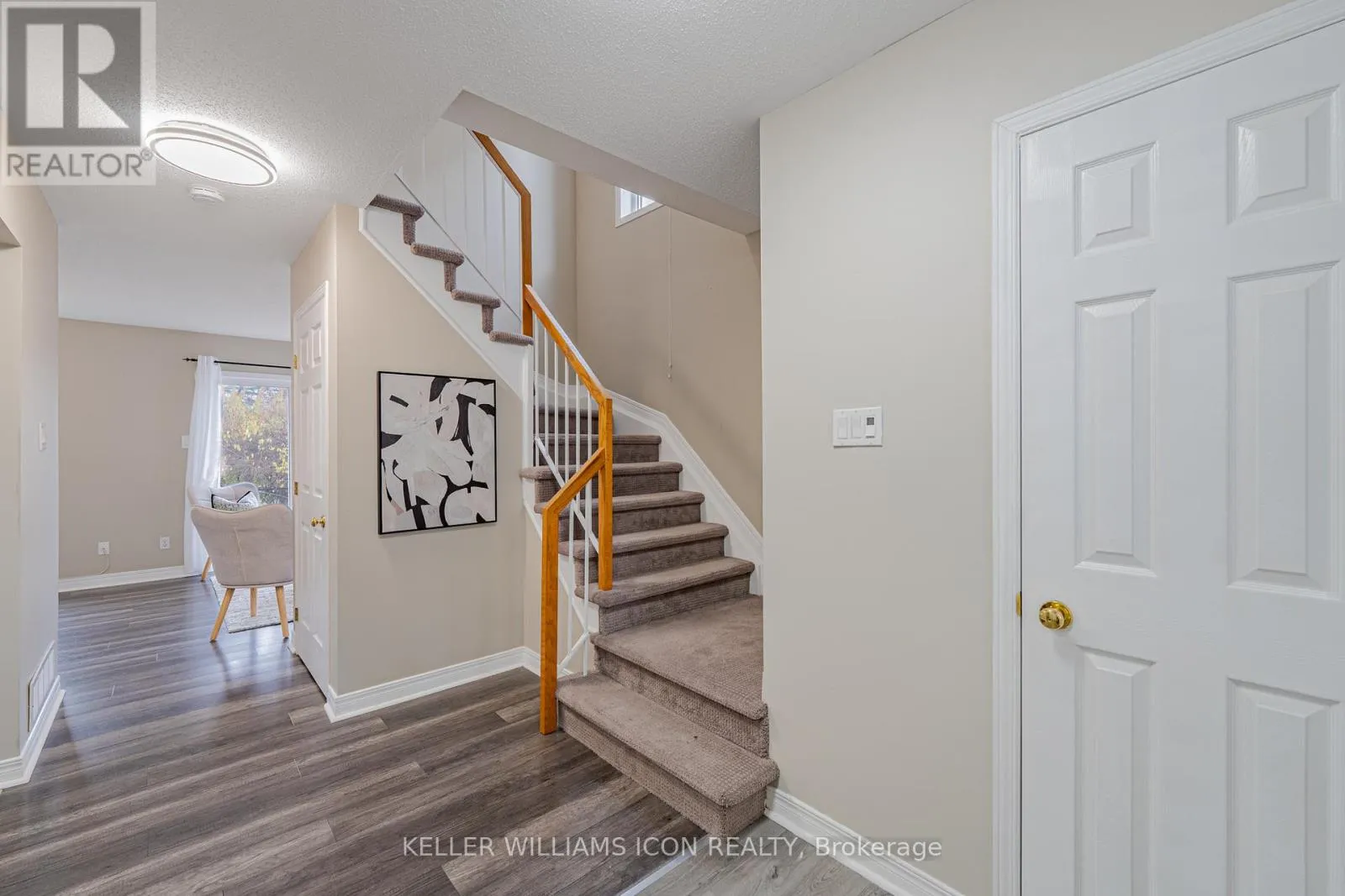 Cross Streets: Goldridge. ** Directions: Kanata Ave to Goldridge Dr to Blackdome Cres. Charming 3-bedroom end-unit townhome in the HIGHLY SOUGHT-AFTER KANATA LAKES COMMUNITY, ideally situated within TOP-RANKED SCHOOL ZONES including Stephen Leacock Public School (25/3032) and Earl of March Secondary School (8/689), with CONVENIENT SCHOOL BUS PICK-UP nearby for added family appeal. The home offers a PRACTICAL AND EFFICIENT LAYOUT featuring THREE BEDROOMS UPSTAIRS WITH TWO FULL BATHROOMS, A FINISHED LOWER LEVEL WITH LAUNDRY, and an EXTRA-LARGE BACKYARD WITH NO REAR NEIGHBOURS backing onto quiet Kanata Avenue (50 km/h). Thoughtfully updated and truly MOVE-IN READY, recent improvements include roof (2010), windows (2014), laminate flooring throughout and carpeted staircase (2018), deck painting (2022), heat pump, FOTILE range hood, and added insulation (2024), along with a FULLY RENOVATED PRIMARY ENSUITE and modern light fixtures (2025). An OVERSIZED SINGLE GARAGE provides valuable additional storage, a feature rarely found in this area. A WELL-MAINTAINED, TURNKEY HOME offering privacy, strong school districts, and worry-free ownership in one of Kanata's most family-oriented neighbourhoods. (id:27476)
