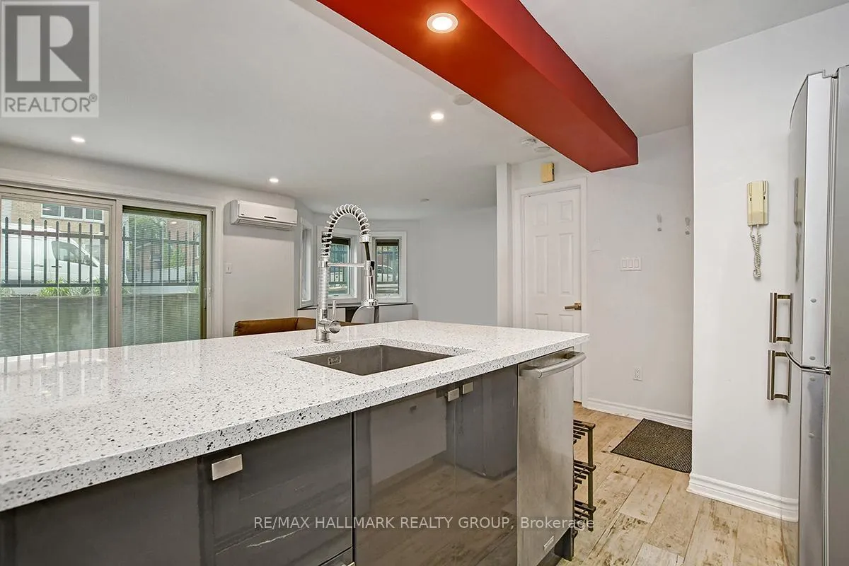 Cross Streets: King Edward Ave. & Wilbrod St. ** Directions: Corner of Wilbrod Street and King Edward Avenue (on South side). Welcome to 232 Wilbrod Unit #1! This FULLY FURNISHED condo is the perfect bachelor apartment in Sandy Hill (steps to Ottawa U), with high end finishes, great use of space, in-suite laundry & 1 heated underground parking spot included! As you enter the unit, it is completely sun-filled with the wall-to-wall windows. The kitchen features Stainless Steel appliances, quartz counter-tops, overhang on peninsula for barstools, and lots of storage space. Large built-in desk by windows makes the perfect work/study station. Modern linear fireplace embedded in the large wardrobe, makes the perfect touch! Access to a large private storage space in the apartment, and private balcony! 1 heated garage parking spot included! Tenant pays Hydro. Available May 1st! (id:27476)