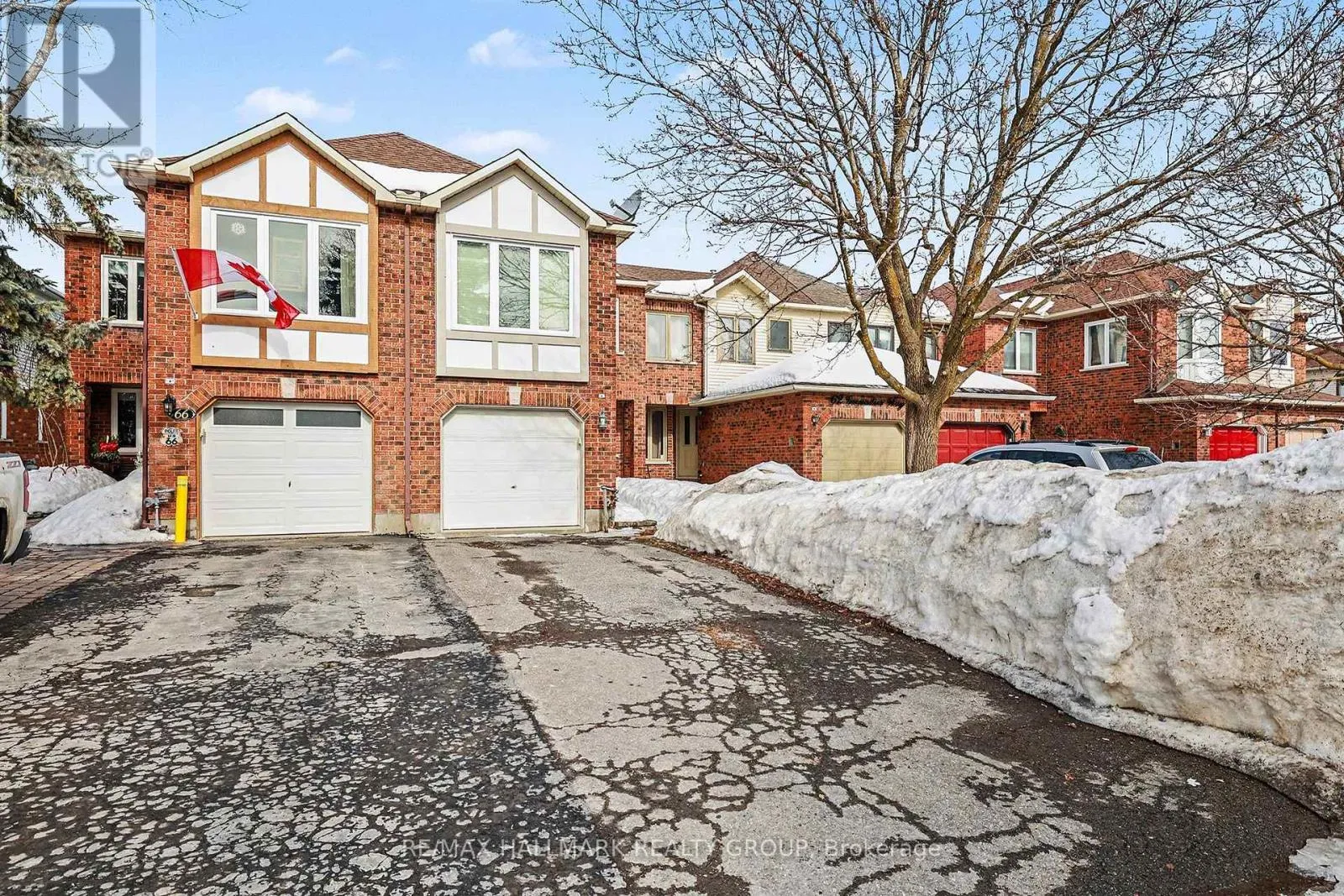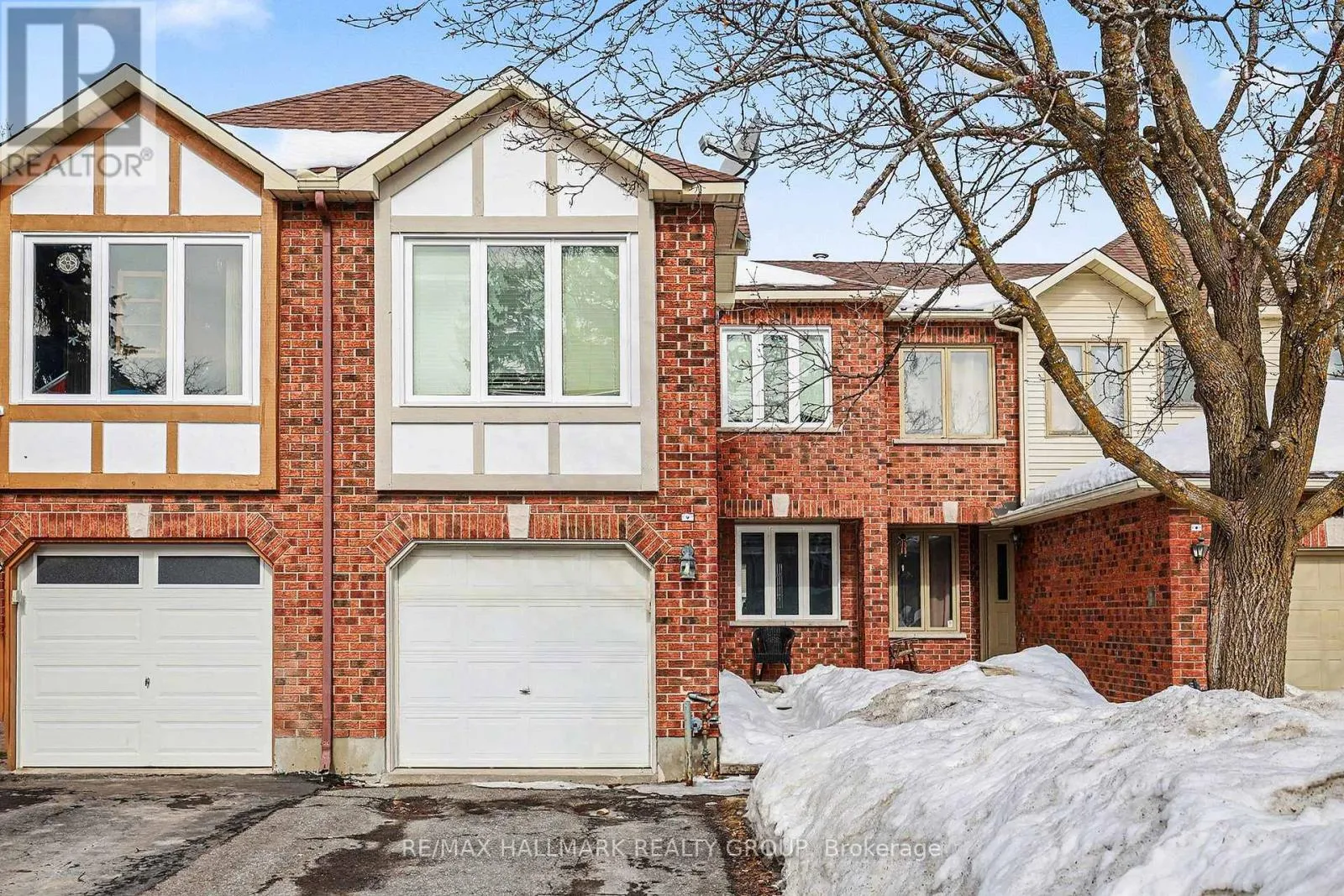 Cross Streets: Woodroffe Avenue & Queensbury Drive. ** Directions: Woodroffe Avenue, West on Queensbury Drive, South on Grenadier Way. Welcome to this wonderful 3 bedroom townhome in the heart of Barrhaven! Step into a welcoming foyer leading to a bright front living room featuring a charming cut-out window overlooking the entryway. The open concept design flows seamlessly into the dining area - both spaces highlighted by elegant crown moulding and gleaming hardwood floors. At the back of the home, you'll find a spacious kitchen with a double sink, ceramic backsplash, and plenty of white cabinetry for storage. The adjoining breakfast area offers patio doors opening to the fenced backyard, perfect for morning coffee or summer barbecues. Upstairs, the family room over the garage offers a cozy retreat with rich hardwood flooring, a gas fireplace framed in brick with a wood mantel, and large windows filling the space with natural light. The upper level also features three bedrooms, including a lovely primary suite with a walk-in closet and 4-piece ensuite boasting a separate soaking tub and standing shower. A full bathroom and convenient second-level laundry complete this floor. The unfinished basement provides ample space for storage or future finishing to suit your needs. Additional features include a single-car garage with inside entry and driveway parking for two. Enjoy a great location close to parks, schools, public transit, and shopping - just minutes from the Minto Recreation Complex and Stonebridge Golf Club. A perfect place to call home in one of Barrhaven's most desirable communities! (id:27476)