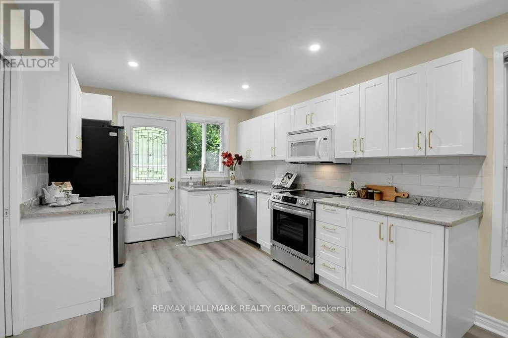 Cross Streets: Corkstown and Carling. ** Directions: Carling Ave to Corkstown to Westale. This bright and spacious 3-bedroom bungalow with attached garage is perfectly situated for active families and seniors. Walking distance to the Nepean Sailing Club, Andrew Hayden Park's waterfront trails, the Corkstown Park community pool, Lakeview Public School, and the Moodie LRT station. DND on Moodie is a quick six-minute drive, with shopping and dining nearby along Carling Avenue and at Bayshore Mall.The main floor features an oversized window overlooking the back yard, a cozy gas fireplace and patio door access to the private backyard that backs onto Lakeview Park - perfect for walking the dog or kids! The spacious, renovated eat-in kitchen offers sleek white cabinetry with gold accents, LED pot lights, stainless steel appliances, and elegant countertops. The main 4 piece bath has a new, sleek white vanity with gold accents, tile flooring, and a tub/shower combo. The modern updates adds to the home's fresh, move-in-ready feel. The generous primary bedroom is complemented by two additional well-sized rooms ideal for a child's room, office, or guest space. The finished lower level adds a large family room, fourth bedroom or gym area, laundry room, and a utility room with workbench. Main and lower-level updates were completed in 2024. Roof (2019) and furnace (2011); A/C is older but functioning well. Original hardwood remains under the new main-level flooring. (id:27476)