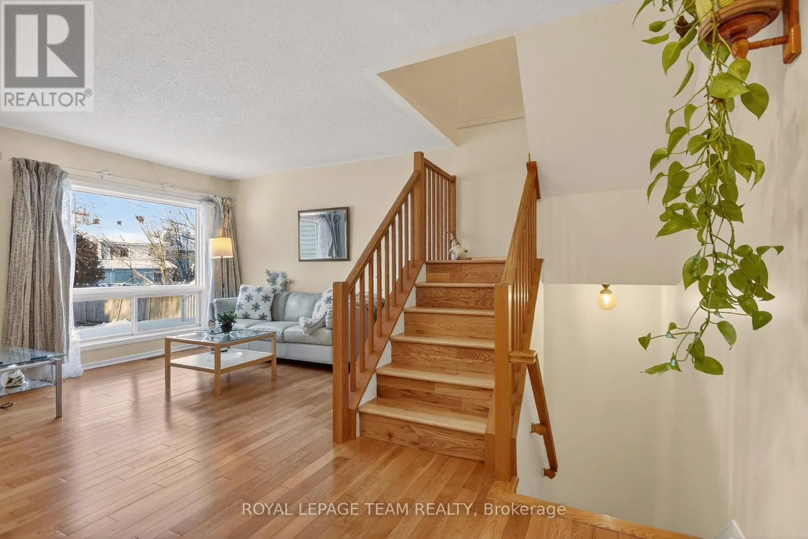 Cross Streets: Castlefrank Road / Aird Place. ** Directions: Castlefrank Road to Aird Place to Jackman Terrace. 48 JACKMAN TERRACE. This bright and move-in ready 3 bed, 2 bath townhome is located in the desirable Katimavik community. Located on an extra deep lot perfect for outdoor enjoyment. The main floor features generous windows and a practical layout. Eat-in kitchen with stainless steel appliances, lots of counterspace, pantry and patio doors to rear yard. Sun filled living room with open concept to dining room. Beautiful oak hardwood flooring on main level, upper staircase, and all 3 bedrooms on the second level. Spacious primary bedroom with walk in closet, vanity area with sink, cheater door to main bath, plus two additional well sized bedrooms. A fully finished basement adds valuable living space for a rec room, home office, or guest area. The 2 tier deck features wood pergola overlooking a spacious backyard with a shed and mature trees. Great for entertaining, gardening, or family activities. Steps away from Centrum Shopping Center, parks, schools, The Wave Pool, and quick access to the 417 and future LRT. (id:27476)