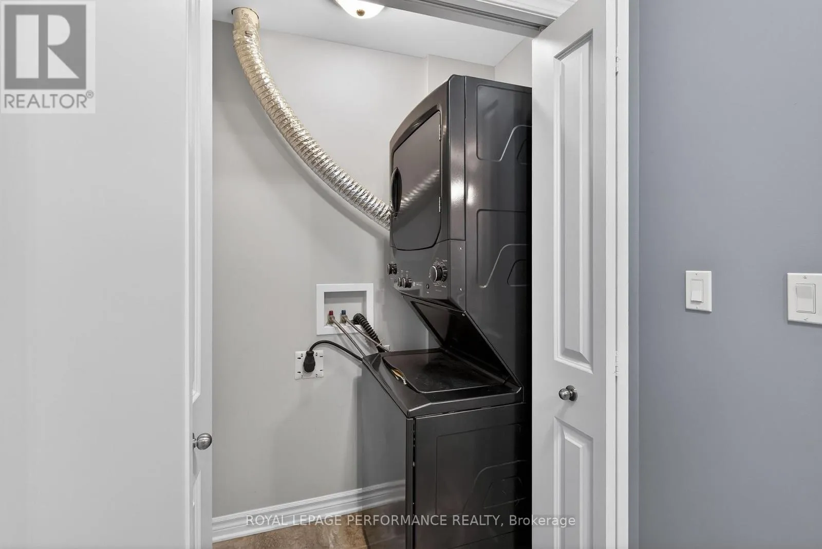Cross Streets: Jeanne D'arc Blvd. ** Directions: Tenth Line Road, turn right onto Jeanne d-arc Blvd, right onto Prestige Circle. Welcome to this beautifully maintained one-bedroom condominium offering approximately 695 sq ft of thoughtfully designed living space, this move-in ready residence is among the more spacious one-bedroom layouts in the building and provides a wonderful balance of style, functionality, and location! Nestled in the scenic community of Petrie's Landing in Chatelaine Village, this home is surrounded by nature while remaining incredibly convenient to everyday amenities. Enjoy the nearby walking trails, bike paths, numerous parks, Petrie Island waterfront and close proximity to the Ottawa River. Inside, the versatile open-concept design is both inviting and practical. Hardwood and tile flooring flow throughout the home, enhancing the modern aesthetic and adding warmth to the living spaces. The stylish contemporary kitchen is both elegant and functional, showcasing gorgeous GRANITE countertops, a tasteful backsplash and ample cabinetry for storage. It seamlessly connects with the main living area, creating an airy and welcoming environment which provides access to the impressive patio terrace! The ample sized bedroom provides lots of natural light and offers excellent closet space, providing a comfortable and restful retreat. Additional highlights include IN-SUITE laundry in the full 4P stylish bathroom, a dedicated storage LOCKER and the convenience of a PARKING space located near the door for effortless access. With its functional layout, modern finishes and unbeatable location near nature and amenities, this exceptional condominium offers an outstanding lifestyle opportunity! (id:27476)