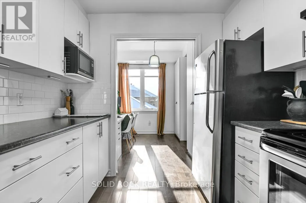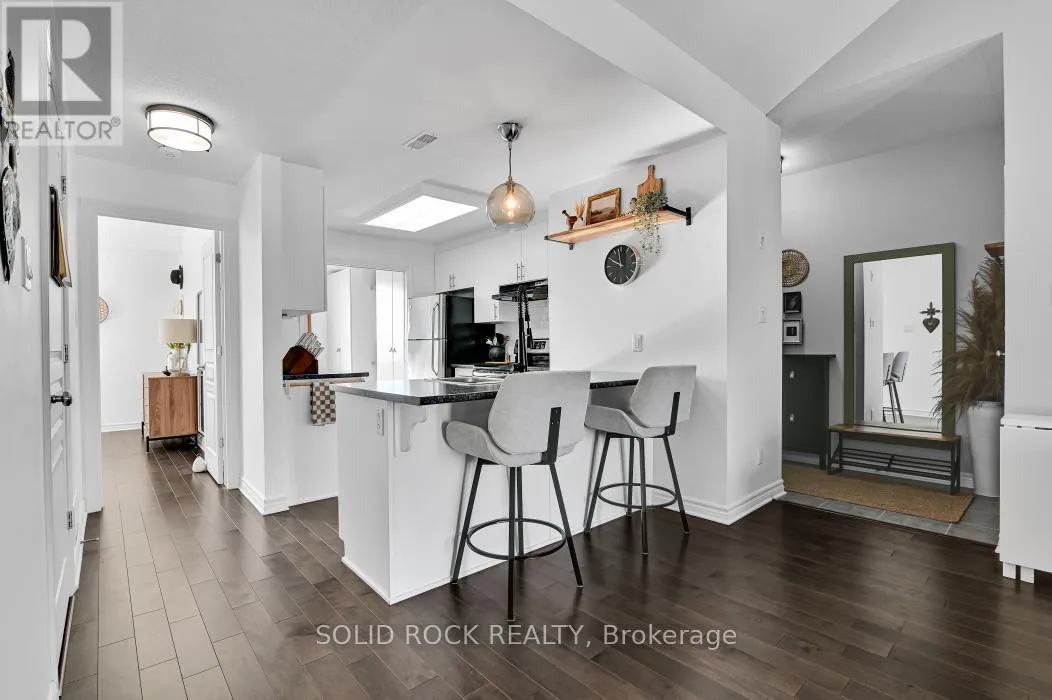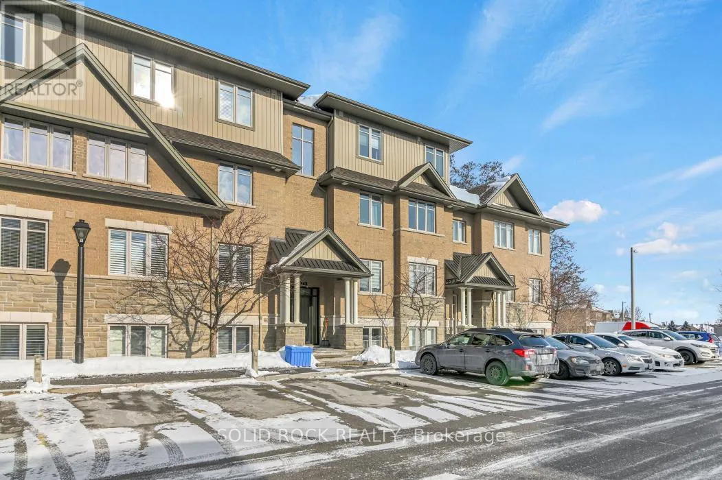 Cross Streets: Hornchurch Ln. & Tadley Pvt. ** Directions: Strandherd Dr.,Longfields Dr. East on Portrush, North on Hornchurch Ln., East on Tadley Pvt. Rare Barrhaven condo with vaulted ceiling, treed park views & no rear neighbours. Upper-level walk-up | 2 bedrooms + den | 2 full bathrooms. Quiet Longfields enclave close to parks, transit, schools & shopping. Welcome to 19G Tadley Private, a beautifully maintained upper-level condo offering a bright & functional layout in one of Barrhaven's most desirable and walkable pockets. Discover upgraded hardwood floors throughout the main living areas paired with 9-foot ceilings that create an open, comfortable feel. The living room is highlighted by a dramatic vaulted ceiling & patio door access to a private balcony overlooking mature trees and a passive park setting. One of the most desirable features of this home is the rare absence of rear neighbours. The balcony enjoys a peaceful treed backdrop, providing privacy, greenery & a relaxing natural setting that changes beautifully through the seasons. A European-inspired kitchen, both stylish & practical, features a peninsula overlooking the living room, ceramic backsplash, pot-and-pan drawers & upgraded black faucet. The layout keeps you connected to the living space while preparing meals or entertaining. Off the kitchen, double sliding French doors open to a versatile den with built-in cabinetry, ideal for a home office, study area, creative workspace or gaming zone. Both bedrooms are well sized & the home offers two full bathrooms, providing excellent convenience for everyday living & visiting guests. Centrally located stacked laundry area adds further practicality to the thoughtful layout. Move-in ready, private and surrounded by nature, this home offers an appealing blend of comfort, practicality and location. Nearby green spaces include Moloughney Park, South Nepean Park & Lindenshade Park, with restaurants, shopping & amenities all close by.Properties with this combination of vaulted space, treed privacy and walkable convenience rarely come available in this community. (id:27476)