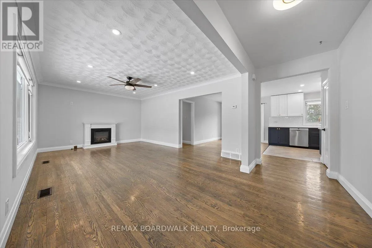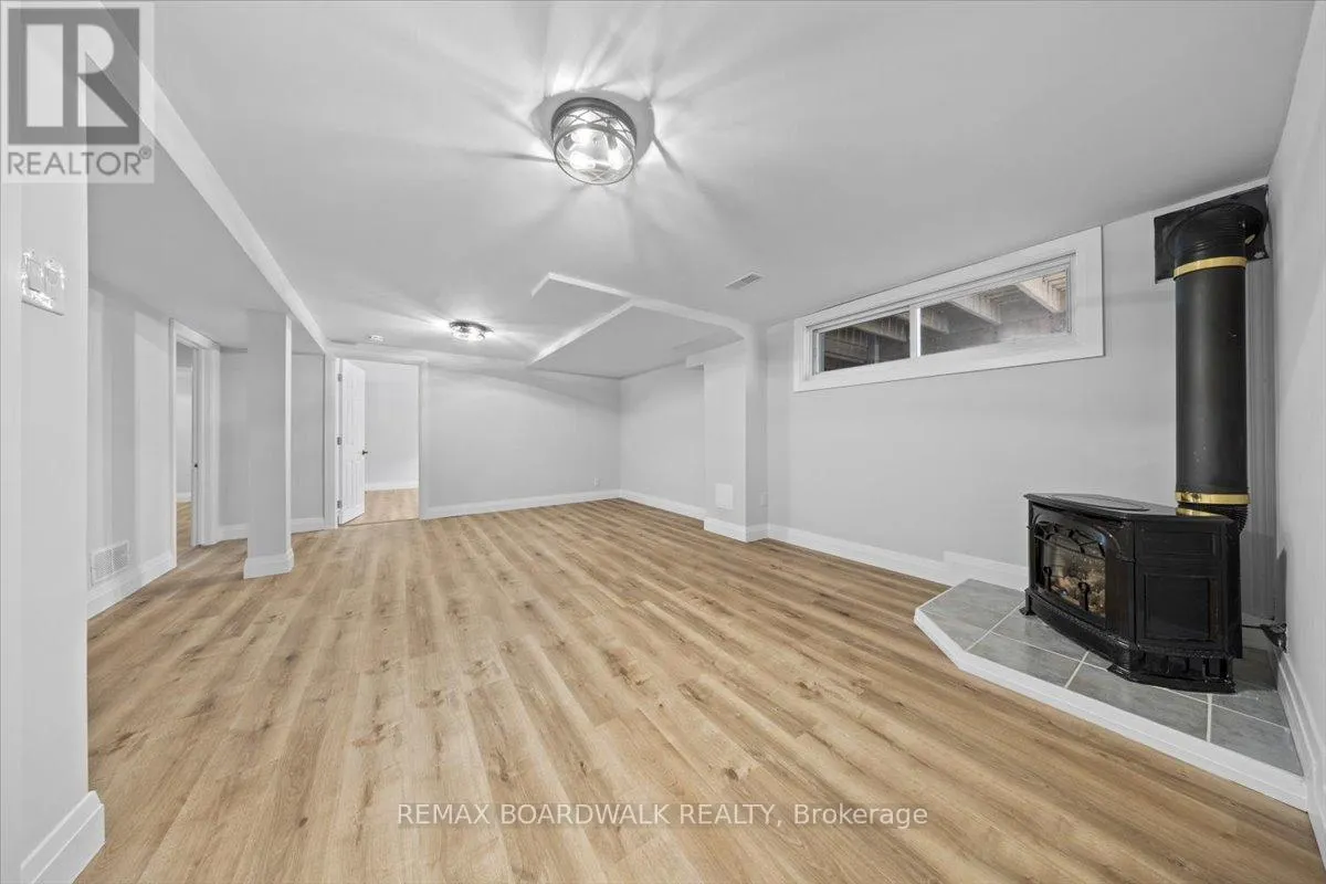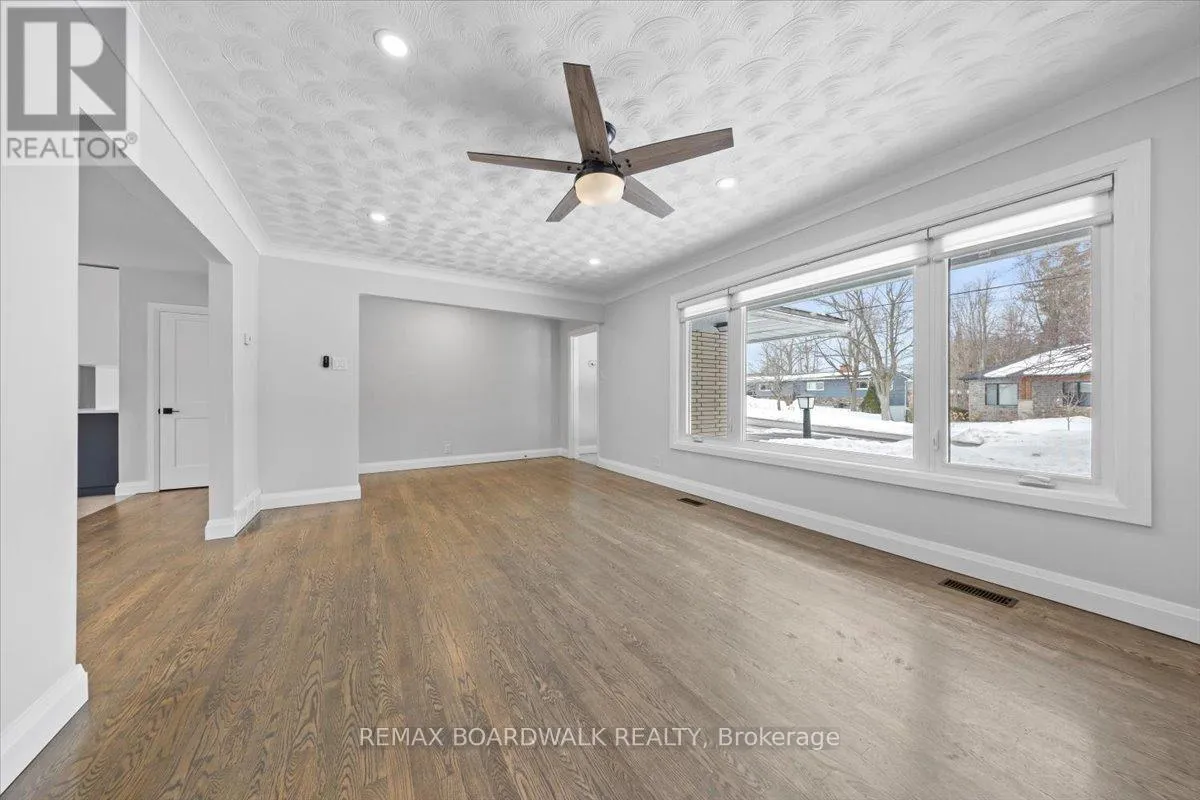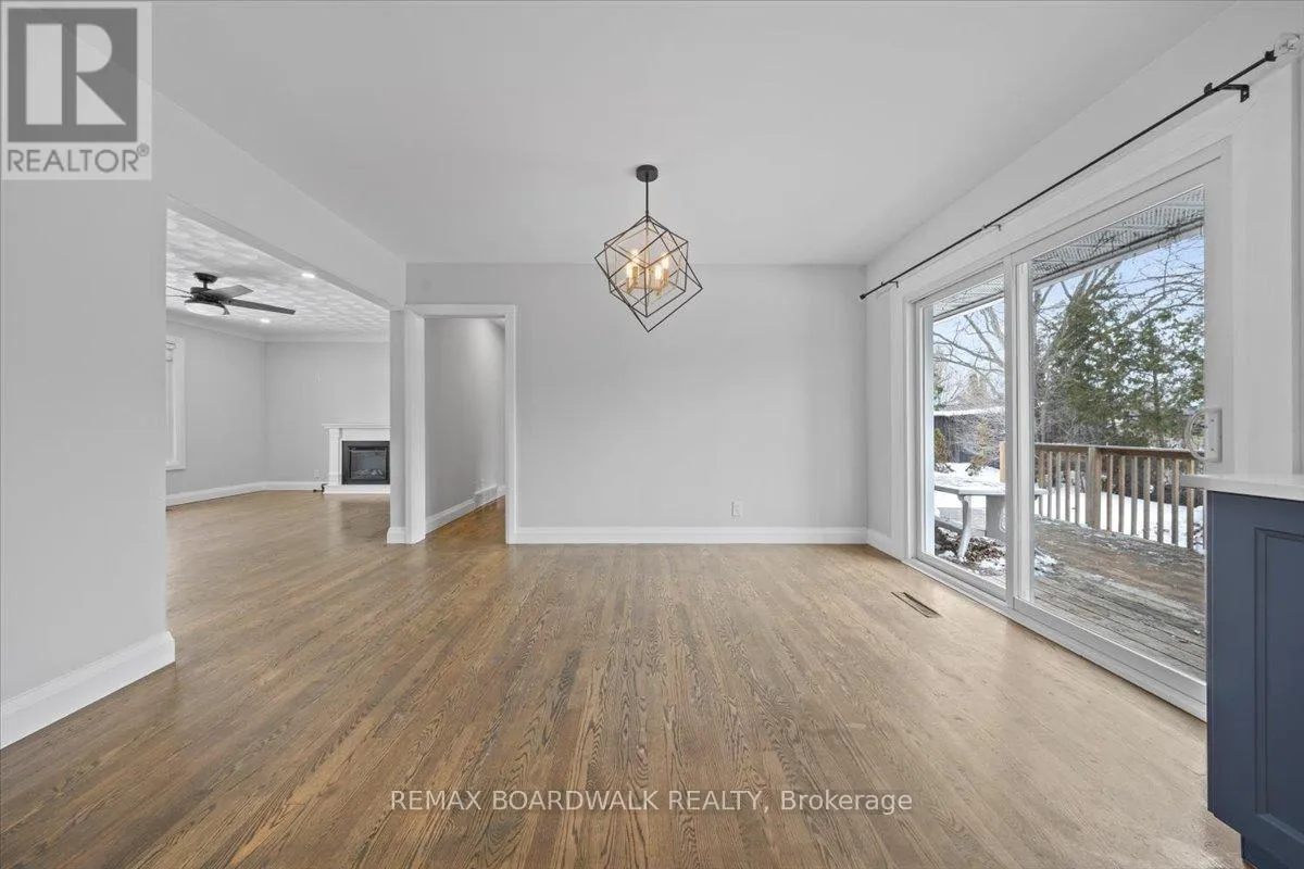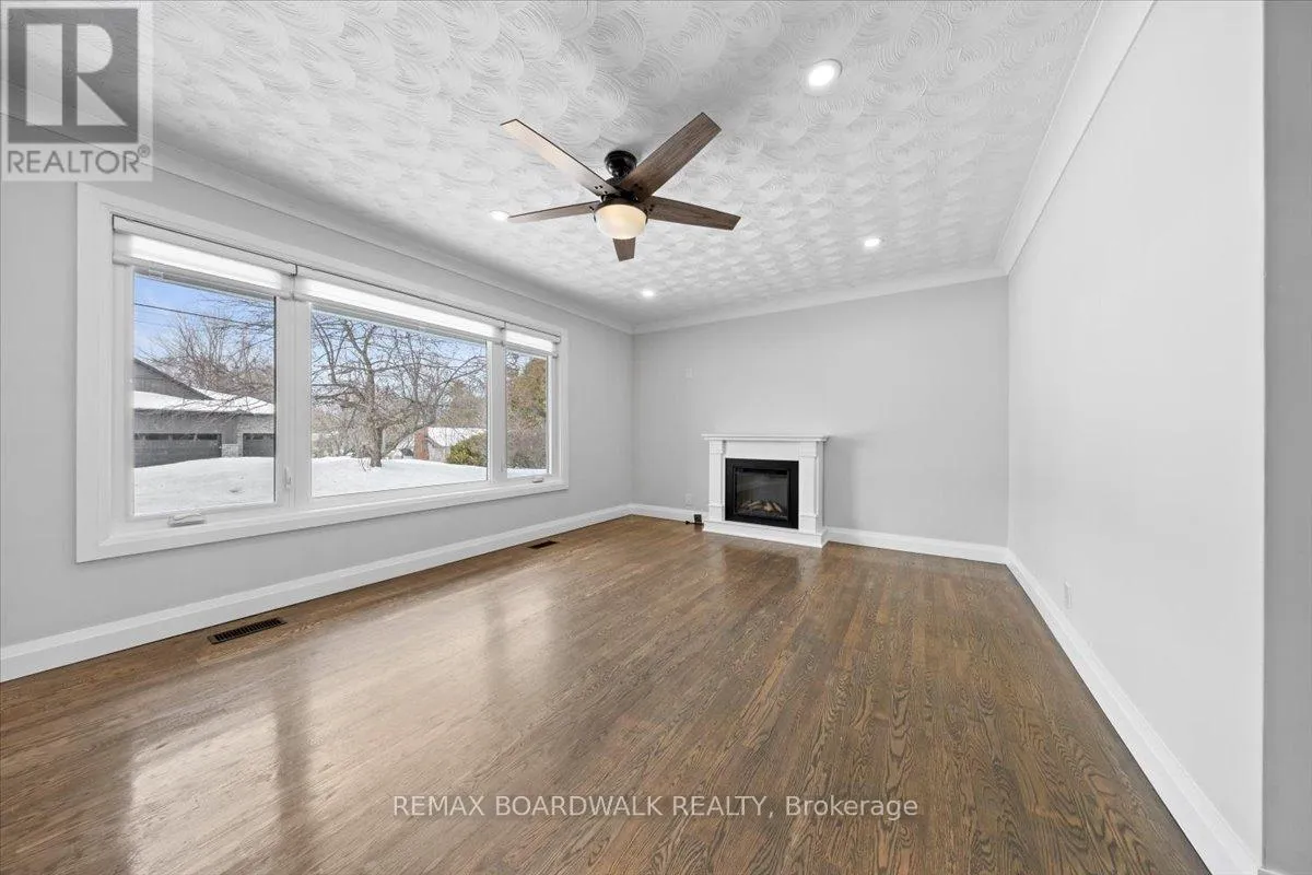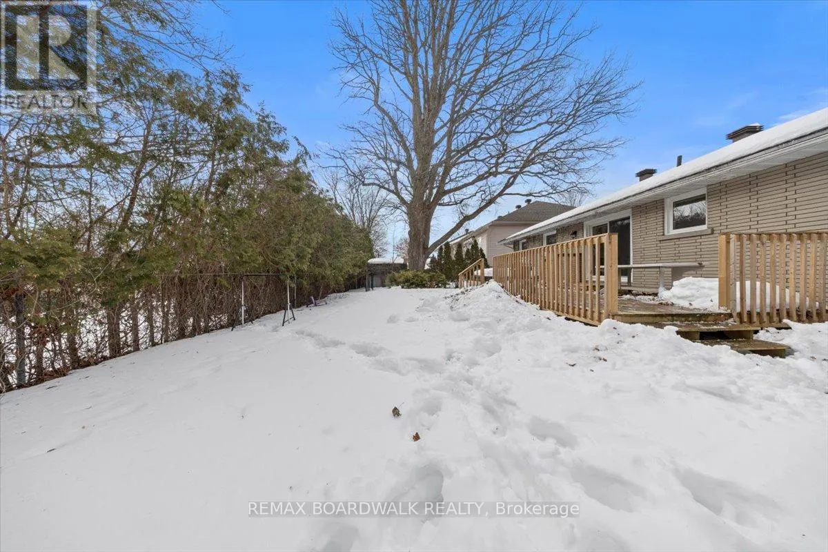 Cross Streets: Stittsville. ** Directions: From Stittsville Main St, West on Brae St, Left on Turtleback. Home on the left. Graceful brick bungalow positioned on a wide lot w/warm southern exposure. A double wide driveway & covered front entrance lead to a welcoming foyer finished w/oversized tile & a front hall closet. The main level presents a refined architectural palette w/site finished hardwood flooring, high profile baseboards, flat ceilings & classic two panel interior doors that create a clean & timeless interior. The living room is bright & composed, framed by oversized windows, plaster crown moulding & subtle pot lighting that enhances the natural light. The dining room offers an elegant transition to the outdoors w/a chandelier, pantry storage & a patio door that opens to the rear deck & garden. The kitchen has been thoughtfully updated w/quartz countertops, recessed sink, two tone shaker cabinetry w/glass door accents, pot drawers & an oversized subway tile backsplash. Multiple windows introduce soft daylight, creating a space that is both functional & visually balanced. Two well proportioned bedrooms complete the main level. The primary bedroom enjoys southern exposure & features a double wide closet. The main bathroom presents quartz countertops, a multi drawer vanity, octagon tile flooring & a moulded tub with tiled surround. A side entrance leads to the rear hallway w/direct access to the lower level & a convenient parcel delivery cabinet. The finished lower level expands the living environment w/a spacious recreation room finished in wide plank flooring & centred around a gas fireplace. Additional spaces include a third bedroom, a den or office w/closet storage & a three piece bathroom w/stand up shower & laundry. The utility room offers generous storage, a soaker sink & two walk in closets. The garage provides inside access & natural light. The private rear yard enjoys southern exposure & is framed by mature trees, w/a deck & hot tub creating a quiet outdoor retreat. 24 Hour irrevocable on all offers. (id:27476)