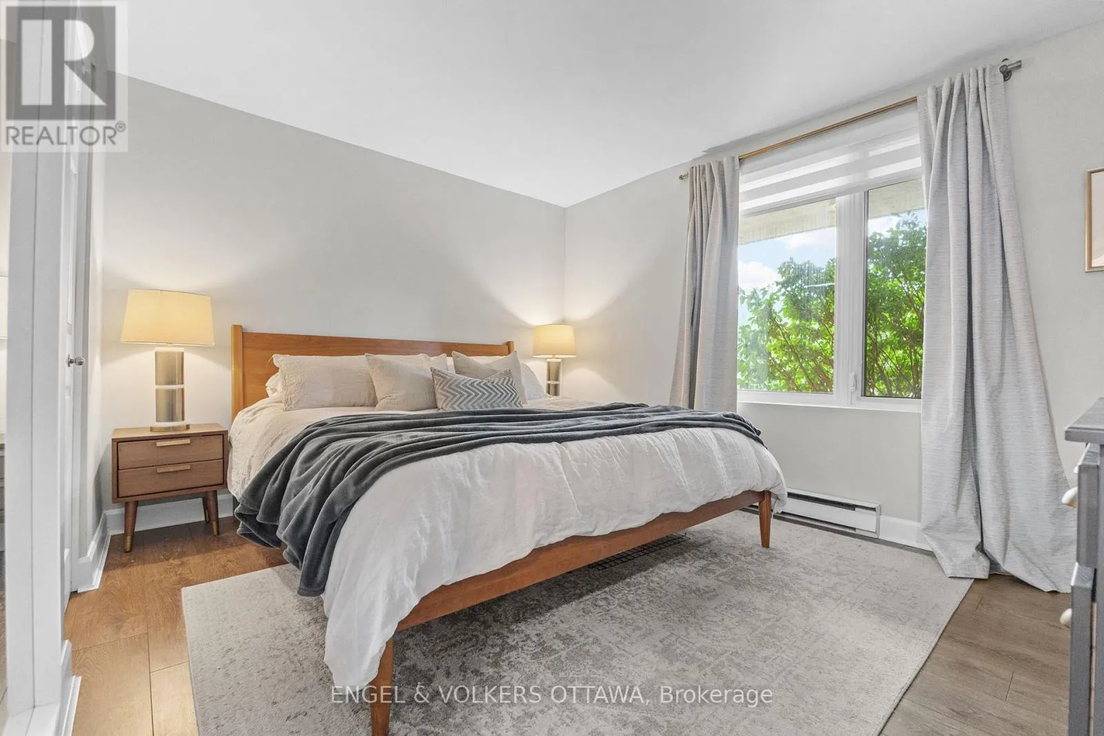Cross Streets: McKellar Avenue/Carling Avenue. ** Directions: Carling Avenue to McKellar Avenue. This walkout 2-bedroom, 1-bathroom unit offers nearly 1,000 sq. ft. of bright, comfortable living space with a bungalow-like feel - perfect for dog owners or anyone seeking convenient, low-maintenance living. Ideally located, you'll be within walking distance of Carlingwood Mall (Loblaws, Canadian Tire), Fairlawn Plaza (Shoppers Drug Mart, Pet Valu, LCBO), gyms (Altea, Anytime Fitness), parks, excellent schools, and the shops and restaurants of Westboro. Easy access to Highway 417, multiple transit lines, and the upcoming Sherbourne LRT station. Inside, a spacious foyer opens to an airy, open-concept living and dining area filled with natural light from south-facing windows. A moveable electric fireplace adds warmth and charm, while patio doors extend your living space to a private outdoor retreat surrounded by greenery. The kitchen offers ample cabinetry with room for a small table or hutch for added storage. The primary bedroom includes a generous walk-in closet and blackout curtains, while the second bedroom is perfect as a home office, guest room, or child's bedroom. The large bathroom features double sinks, a shower/tub combo, and a linen closet for extra storage. Custom window treatments installed throughout (2022). Additional highlights include in-suite laundry, underground parking, and a storage locker. Don't miss this fantastic opportunity to own a spacious walkout unit in one of Ottawas most sought-after and evolving communities! (id:27476)