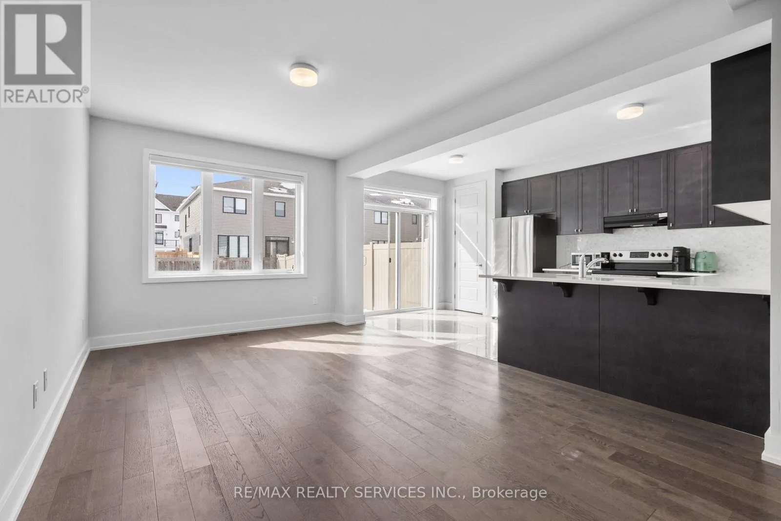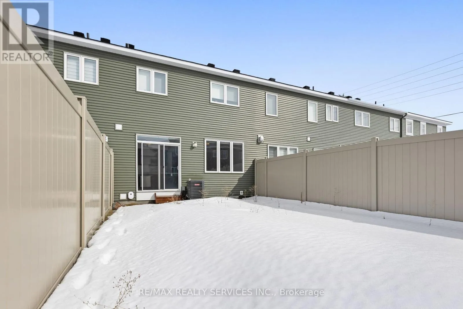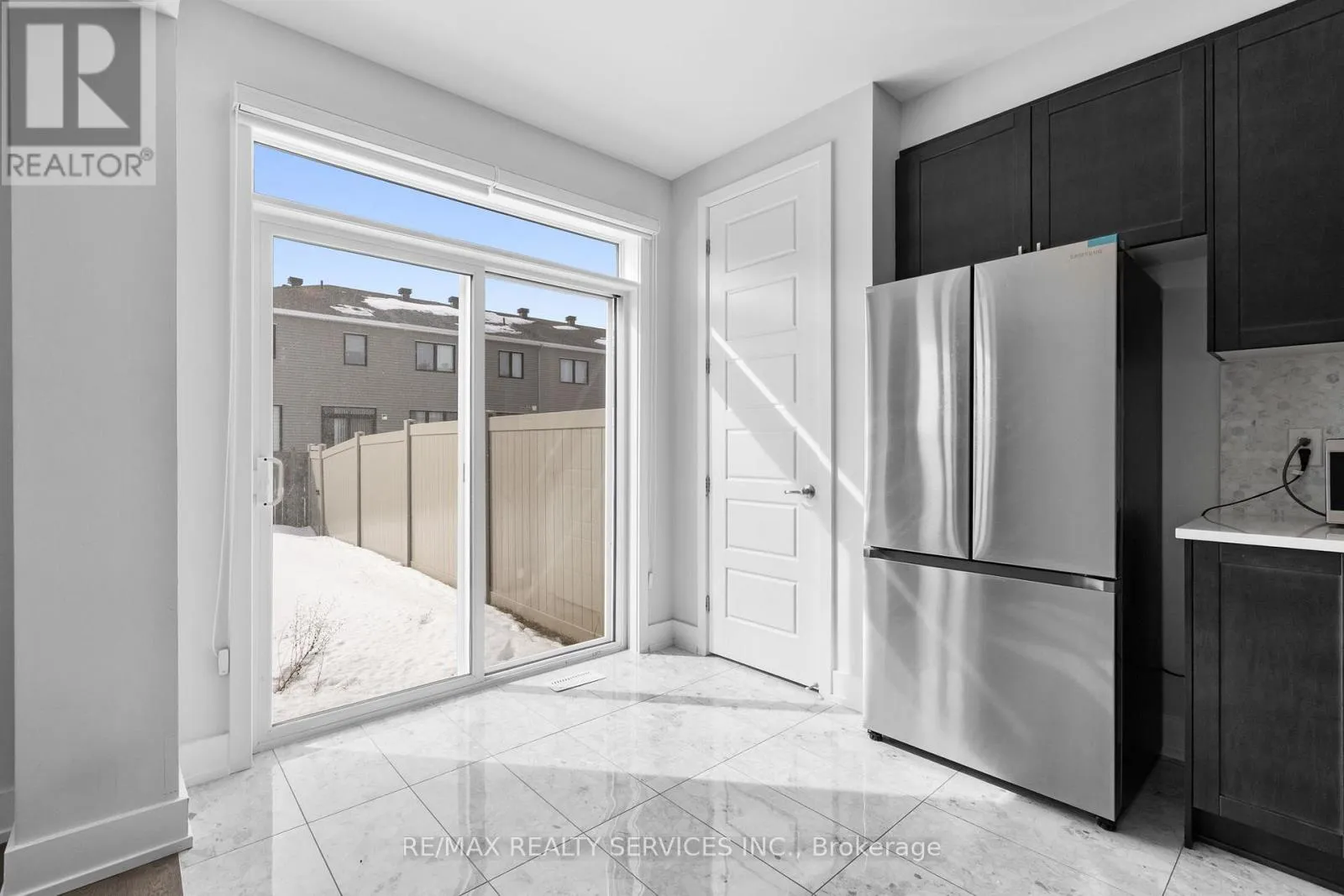 Rouncey RD / Fernbank Rd A Must-See Executive Townhouse in the Finest Community in Kanatal! This tastefully upgraded three-bedroom, three-bathroom executive townhouse offers modern, functional living in one of Kanata's finest communities. The sun-filled, open-concept main floor features a spacious kitchen with engineered flooring throughout, a bright breakfast area, and patio door access to a huge backyard-perfect for entertaining and outdoor enjoyment. A convenient powder room and direct access to the garage complete this level. Upstairs, three generously sized bedrooms include a primary suite with a luxurious five-piece ensuite featuring a stand-up shower and a walk-in closet. A full family bathroom and a conveniently located laundry room add practicality and ease to daily living. The fully finished basement provides additional living space with a large family room, utility area, and ample storage. Additional highlights include carpet-free living, high-quality engineered floors throughout, upgraded washrooms, and air conditioning included (3 years old, under 5 years. Five appliances are included with the sale: stove, fridge, dishwasher, washer, and dryer. The home will be viable for occupancy as of July 1, 2026. Ideally located close to public transit, recreational facilities, shopping, dining, and schools, this home is truly a must-see! (id:27476)