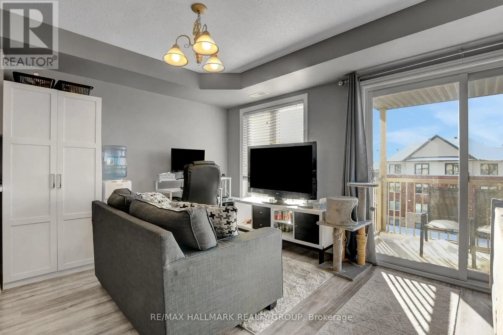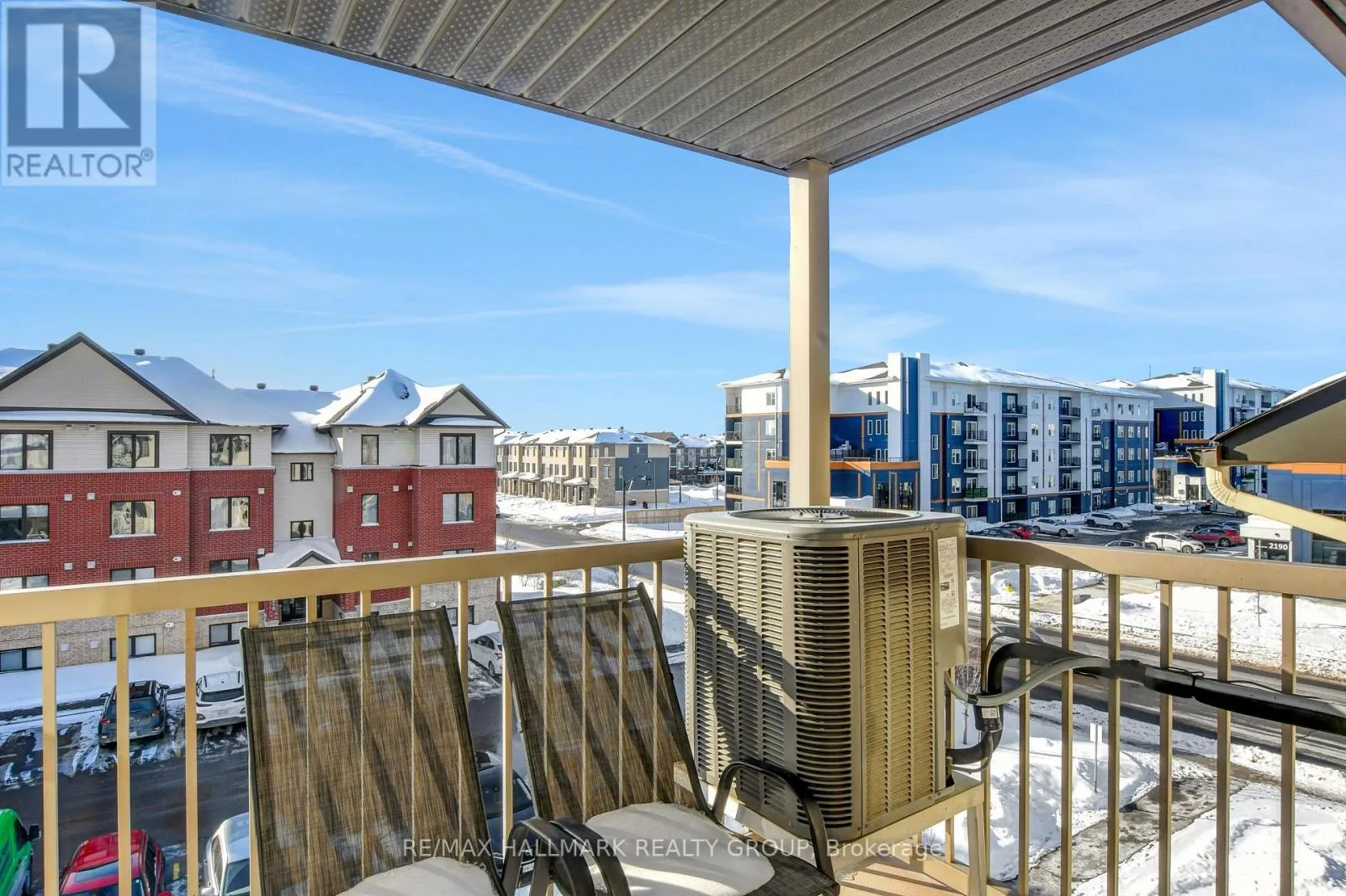 Cross Streets: Tenth Line Road / Gerry Lalonde Drive. ** Directions: South on Tenth Line, right on Gerry Lalonde Drive, left on Bluestone Private. Welcome to this bright and well maintained two bedroom, two bathroom condo in the desirable Avalon community. Located in a modern low rise building, this unit offers a comfortable and functional layout filled with natural light. The open concept living and dining area features large windows and direct access to a private balcony, creating a warm and inviting space for everyday living and entertaining. The kitchen is equipped with ample cabinetry, stainless steel appliances, and a large centre island with seating that overlooks the main living area. Both bedrooms are generously sized with large windows, while the primary bedroom offers excellent space for additional furnishings. Neutral tones and modern finishes throughout create a move in ready home that is easy to personalize. Enjoy the convenience of nearby shopping, restaurants, parks, public transit, and scenic walking paths including Aquaview Pond just steps away. An excellent opportunity for first time buyers, downsizers, or investors looking to be part of this growing Orléans neighbourhood. 24 hour irrevocable on all offers. (id:27476)