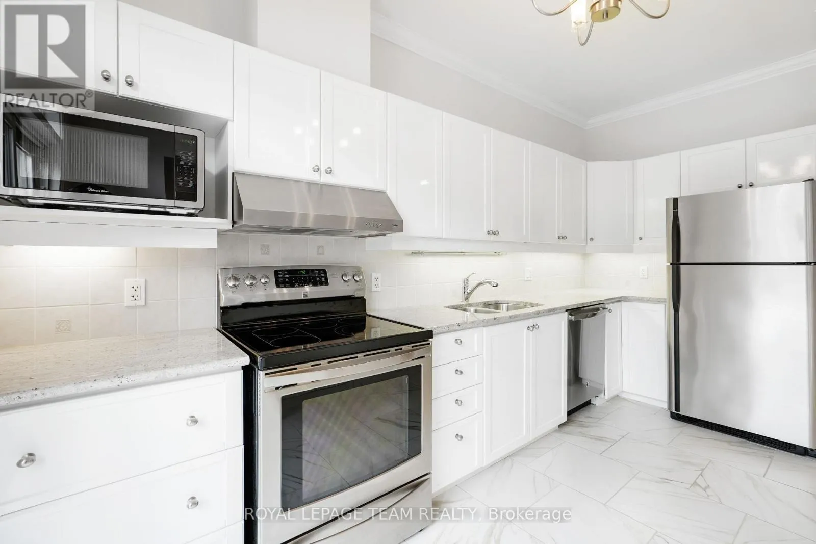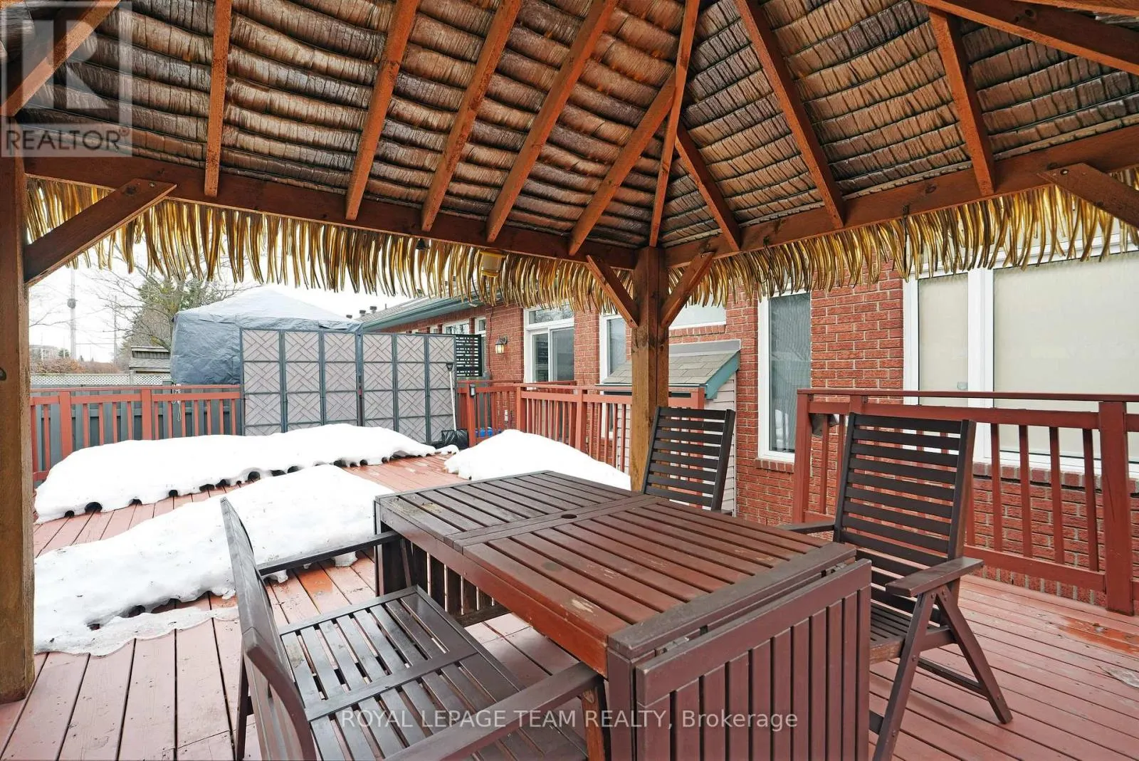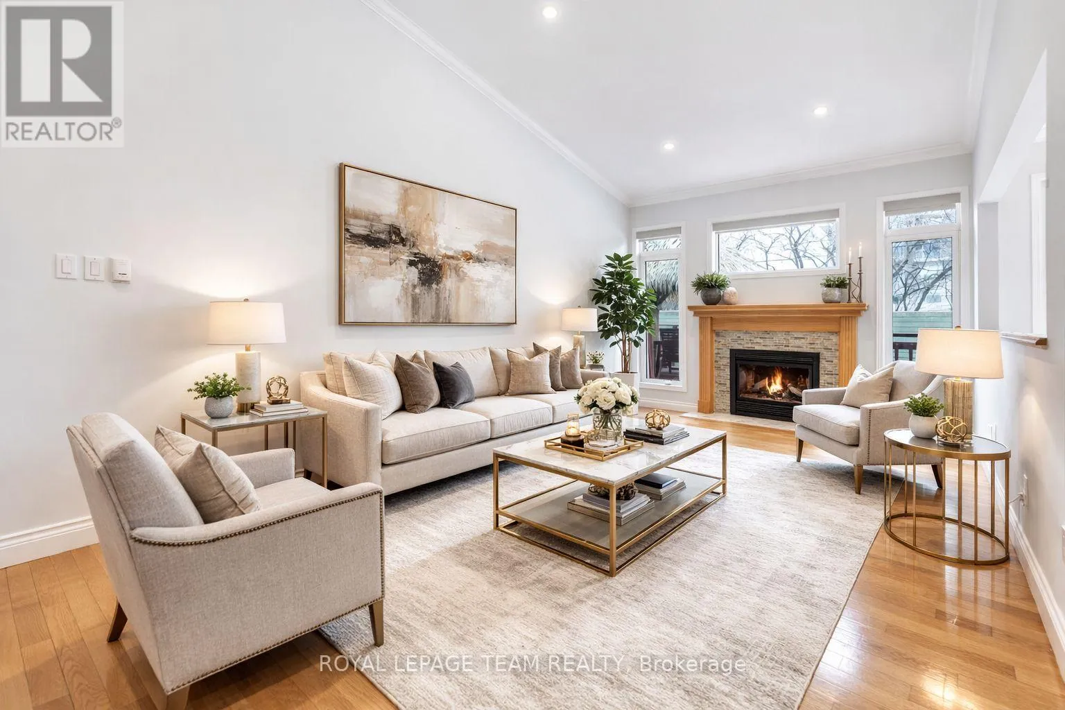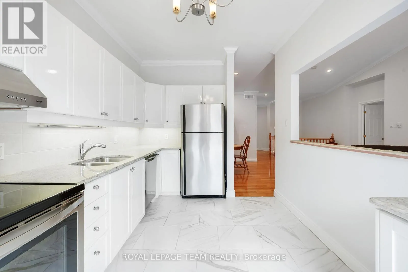 Cross Streets: Hunt Club and McCarthy. ** Directions: From Hunt Club, head North on McCarthy, turn right on Plante, right on Pattermead, then onto Bartlett and property is on your right. Rare bungalow row-unit offering sought-after one-level living, low maintenance, no grass to cut and a spacious double car garage, tucked away on a quiet private street in Ottawa.This bright, open-concept home features a functional and inviting layout, high ceilings, with generous principal rooms, gas fireplace and large windows that fill the space with natural light. Bright kitchen with updated tiles and countertops (2013). The main level includes well-proportioned bedrooms, highlighted by a spacious primary retreat complete with a beautifully renovated ensuite bathroom (2017) and walk-in closet.The unfinished basement presents an excellent opportunity for future customization with bathroom rough-in - whether you envision additional living space, a home gym, workshop, or extended storage. Step outside to enjoy the rear deck - a perfect spot for relaxing, summer barbecues, or morning coffee. Furnace (2025). Association Fee: $166 / month. (id:27476)