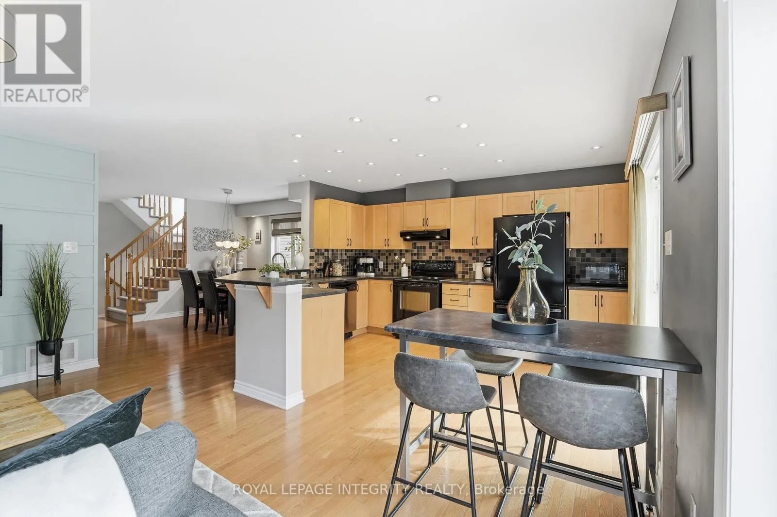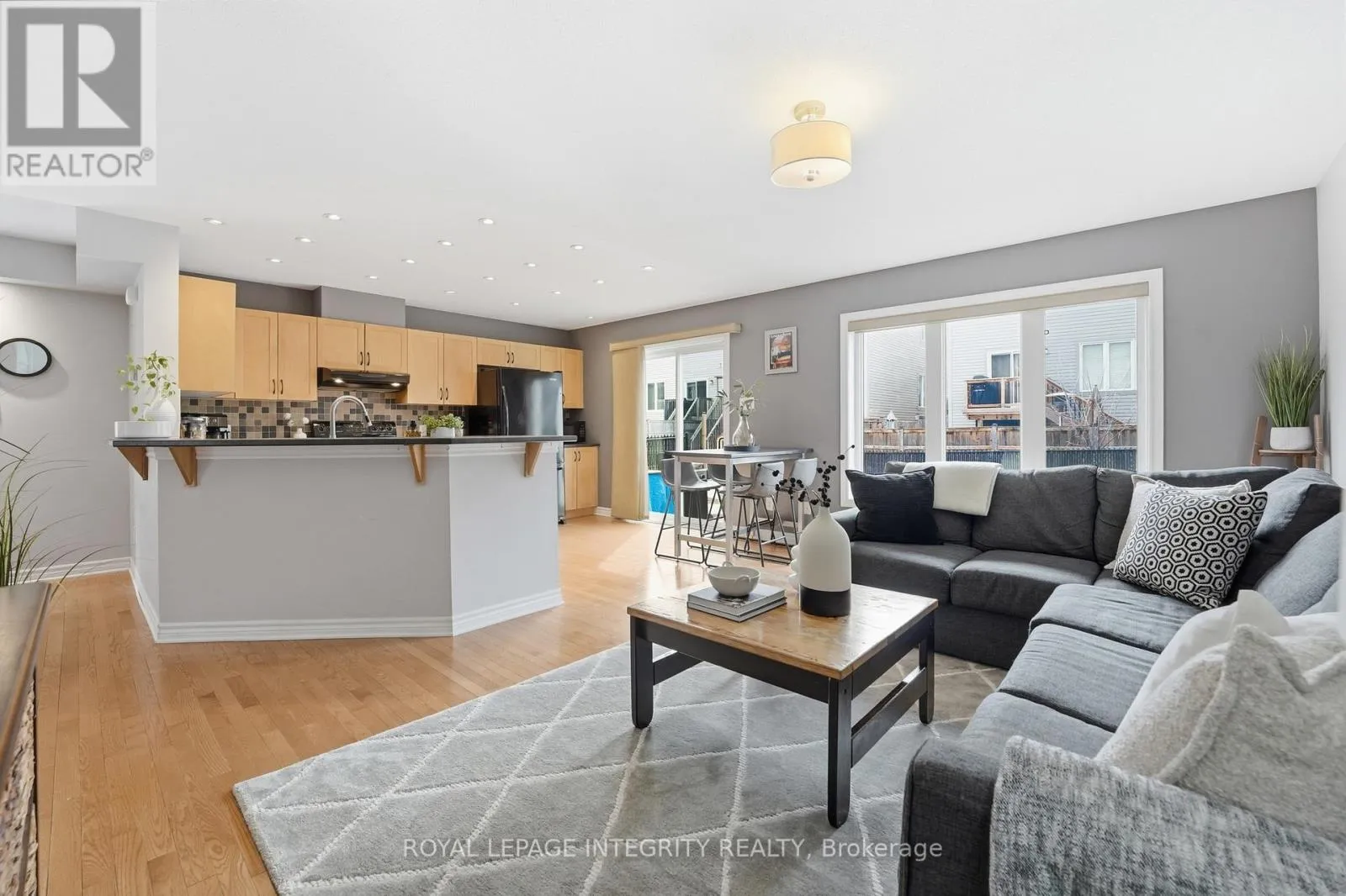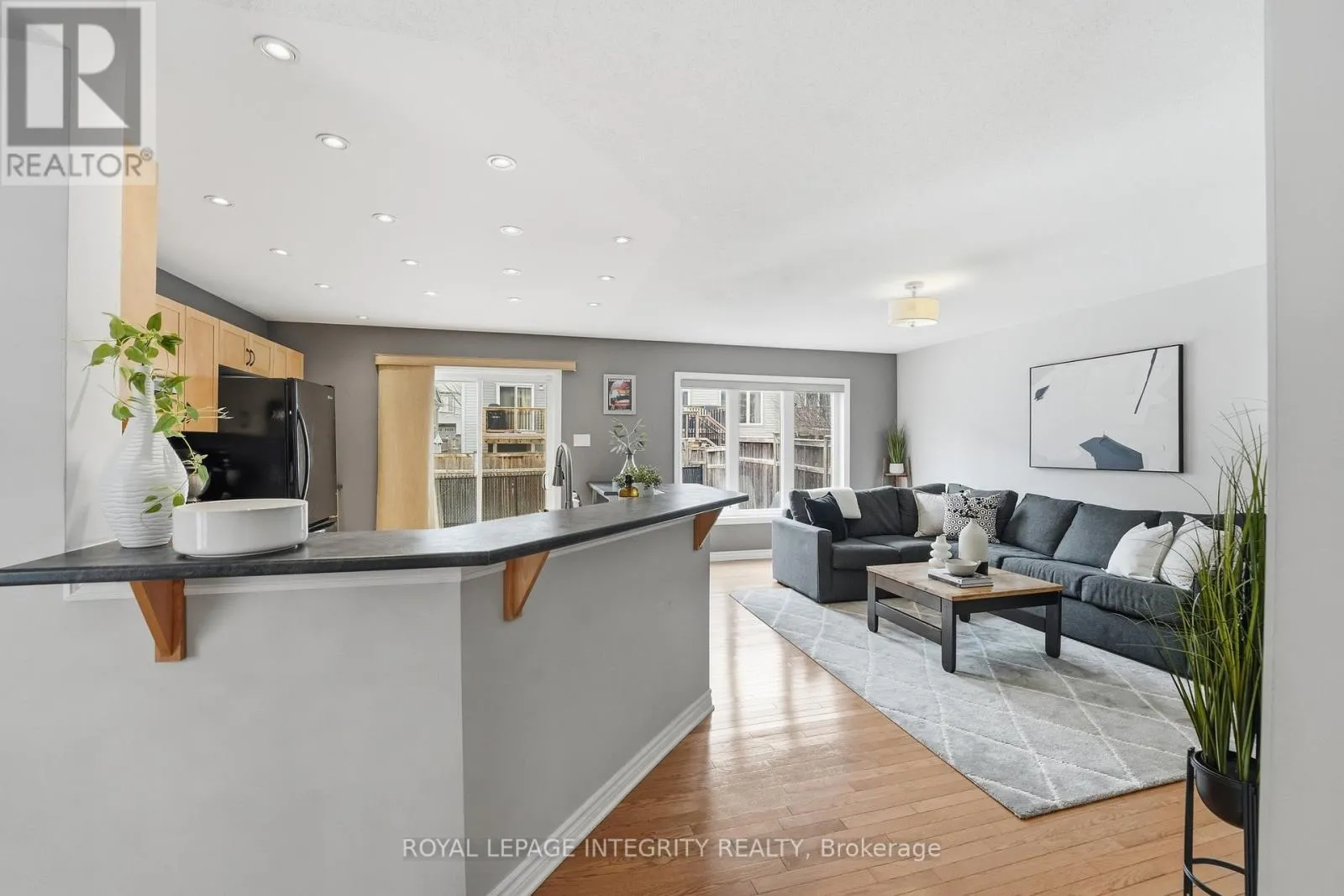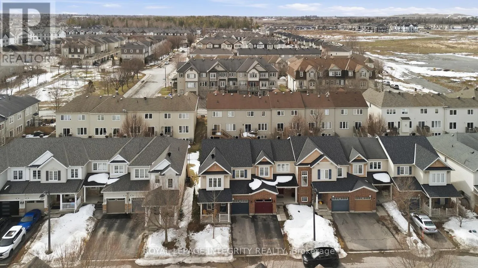 Cross Streets: Aquilo Crescent, Par-La-Ville Circle. ** Directions: Travel west on Maple Grove Road past Huntmar Drive. Turn right onto Leveche Way, then left onto Par-la-Ville Circle, which continues as Aquilo Crescent. The home is located on the left. This end-unit townhome is nestled on a quiet, family-friendly street in sought-after Fairwinds. The bright and spacious main level features an open-concept kitchen, living, and dining area-perfect for everyday living and entertaining. The kitchen offers upgraded appliances, stylish backsplash, and a convenient breakfast bar, while large windows throughout the home flood the space with natural light. Upstairs you'll find generously sized bedrooms, including a primary retreat with a large walk-in closet and private ensuite with shower. Fresh paint in the front bedroom and ensuite (2025) adds a crisp, modern touch. The second-floor laundry provides everyday convenience. The professionally finished basement features pot lights throughout and a raised floor, creating a comfortable additional living space along with plenty of storage. Step outside to a fully fenced backyard-ideal featuring an updated interlock back patio perfect for relaxing or entertaining. Recent updates include a new shingles (2025), hot water tank (2025), and dishwasher (2025) for added peace of mind. Conveniently located just a short walk to transit and close to the Canadian Tire Centre, Highway 417, restaurants, and shopping. (id:27476)