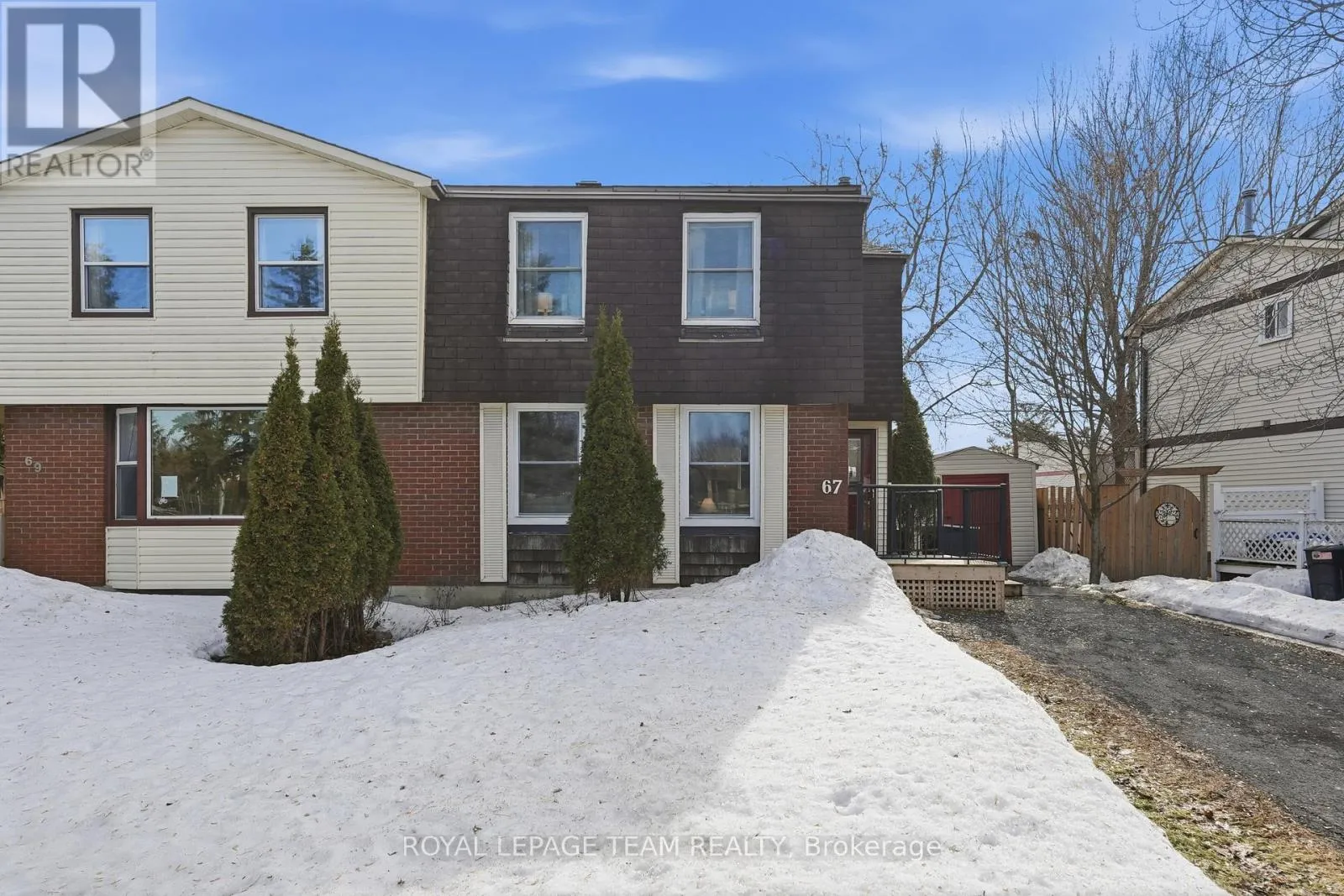 Cross Streets: Hazeldean / Castlefrank. ** Directions: West on Hazeldean Rd., Left onto Castlefrank. Welcome to this charming semi-detached home in the heart of Kanata, ideally located in a family-friendly neighbourhood close to schools, parks, shopping, and everyday amenities. Situated directly across the street from the Glen Cairn Library, tennis courts, community center, and pool, this home offers an unbeatable location for active families and those who appreciate nearby recreation and convenience. The exterior features an extra-long driveway providing ample parking and a large, fully fenced backyard, perfect for children, pets, gardening, or outdoor entertaining. A welcoming front porch deck, completed in 2023, adds to the home's curb appeal and provides a lovely spot to relax and enjoy the neighbourhood. Inside, the home has been stylishly modernized and is move-in ready. The bright and functional layout offers comfortable living space for the whole family. The main level features updated flooring and a refreshed kitchen complete with all new appliances installed in 2023. The main floor has a powder room for added convenience. Upstairs you will find three well-sized bedrooms and a 3 piece bathroom, with new carpet installed in 2021. The finished basement provides additional versatile living space, ideal for a family room, home office, playroom, or workout area. Recent updates include: the left-side backyard fence replaced in 2025, washer and dryer (2024), Furnace and A/C (2023), kitchen appliances (2023), front porch deck (2023), patio door and flooring updates (2021 - from previous listing), and electrical panel (2020 -from previous listing). Hot water tank rental replaced in 2024. With its excellent location, thoughtful updates, and welcoming layout, this home is ready to welcome its next family. (id:27476)