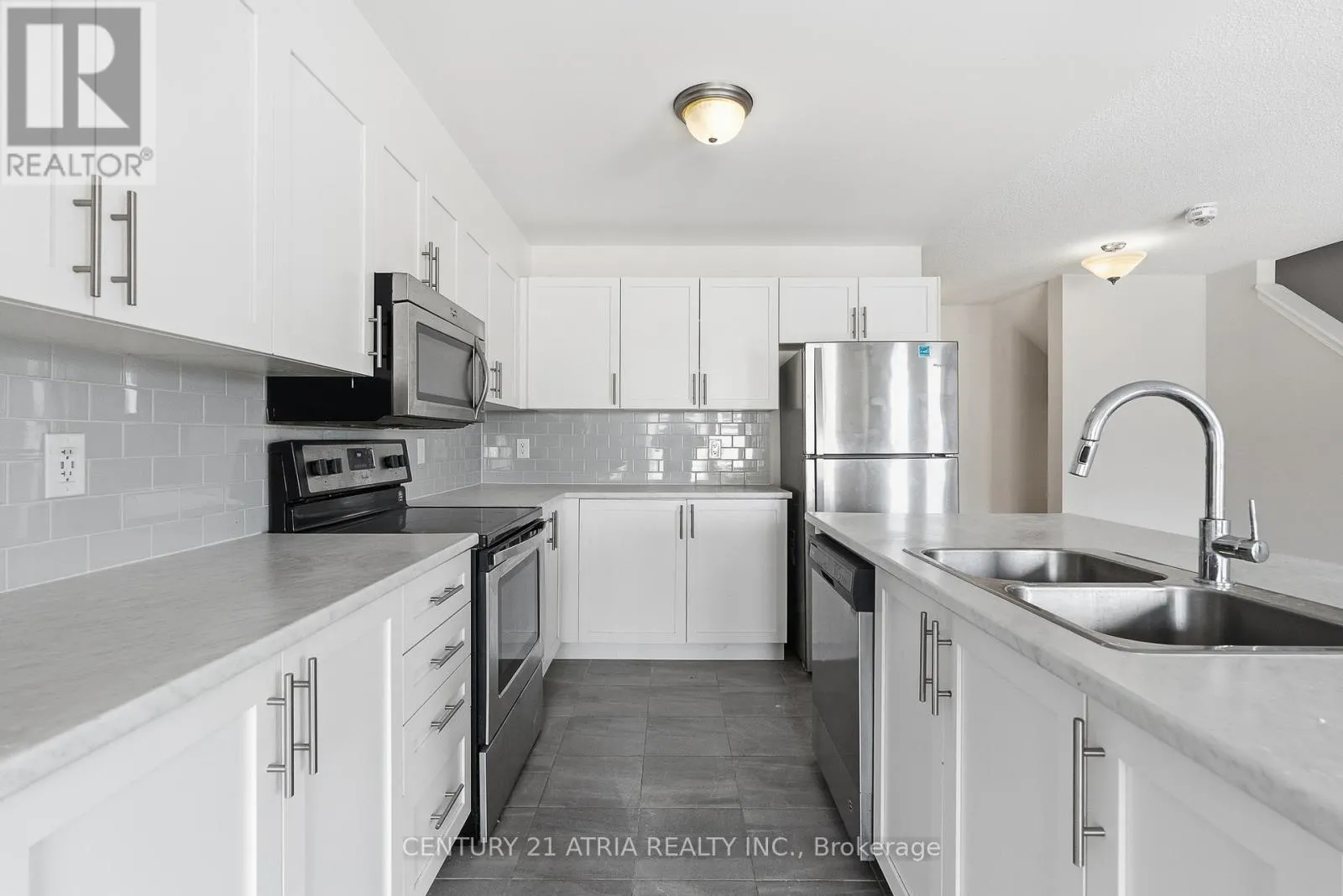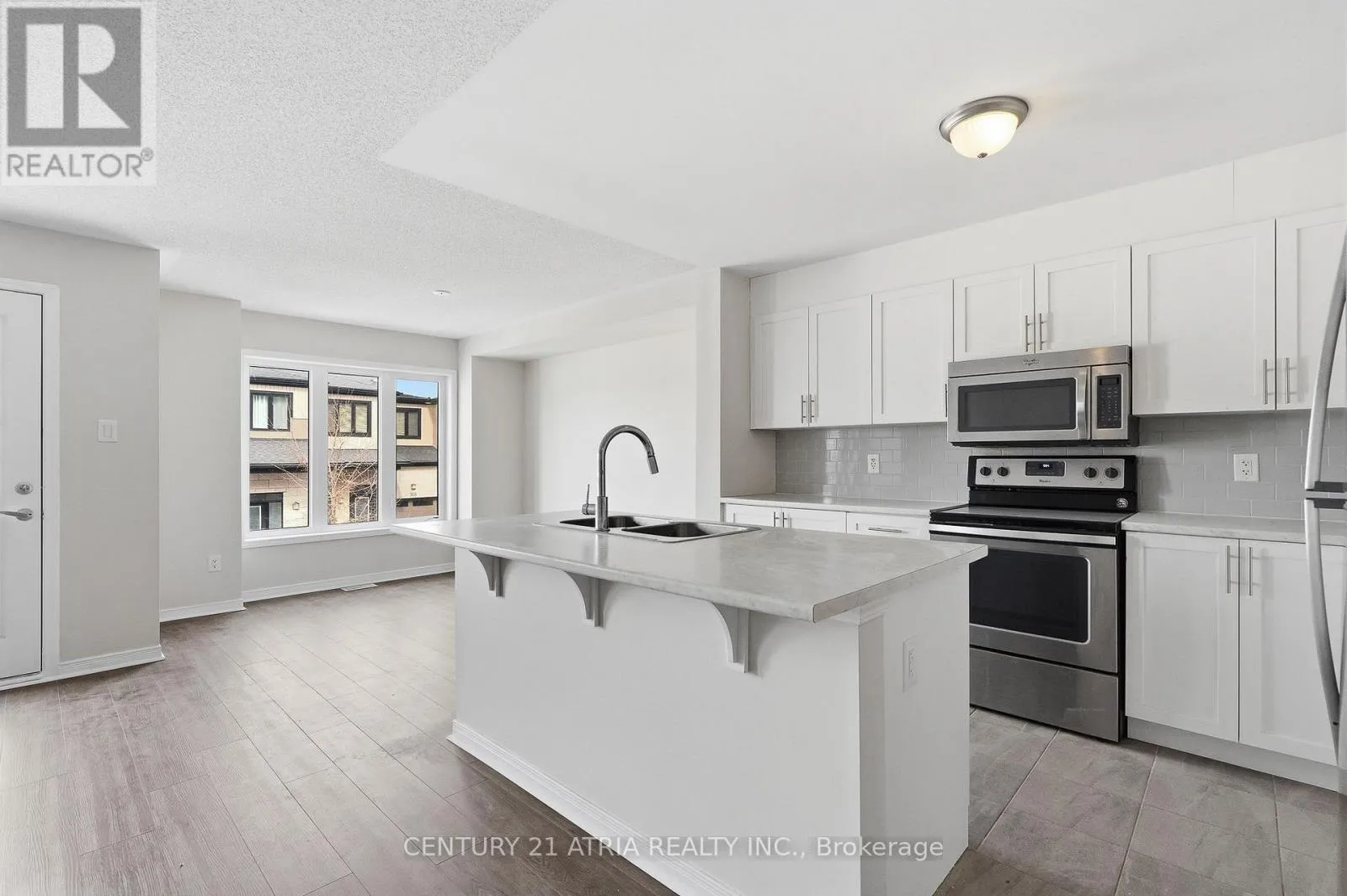 Cross Streets: Terry Fox Dr. and Eagleson Rd. ** Directions: Travel North on Eagleson Rd., turn Right on Radiant Pvt. Open House April 5th Sunday 2pm-4pm. Executive townhome, professionally renovated from top-to-bottom. This bright and modern residence features brand-new designer flooring throughout, highlighting a spacious open- concept layout illuminated by expansive wrap-around windows and contemporary pot lights. The main level offers a versatile flex space perfect for a home office or gym with internal garage access, while the second floor boasts a gourmet kitchen with premium stainless steel appliances, a custom tiled backsplash, and a walk-out to a private balcony. The upper level sanctuary includes two generously sized bedrooms, a large walk-in closet, and the ultimate convenience of a top-floor laundry room. Situated on a quiet private street minutes from top-rated schools, parks, and premium shopping, this move-in-ready gem combines sophisticated style with an unbeatable location. (id:27476)