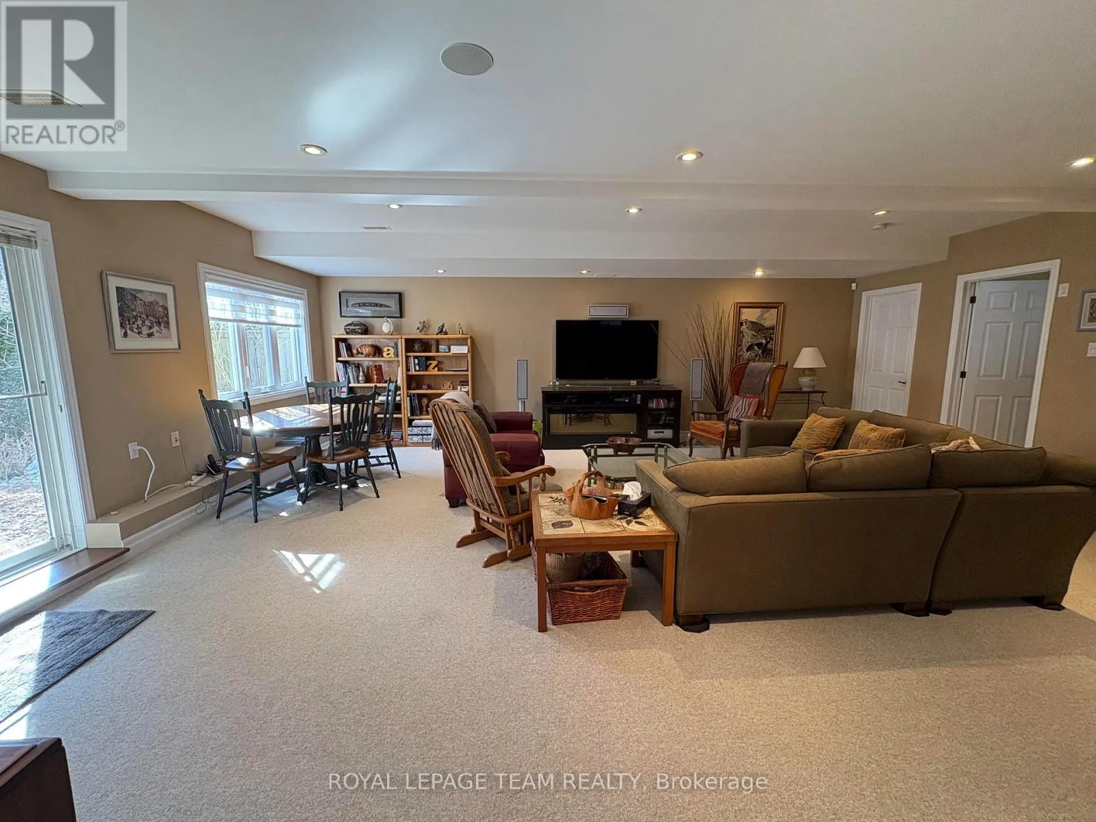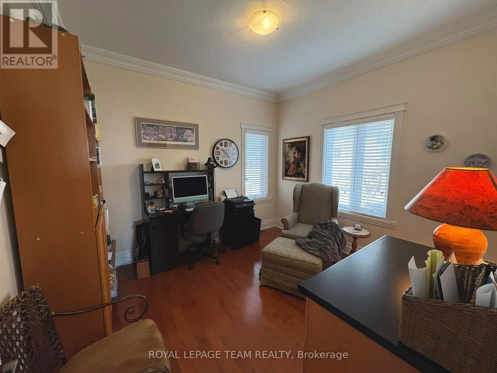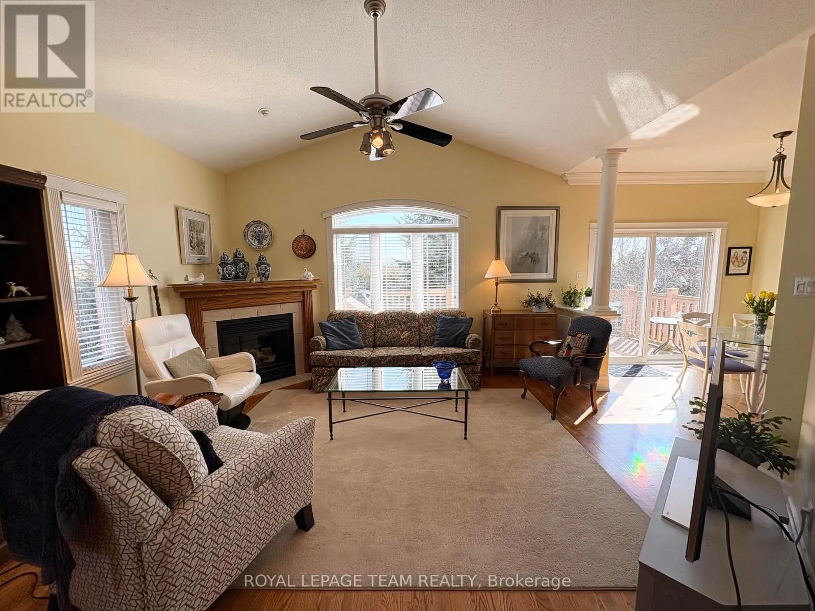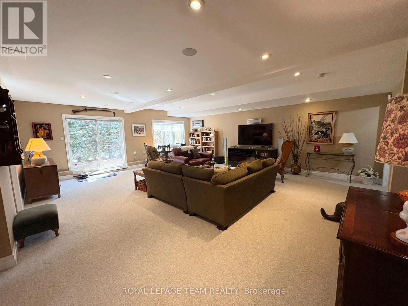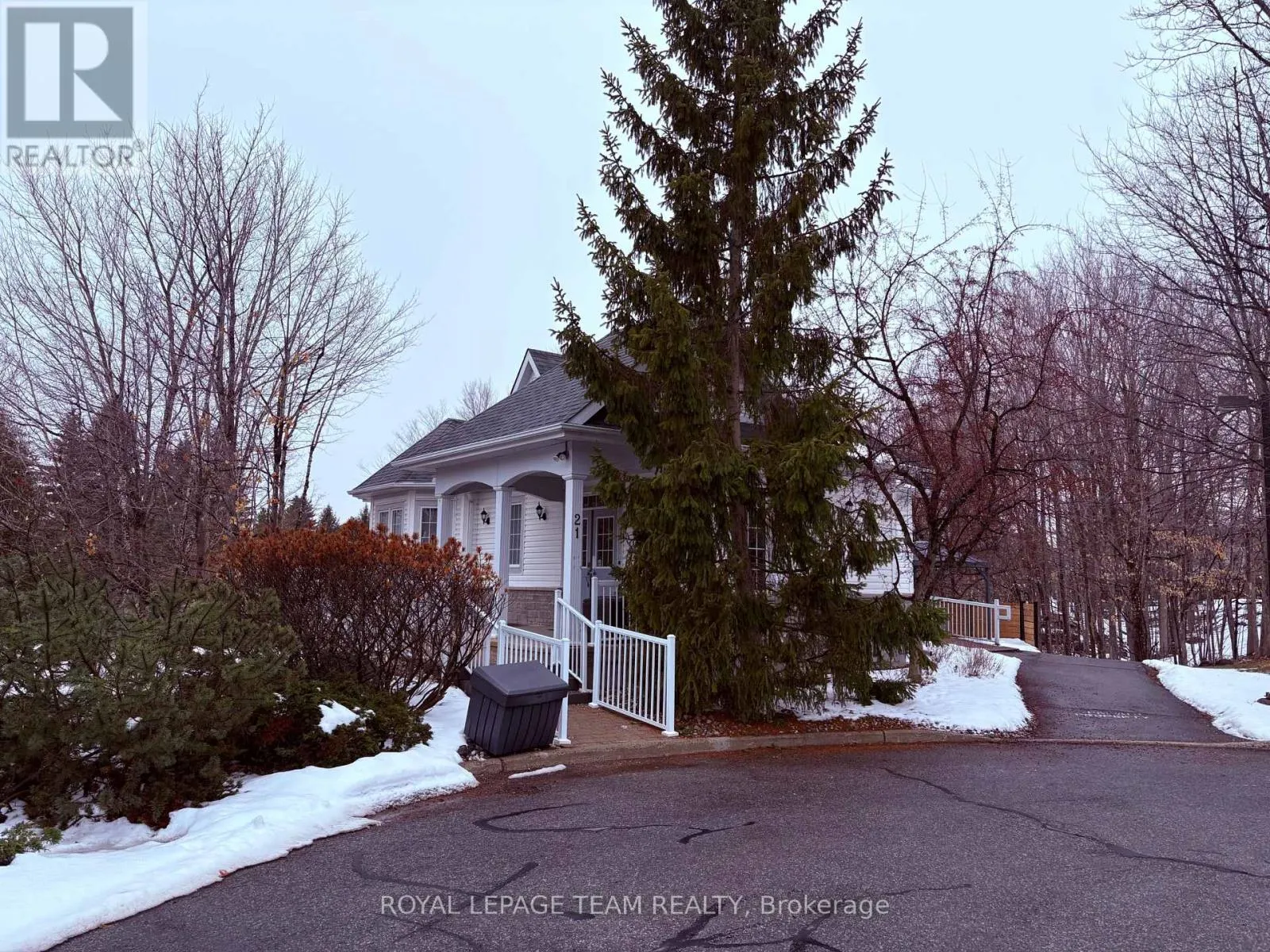 Cross Streets: Goldridge Drive. ** Directions: From 417 go north on Kanata Ave. Turn left on Goldridge Drive and turn right on Goldora Private. Welcome to the adult community of Tweedsmuir-on-the Park, nestled in the Kanata Lakes/Heritage Hills neighbourhood. This private community features a clubhouse, outdoor swimming pool, raquet court, gazebo + walking paths. This semi-detached bungalow w handy double car garage has everything you need for an easy lifestyle. The main floor's open concept layout is perfect for relaxation + entertaining family + friends. It has an L shaped living/dining rm w cozy gas fireplace, hardwood floors + premium baseboards/crown moldings. The kitchen has granite countertops, ceramic backsplash, instant hot water faucet + gas stove. The primary bedroom has space for a king size bed, has a walk-in closet (w drawers and shelves), + an ensuite w walk-in shower + double sinks w quartz countertops. Adjoining the master bedroom finds a bonus room/den, perfect as a sitting room/den or office. The main floor features a 2nd bedroom w closet + an additional bathroom w combo tub/shower. Handy main Floor laundry rm. The main floor rear patio doors leads to a roomy composite outdoor deck w electric awning. The lower level features a fabulous walkout family room, with above grade windows + patio doors which lead to an outdoor patio. The family room has a perfect layout to enjoy your big screen tv. Hook up your tv/sound system to the two ceiling speakers. The lower level also finds a third bedroom w two closets and a third bathroom w shower, which visitors/children will appreciate. Adjoining the family room is an area perfect for play or a spot to work out. This is a freehold home with POTL community co tenancy association fees (only $305/mth as of May 1, 2026) that look after the recreation facilities, driveway and walkway snow clearing ( 5cm), and grass cutting so that you don't have to, enabling you to relax and enjoy all that this lovely private community has to offer. New windows 2023 (not incl. patio drs or front door side panels or transom), Roof 2013, A/C coil + motor 2023. Come and see! (id:27476)