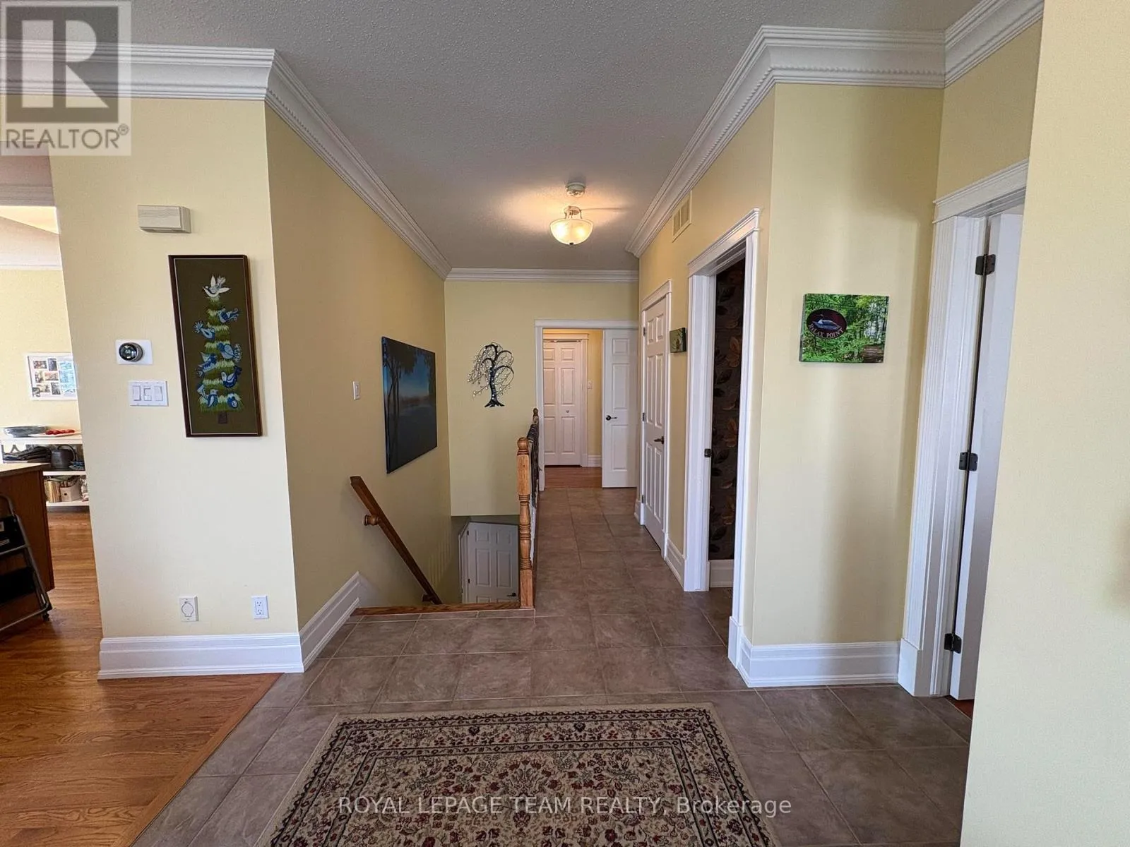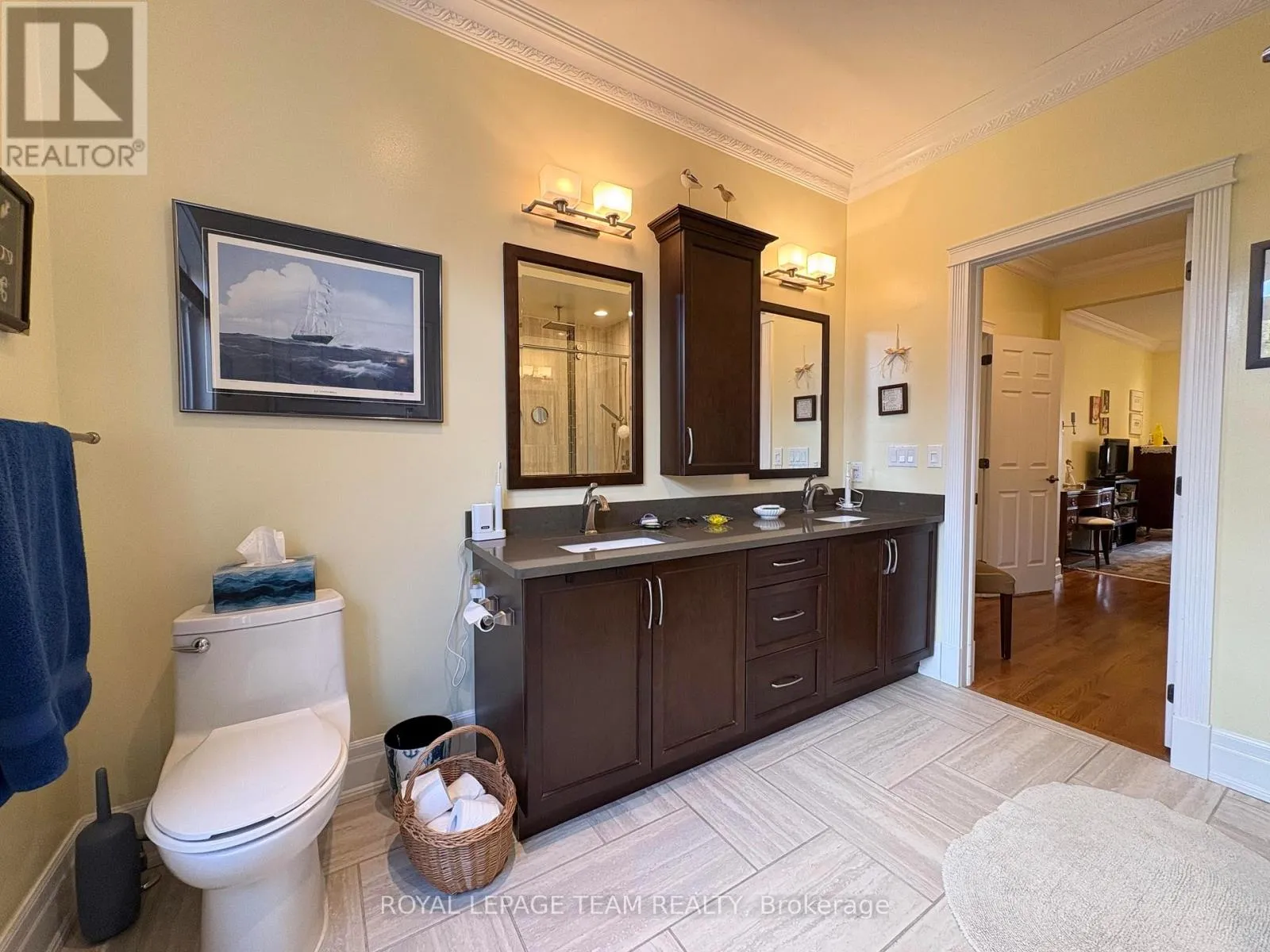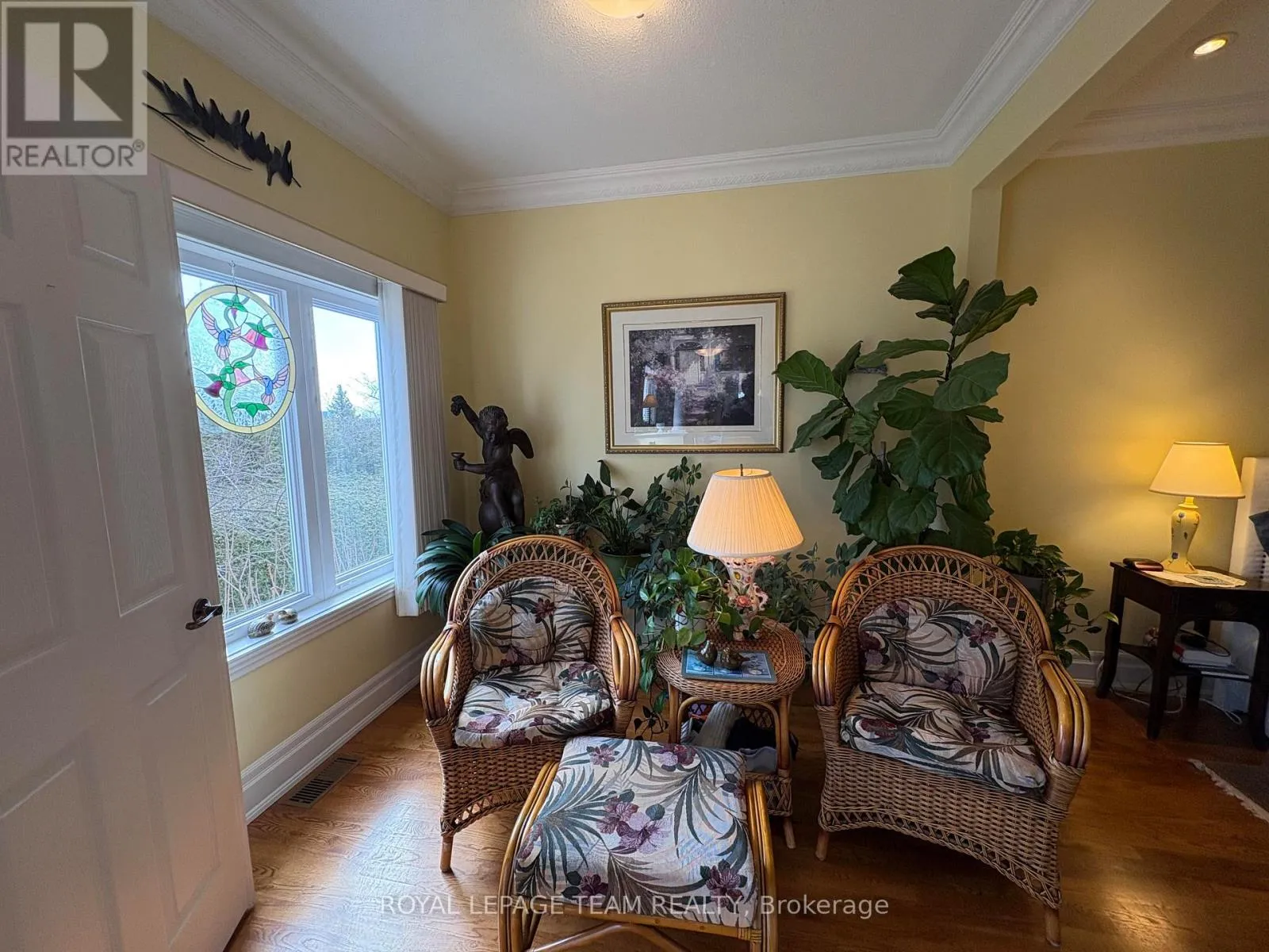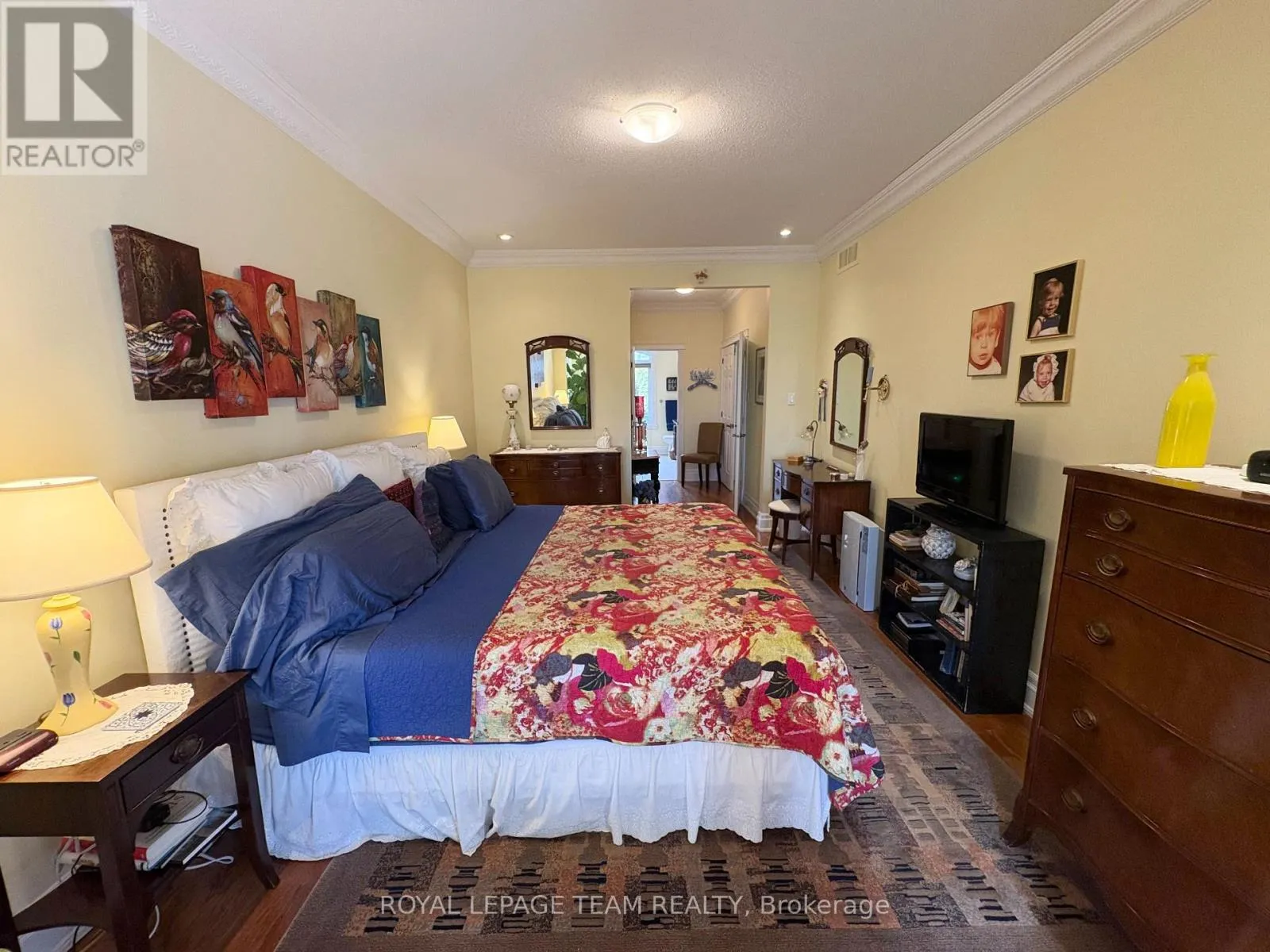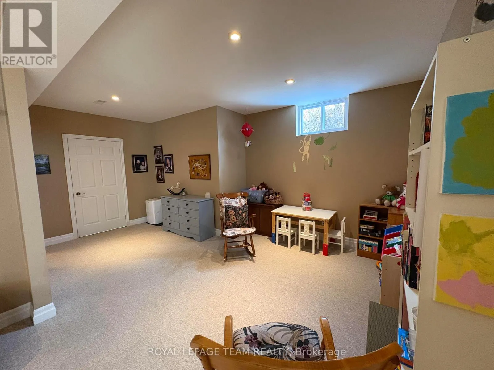 Cross Streets: Goldridge Drive. ** Directions: From 417 go north on Kanata Ave. Turn left on Goldridge Drive and turn right on Goldora Private. Welcome to the adult community of Tweedsmuir-on-the Park, nestled in the Kanata Lakes/Heritage Hills neighbourhood. This private community features a clubhouse, outdoor swimming pool, raquet court, gazebo + walking paths. This semi-detached bungalow w handy double car garage has everything you need for an easy lifestyle. The main floor's open concept layout is perfect for relaxation + entertaining family + friends. It has an L shaped living/dining rm w cozy gas fireplace, hardwood floors + premium baseboards/crown moldings. The kitchen has granite countertops, ceramic backsplash, instant hot water faucet + gas stove. The primary bedroom has space for a king size bed, has a walk-in closet (w drawers and shelves), + an ensuite w walk-in shower + double sinks w quartz countertops. Adjoining the master bedroom finds a bonus room/den, perfect as a sitting room/den or office. The main floor features a 2nd bedroom w closet + an additional bathroom w combo tub/shower. Handy main Floor laundry rm. The main floor rear patio doors leads to a roomy composite outdoor deck w electric awning. The lower level features a fabulous walkout family room, with above grade windows + patio doors which lead to an outdoor patio. The family room has a perfect layout to enjoy your big screen tv. Hook up your tv/sound system to the two ceiling speakers. The lower level also finds a third bedroom w two closets and a third bathroom w shower, which visitors/children will appreciate. Adjoining the family room is an area perfect for play or a spot to work out. This is a freehold home with POTL community co tenancy association fees (only $305/mth as of May 1, 2026) that look after the recreation facilities, driveway and walkway snow clearing ( 5cm), and grass cutting so that you don't have to, enabling you to relax and enjoy all that this lovely private community has to offer. New windows 2023 (not incl. patio drs or front door side panels or transom), Roof 2013, A/C coil + motor 2023. Come and see! (id:27476)