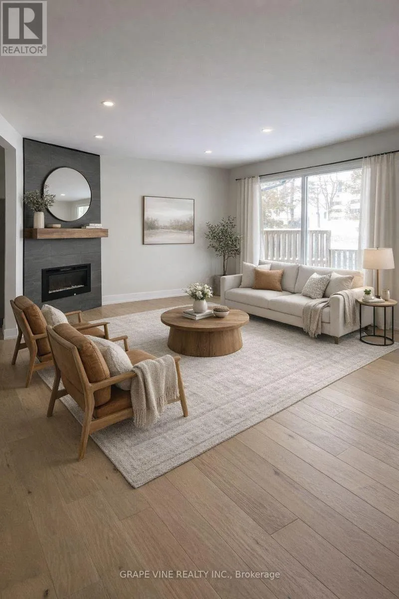 Cross Streets: HUNT CLUB / DOWNPATRICK. ** Directions: HUNT CLUB to DOWNPATRICK. Welcome to this beautifully fully renovated 3-bedroom, 1.5-bath end-unit townhouse, perfectly situated in a prime location just minutes from the airport and close to convenient public transit. This bright, modern home has been thoughtfully updated from top to bottom, offering both style and functionality for today's lifestyle. Step inside to discover brand new engineered hardwood flooring, contemporary lighting, and a spacious open living and dining area designed for both entertaining and relaxing. A stunning built-in corner electric fireplace creates a cozy focal point, perfect for quiet evenings at home. The completely redesigned kitchen features sleek new cabinetry, elegant quartz countertops, and brand new appliances, blending modern design with everyday practicality. Upstairs, you'll find three generously sized bedrooms with new flooring and updated lighting throughout, along with a beautifully renovated full bathroom finished with stylish, modern touches. The home also includes numerous mechanical and structural upgrades for added peace of mind, including a new 60-gallon gas hot water tank, a new 100-amp electrical breaker panel, updated outlets and switches (pigtailed with some new copper wiring), and new drywall on the ground floor ceiling. Additional improvements include a new laundry sink, new ceramic flooring, and new carpet on the stairwells and in the downstairs recreation room. Ideally located near shopping, schools, parks, and major commuter routes, this turnkey property offers exceptional convenience and comfort, making it a fantastic opportunity for professionals, families, or investors seeking a move-in-ready home in a highly accessible neighborhood. (id:27476)