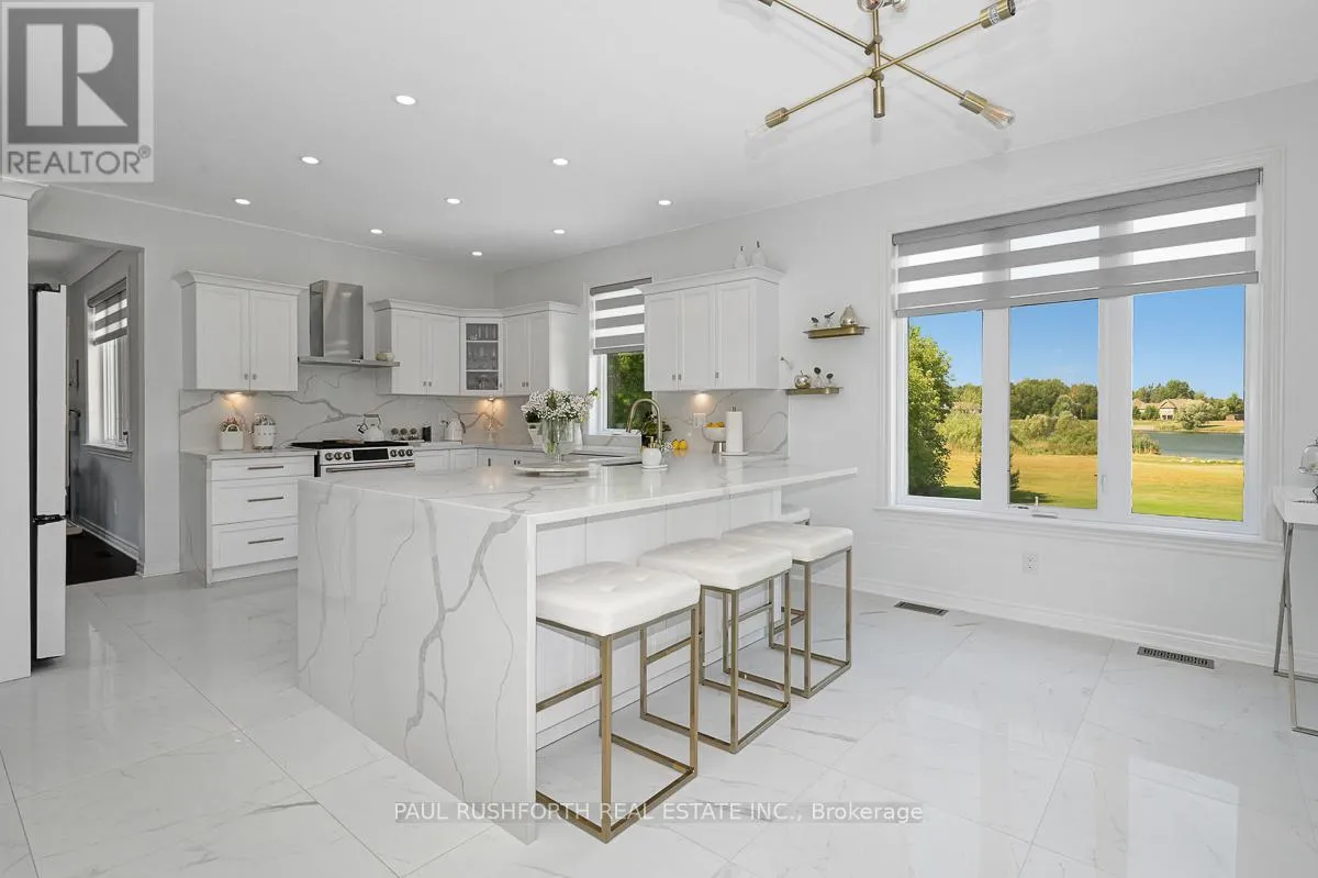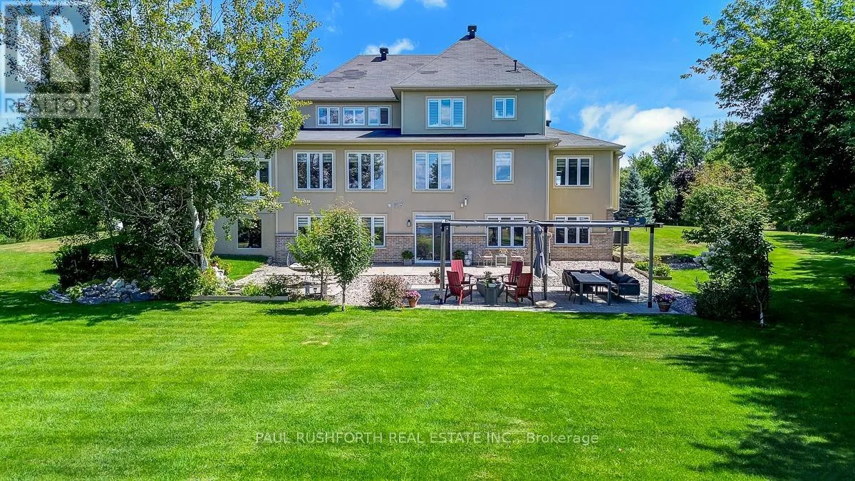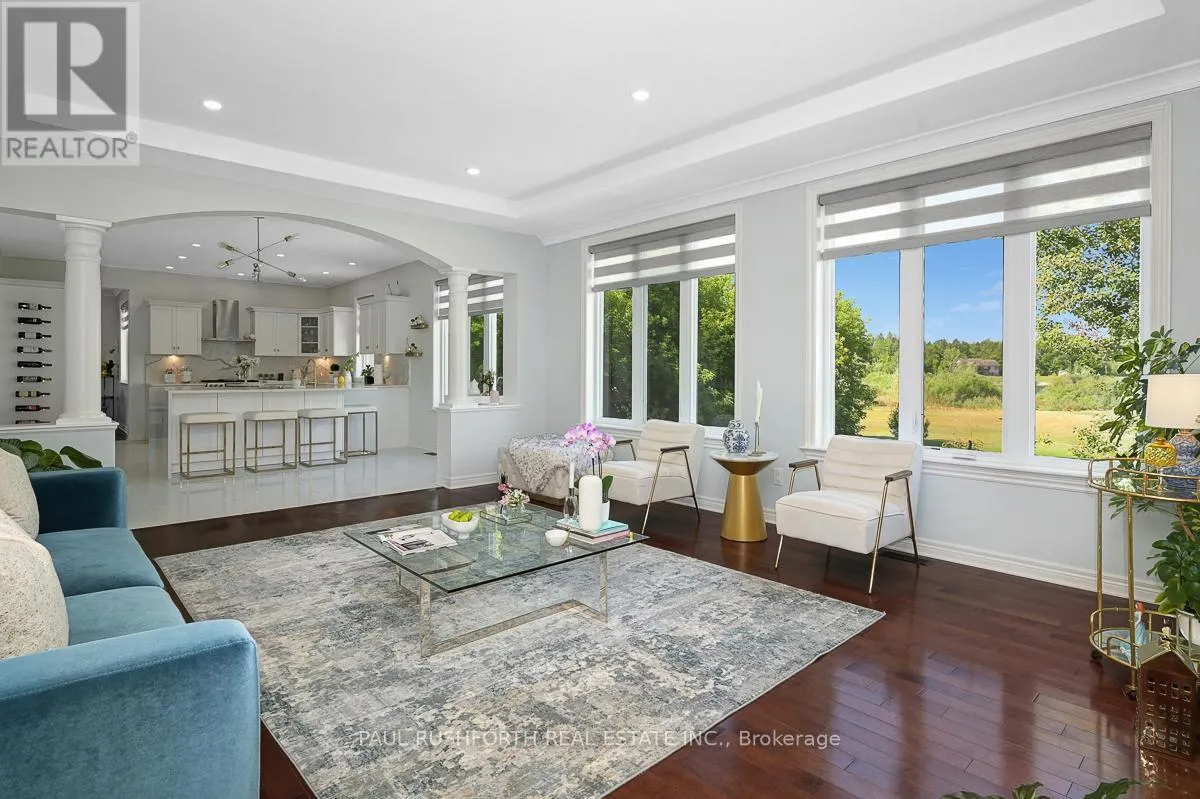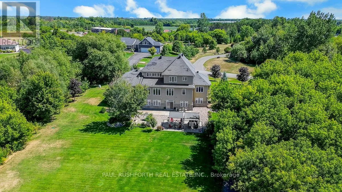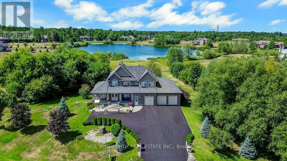 Cross Streets: McGee Side Rd. ** Directions: HWY 417 to Carp North, Left onto McGee side rd, left onto West Lake Cir. Experience the ultimate in waterfront living with this exceptional 5 bedroom, 5 bath residence set on a private 2.3 acre lot with over 120 feet of direct lake frontage in sought after West Lake Estates. Offering rare year round access to the water, this property delivers a lifestyle that is peaceful, private, and just minutes from the city. Perfectly located only 10 minutes from Kanata's tech hub, shopping, and dining, and just 5 minutes to Highway 417 for an easy downtown commute. Custom built in 2010 and offering approximately 5,000 sq ft of finished living space, this residence has been extensively upgraded with over $500,000 in renovations, blending timeless craftsman design with refined modern finishes. The main level showcases its waterfront setting with expansive living and dining areas, oversized windows, and stunning lake views. The chef's kitchen features Calcutta quartz counters and backsplash, white shaker cabinetry, oversized peninsula, and high end appliances. A bright breakfast area and inviting family room with gas fireplace flow into a sun-filled three season room with panoramic lake views. A dedicated office, oversized mudroom, and convenient laundry with garage access complete this level. Upstairs, three suite style bedrooms offer comfort and privacy, including a primary retreat with tranquil views and a spa inspired ensuite with freestanding tub, dual vanities, and glass walk in shower. The fully finished walkout lower level adds two bedrooms, a full bathroom, recreation space, and ample storage. Outdoors, enjoy landscaped grounds with mature trees, stone patio, pergola, fruit-bearing orchard, and direct lake access perfect for relaxing or entertaining. Additional features include a three car garage, 10 zone sprinkler system, GenerLink wiring, 40amp EV receptacle, new furnace, A/C, owned water heater, and epoxy-coated porch. Annual co-tenancy fee of $100 covers lake maintenance. (id:27476)