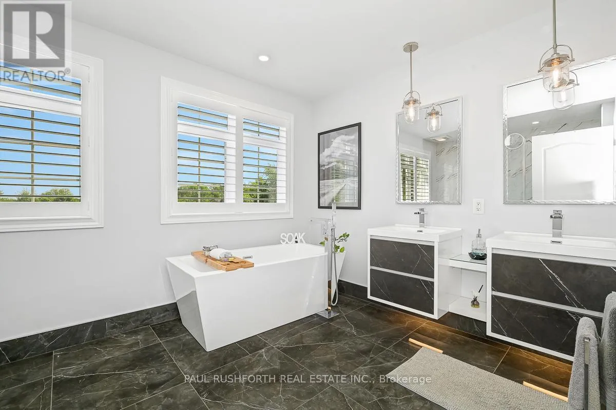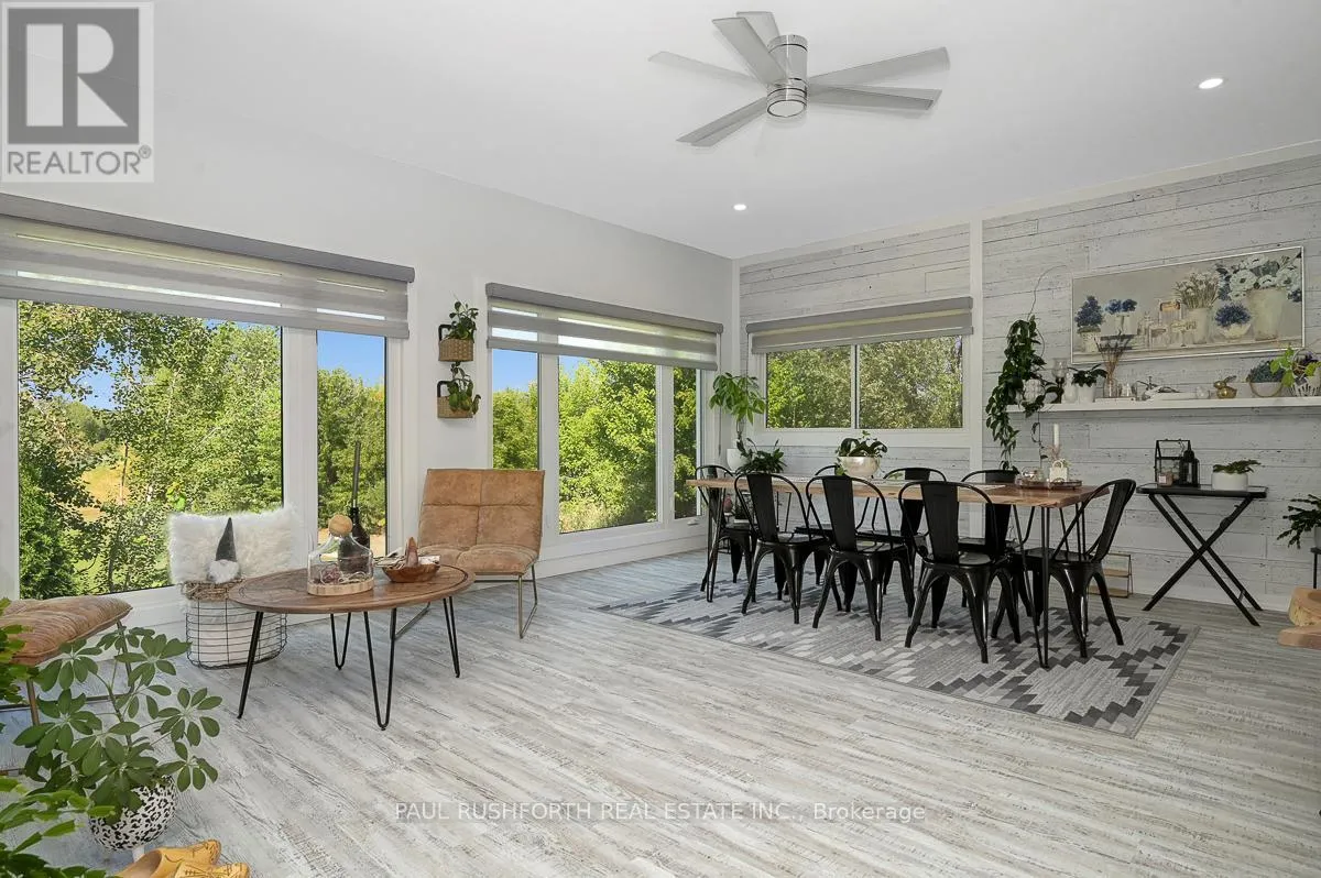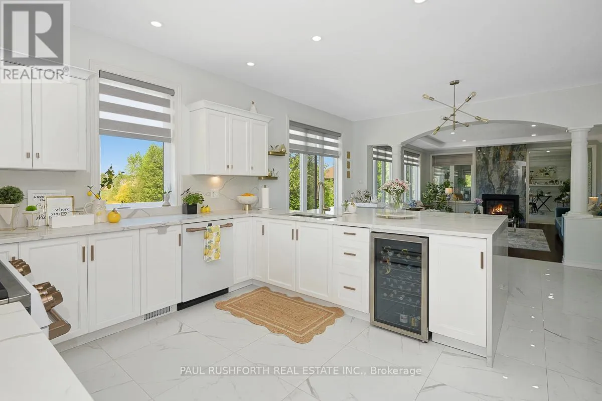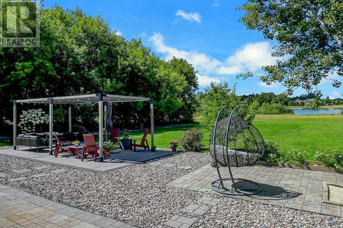Cross Streets: McGee Side Rd. ** Directions: HWY 417 to Carp North, Left onto McGee side rd, left onto West Lake Cir. Experience the ultimate in waterfront living with this exceptional 5 bedroom, 5 bath residence set on a private 2.3 acre lot with over 120 feet of direct lake frontage in sought after West Lake Estates. Offering rare year round access to the water, this property delivers a lifestyle that is peaceful, private, and just minutes from the city. Perfectly located only 10 minutes from Kanata's tech hub, shopping, and dining, and just 5 minutes to Highway 417 for an easy downtown commute. Custom built in 2010 and offering approximately 5,000 sq ft of finished living space, this residence has been extensively upgraded with over $500,000 in renovations, blending timeless craftsman design with refined modern finishes. The main level showcases its waterfront setting with expansive living and dining areas, oversized windows, and stunning lake views. The chef's kitchen features Calcutta quartz counters and backsplash, white shaker cabinetry, oversized peninsula, and high end appliances. A bright breakfast area and inviting family room with gas fireplace flow into a sun-filled three season room with panoramic lake views. A dedicated office, oversized mudroom, and convenient laundry with garage access complete this level. Upstairs, three suite style bedrooms offer comfort and privacy, including a primary retreat with tranquil views and a spa inspired ensuite with freestanding tub, dual vanities, and glass walk in shower. The fully finished walkout lower level adds two bedrooms, a full bathroom, recreation space, and ample storage. Outdoors, enjoy landscaped grounds with mature trees, stone patio, pergola, fruit-bearing orchard, and direct lake access perfect for relaxing or entertaining. Additional features include a three car garage, 10 zone sprinkler system, GenerLink wiring, 40amp EV receptacle, new furnace, A/C, owned water heater, and epoxy-coated porch. Annual co-tenancy fee of $100 covers lake maintenance. (id:27476)