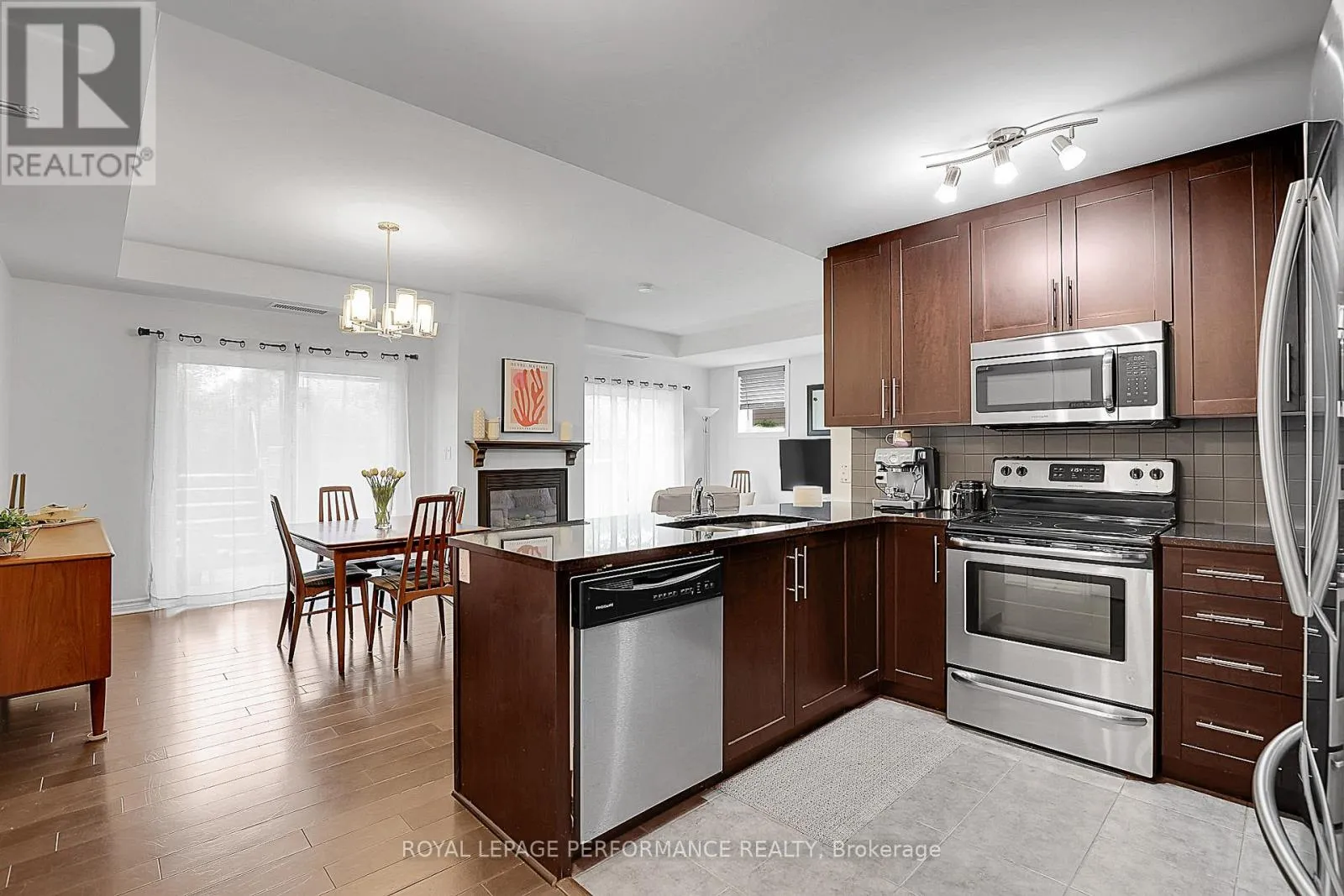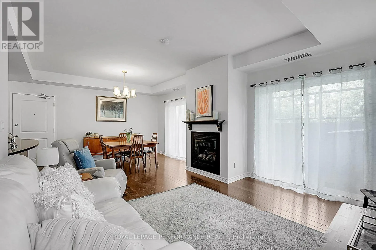 Cross Streets: Jeanne D'Arc and Tenth Line. ** Directions: Jeanne D'. OH SO AFFORDABLE! Bright, beautifully maintained, and sun-filled, this corner/end unit offers extra windows and sits just a few steps below ground level, with the added bonus of a stair lift for ease of access if needed. The open-concept layout features hardwood floors throughout, a cozy gas fireplace, and convenient in-unit laundry. The kitchen is both stylish and functional, showcasing granite countertops, stainless steel appliances, extended cabinetry, a large pantry, and a breakfast bar perfect for casual dining. The spacious primary bedroom includes a walk-in closet, while the generous second bedroom is ideal for guests or a home office. Enjoy peaceful surroundings that back onto a creek, with easy access to Petrie Island, parks, LRT, cycling paths, and the Heritage East Trails-perfect for cross-country skiing and year-round outdoor enjoyment. And don't let the first-floor location deter you, especially if you have a dog, since there are walking and biking paths right at your doorstep. Condo fees of $640/month include water, building insurance, management, common area maintenance, snow removal, and garbage disposal, offering true low-maintenance living in a nature-filled setting. Average utility costs are approximately $80/month for hydro and $60/month for gas (seasonally dependent). The furnace rental will be paid out by the Seller upon closing. (id:27476)