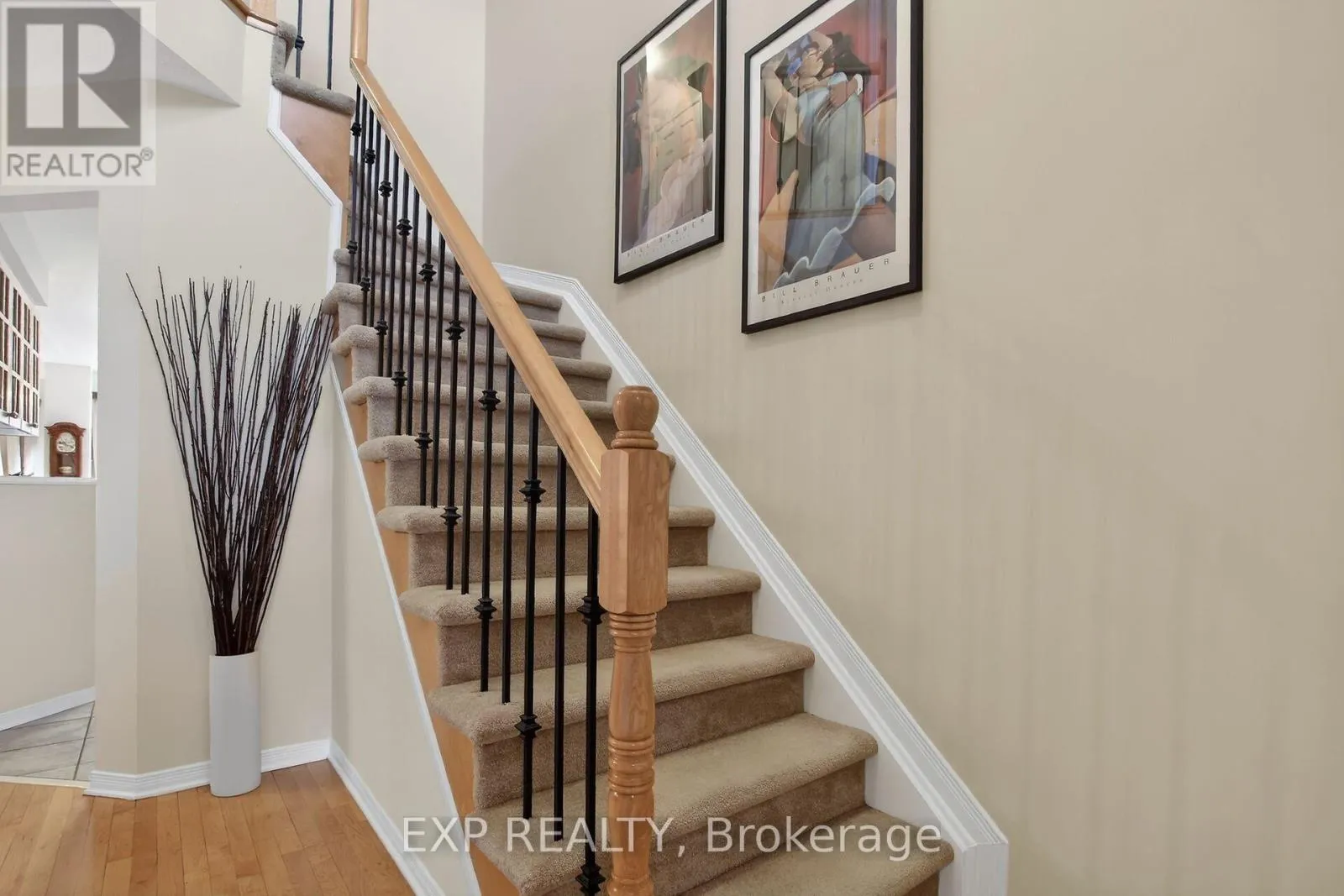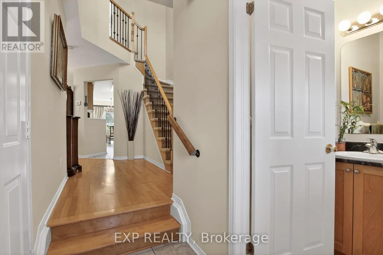 Cross Streets: Kanata Ave to Goldridge. ** Directions: Campeau Dr to Kanata Ave to Goldridge Dr. Seize the opportunity to own this beautifully maintained, move-in-ready 3-bedroom townhome nestled in a quiet, family-friendly neighborhood , surrounded by excellent schools, shopping, recreation, and transit options, this elegant Kanata Lakes townhome offers an outstanding lifestyle opportunity in one of the area's most desirable communities. This exceptional home offers a refined blend of comfort, style, and everyday convenience. The bright and thoughtfully designed main level welcomes you with an elegant living space, a spacious dining area ideal for entertaining, and a well-appointed eat-in kitchen featuring upgraded cabinetry and counter space. Expansive windows fill the home with natural light, creating a warm and inviting ambiance throughout. Stylish metal railings on both the staircase to the upper level and the basement add a modern architectural touch and enhance the home's contemporary appeal. Upstairs, you'll find three generously sized bedrooms and tastefully designed bathrooms offering both comfort and functionality. The primary bedroom features a versatile extension that can serve as a private home office, reading retreat, or cozy sitting area-perfect for today's flexible lifestyle. The finished lower level offers additional living space/cozy family room designed for relaxation and versatility, highlighted with a fireplace. Whether used as a media lounge, home gym, office, or hobby space, this level provides exceptional flexibility along with a dedicated laundry area and abundant storage. Step outside to enjoy the private, partially fenced backyard ( two sides ) - an ideal setting for quiet evenings, outdoor dining, or summer gatherings with family and friends. An attached garage with inside entry adds everyday ease and practicality. Owned HWT/Furnace 2024, attic ventilation upgrade 2019, all toilets 2023, some new paint 2026, washer and dryer units 2019 (id:27476)