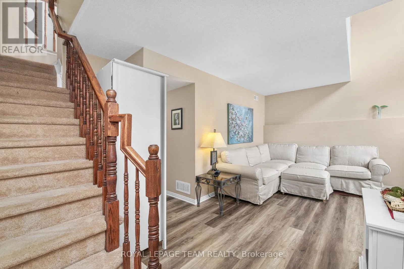 Cross Streets: Tyrrell Place. ** Directions: From Moodie Drive turn onto Tyrrell Place, then turn left onto Wharhol Private. Property is on your left. Parking spot #147 or continue straight to visitors' parking on the left. Welcome to 147 Warhol Private, an impressive 2-bedroom, 1.5-bathroom end-unit condominium in the heart of Westcliffe Estates. This spacious two-storey home offers over 1,400 sq. ft. of functional living space, featuring a bright, neutral decor that is move-in ready. As an end unit, the home benefits from an extra side window, flooding the open-concept living and dining areas with natural light. Both levels of this home feature luxury vinyl plank flooring, professionally installed in September 2025. The spacious kitchen is designed for functionality with ceramic tile flooring, plenty of counter space, a double sink, and a pantry for additional storage. Adjacent to the kitchen, the sunny eating area features sliding patio doors leading to a private raised deck with steps down to the yard, perfect for outdoor relaxation. Conveniently tucked away in a closet off the eating area, you will find the main-level laundry. The lower level features a family room area open to the upper floor, creating an airy and bright feel. The primary bedroom includes a walk-in closet and cheater ensuite access to the 4-piece main bath, which offers a soaker tub and separate shower. A second bedroom, a large utility/storage room, and a linen closet complete this level. This low-maintenance home includes custom blinds, attractive light fixtures throughout, a parking spot (#147) directly in front, plus plenty of visitors' parking. Condo fees include water, snow removal, lawn maintenance, etc. The location is unbeatable, just a 7-minute walk to NCC Greenbelt trails and a block from the Westcliffe Community Centre's soccer fields, splash pad, running track, sand volleyball courts and rink in winter. Enjoy close proximity to the DND Carling site, Queensway Carleton Hospital, shopping, restaurants and public transit. Everything you need is just minutes away! (id:27476)