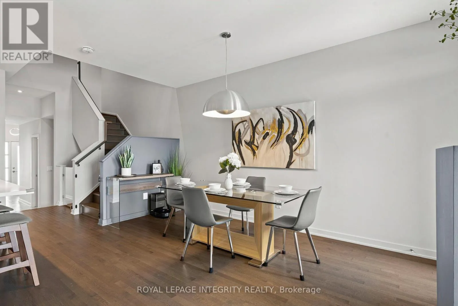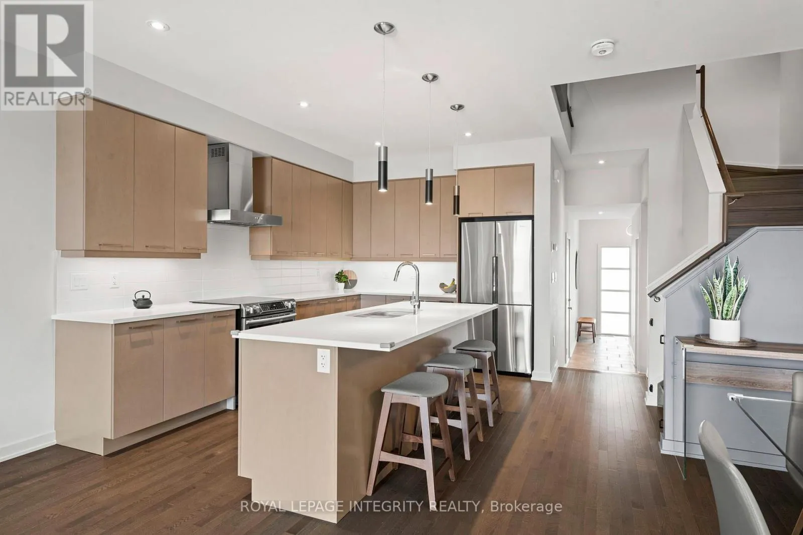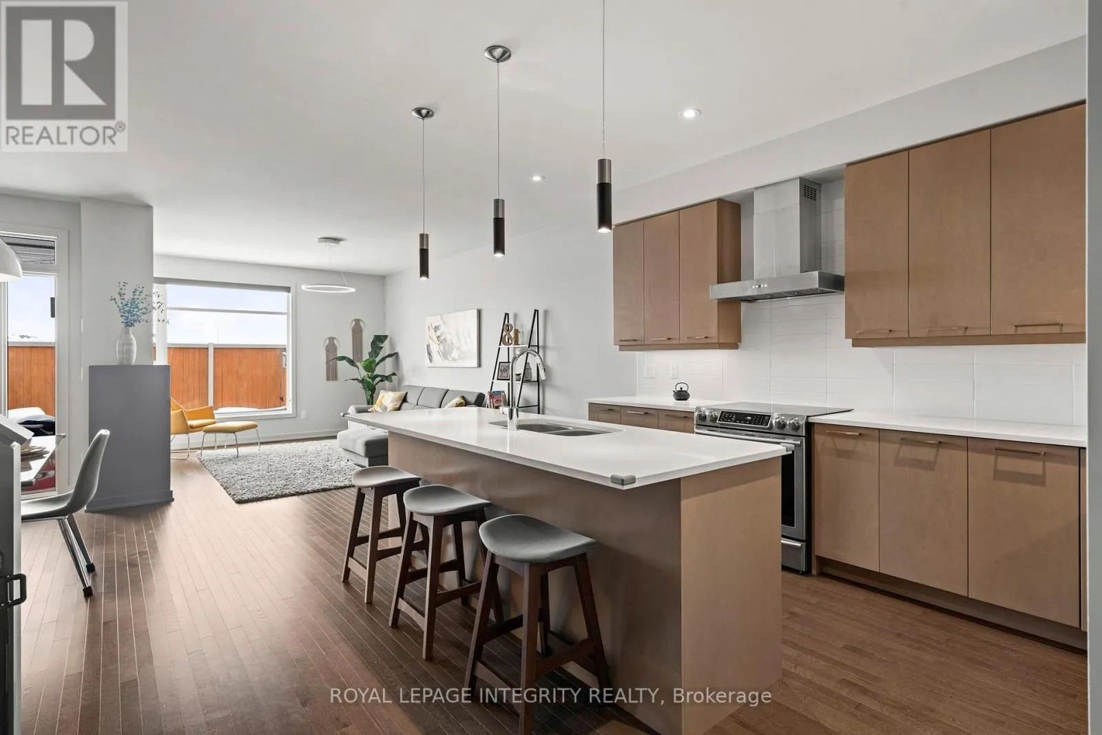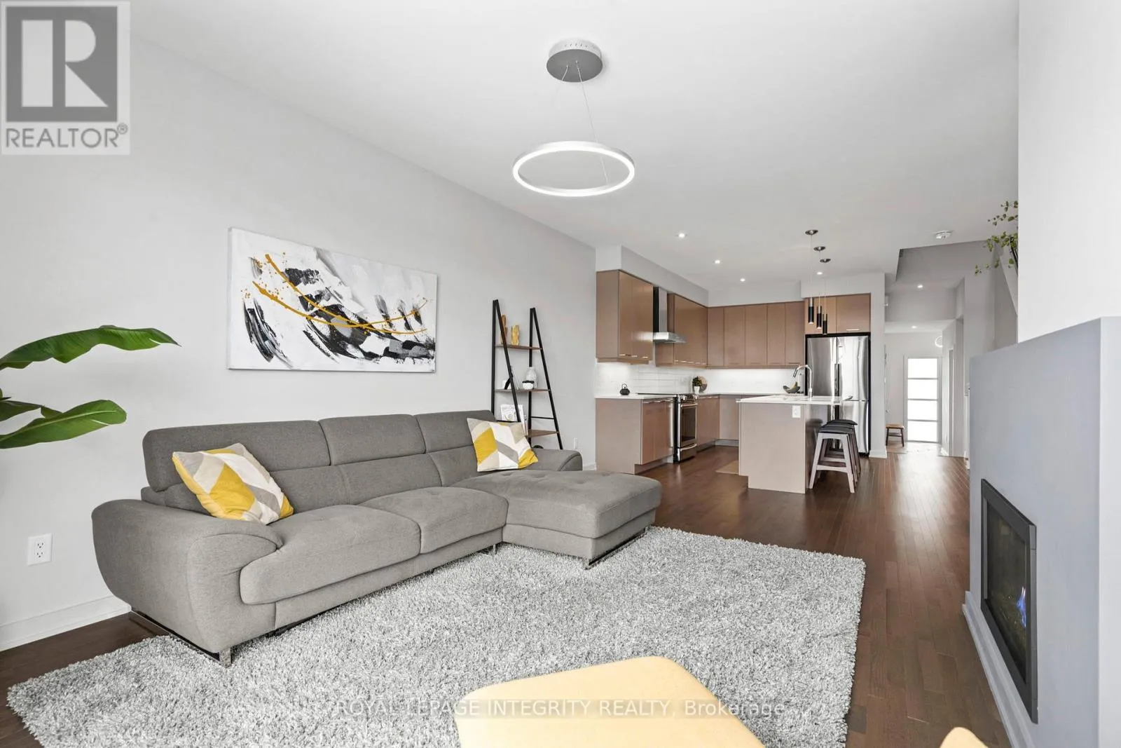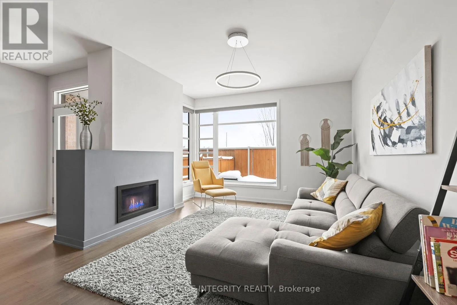 Cross Streets: Earl Armstrong and Portico Way. ** Directions: Earl Armstrong to Portico Way to Larimar circle. Welcome to this bright, modern, and exceptionally well-maintained HN Homes Brighton townhome, where design and clean, contemporary finishes come together to create a space that feels both elevated and inviting from the moment you arrive. The main level is airy and open, featuring 9-foot ceilings, rich hardwood floors, and a seamless flow that makes everyday living and entertaining feel effortless. At the heart of the home, the kitchen offers a sleek and functional design with quartz countertops, stainless steel appliances, and a generous centre island with seating. It connects naturally to the dining and living areas, where windows flood the space with natural light and a modern fireplace creates a warm, welcoming focal point. Upstairs, the home continues to impress with hardwood stairs and a striking modern glass railing that adds to the clean, architectural feel. The layout is both practical and comfortable, with laundry conveniently located on the bedroom level and three generously sized bedrooms finished in neutral, modern tones that make it easy to personalize the space. The finished basement provides valuable additional living space-perfect for a rec room, home office, or gym-offering flexibility to suit your lifestyle. Outside, the fully landscaped backyard is designed for effortless enjoyment, with a no-maintenance setup that allows you to spend more time relaxing and less time working. Warm wood fencing adds privacy while bringing a soft, modern contrast to the outdoor space. The front of the home is equally well considered, with a landscaped walkway and the added bonus of potential extra parking for a small vehicle. Located in Riverside South, this home is just a short walk to the new LRT, local amenities, and the upcoming district park and community centre-offering a lifestyle that balances convenience, community, and modern living. Clean, stylish, and completely move-in ready, this is a home that feels easy to settle into and even easier to love. (id:27476)