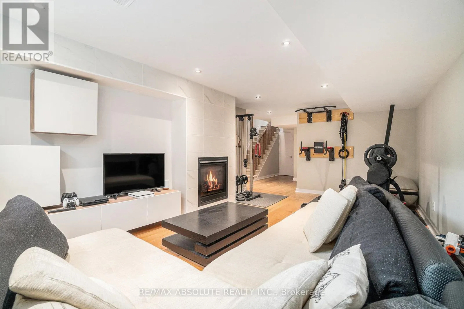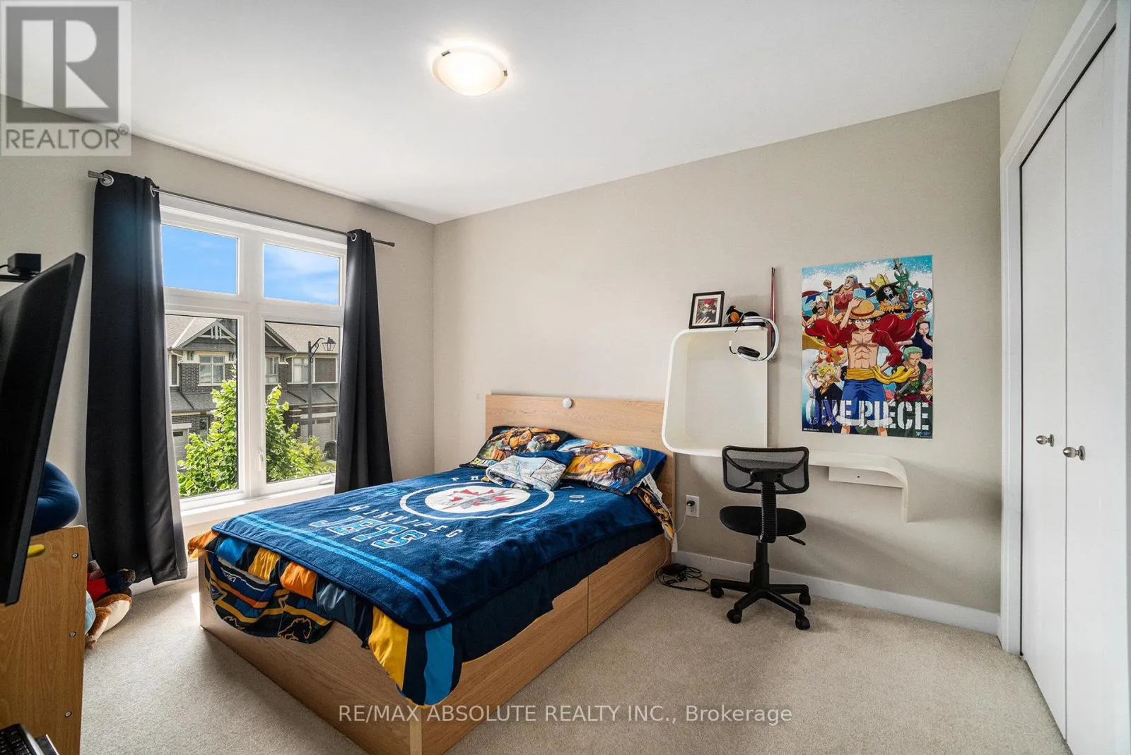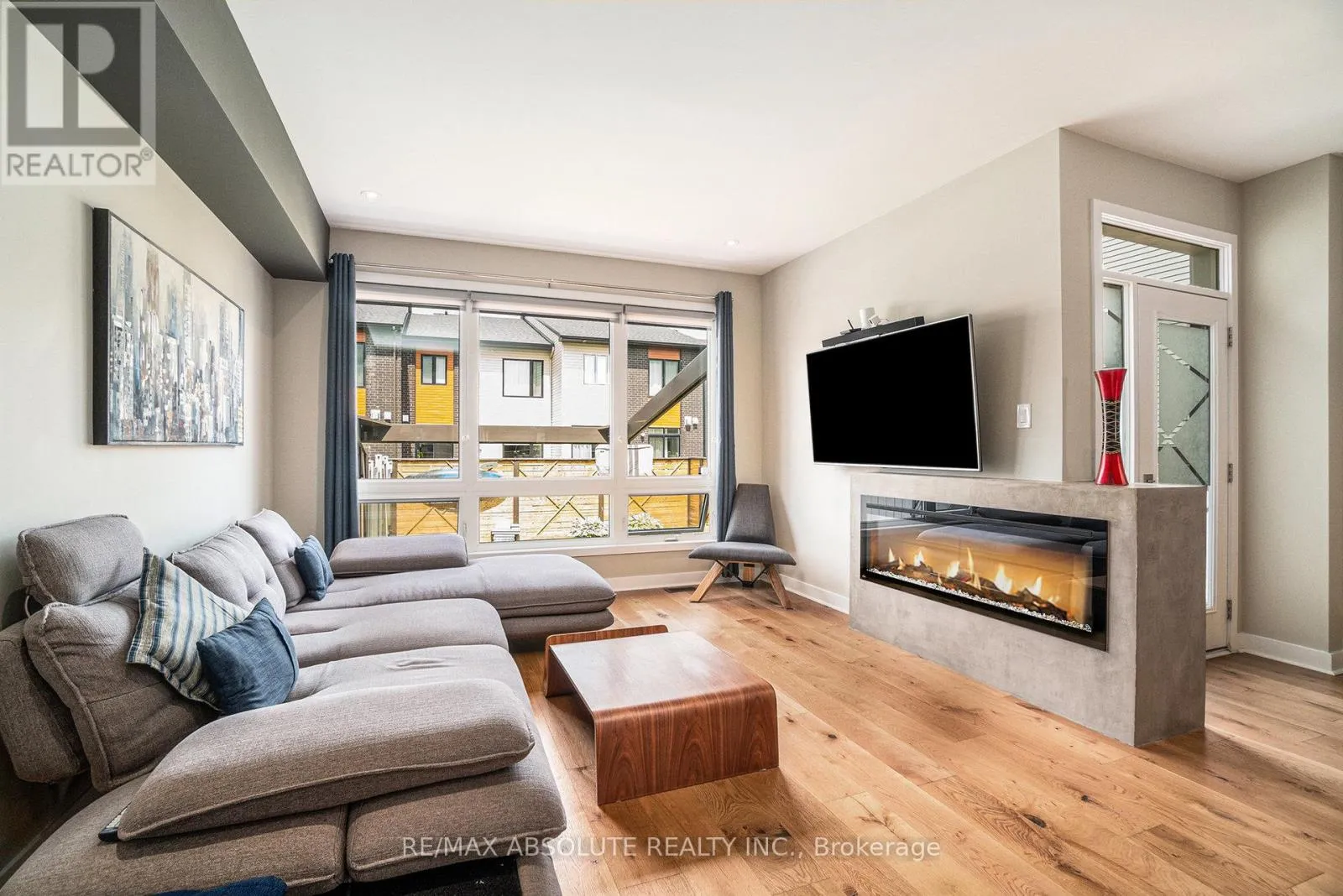 Cross Streets: Abbott Street. ** Directions: Go South on Terry Fox from 417. Turn right onto Abbott Street through roundabout, then right onto Triangle Street. Welcome to this stunning corner-unit townhome in the heart of Stittsville. From the moment you enter this bright, sun-filled home, you'll notice the upscale finishes, soaring ceilings, and thoughtfully designed layout that blends style with everyday comfort.The main level features a tiled foyer and convenient powder room, leading into an open-concept living space highlighted by rich hardwood flooring throughout two levels. The dramatic living room boasts floor-to-ceiling windows and an impressive open-to-above design that fills the home with natural light, while a cozy electric fireplace creates a warm and inviting atmosphere.The chef-inspired kitchen is perfect for entertaining, offering quartz countertops, stainless steel appliances, a gas stove, pot lighting, a spacious island with breakfast bar seating, and generous pantry cabinetry. The adjacent dining area opens through sliding doors to a fully fenced private backyard with a gas BBQ hookup-ideal for outdoor dining and relaxing.Upstairs, the spacious primary suite features a large walk-in closet and a spa-like ensuite complete with an oversized glass and tile shower. Two additional bedrooms, a modern 4-piece bathroom, and convenient second-floor laundry provide both functionality and comfort for family living.The finished basement adds valuable living space with a versatile recreation room perfect for a home gym, media room, or play area, along with ample storage.Additional highlights include Smart Home features such as a Nest thermostat. As a corner unit, the property offers extra windows for abundant natural light, a private driveway, enhanced privacy, and a larger outdoor area.Ideally located just steps from trails, parks, schools, shopping, and dining, this home offers the perfect balance of tranquility and convenience in one of Stittsville's most desirable communities. (id:27476)