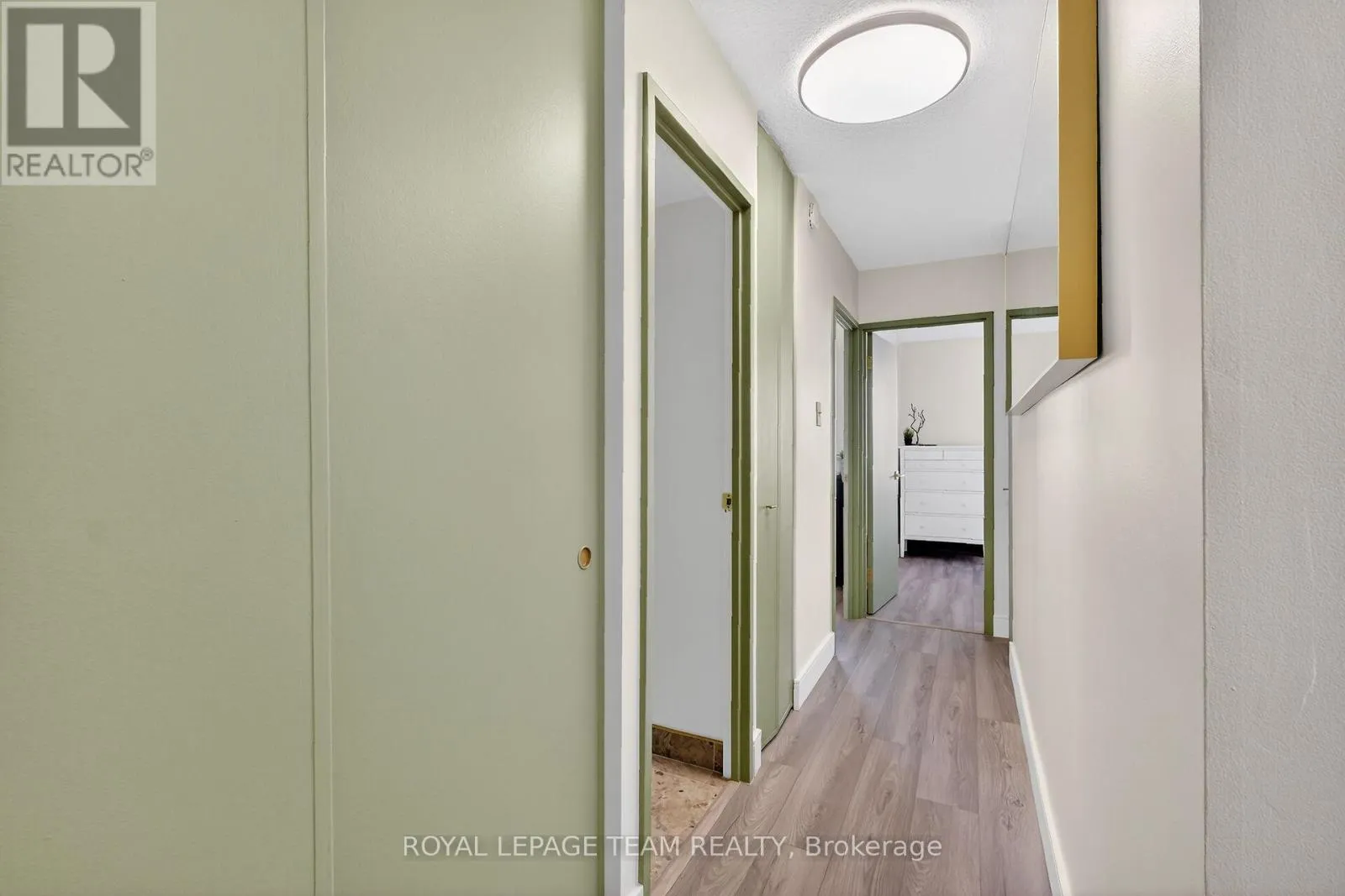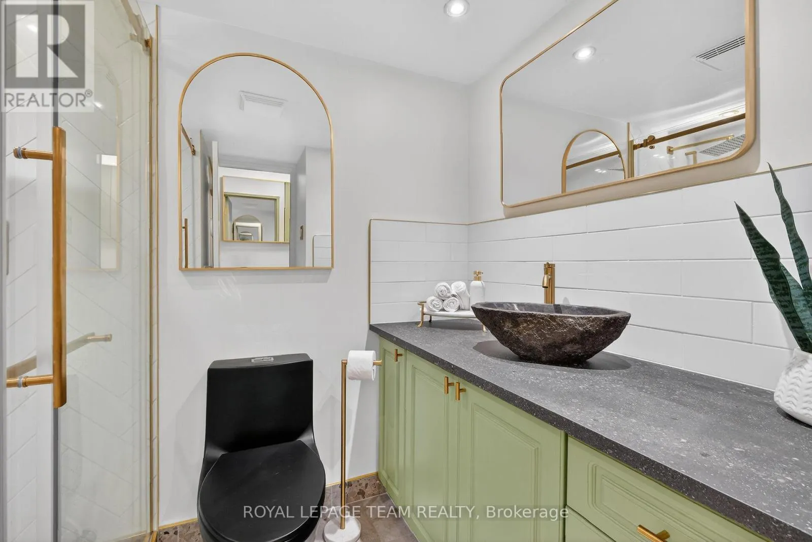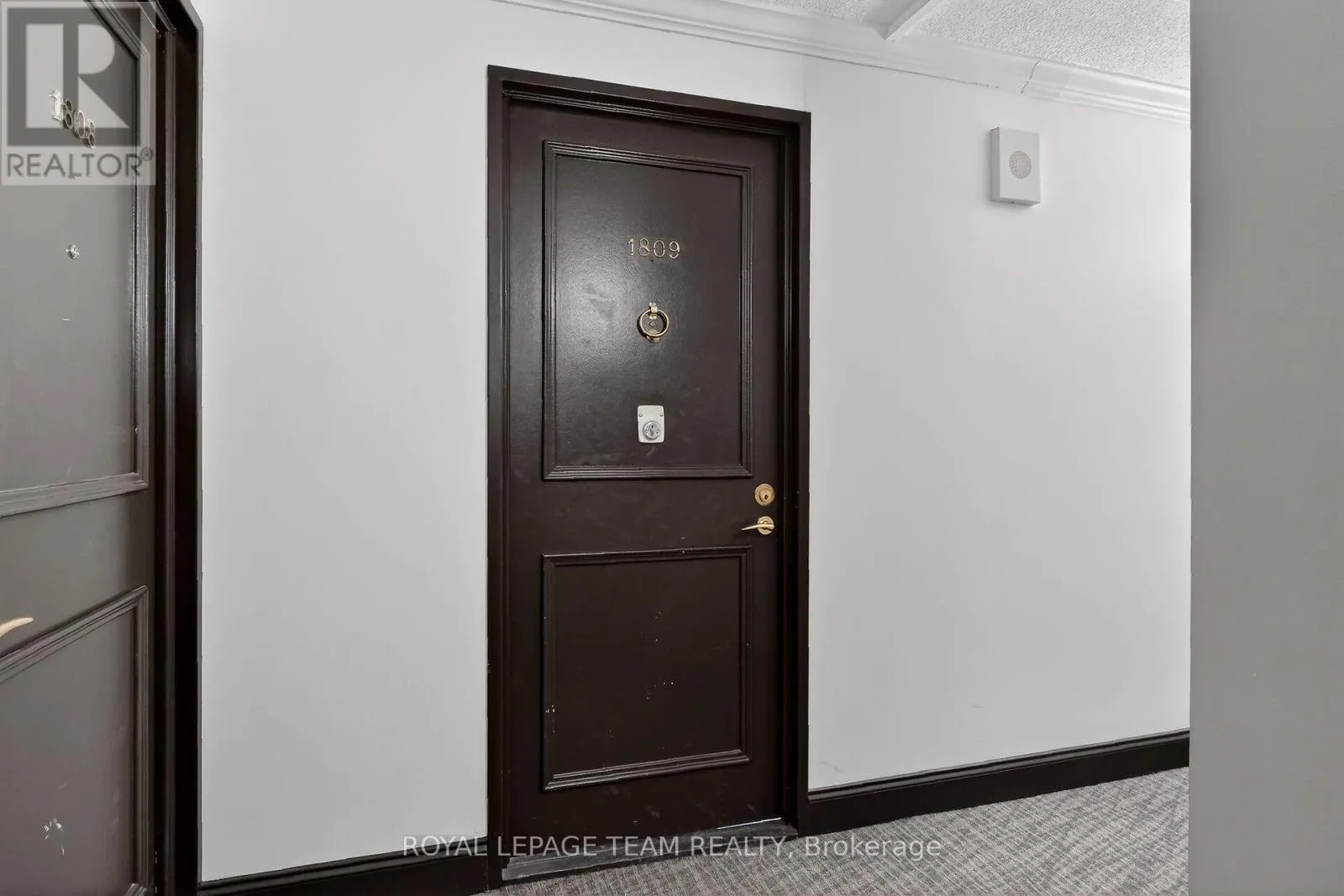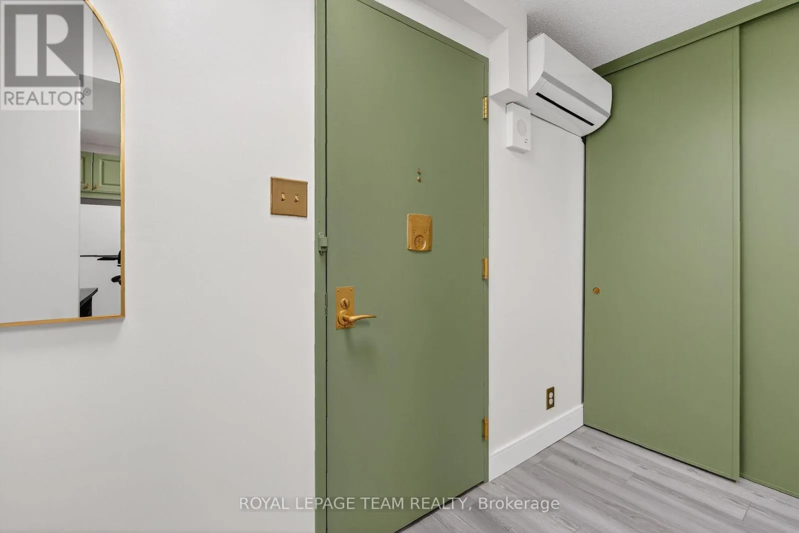 Cross Streets: Montreal Road. ** Directions: St. Laurent North past Montreal Road, up ahead on your RHS. Perched high on the 18th floor, this beautifully updated 2 Bedroom Condo offers sweeping panoramic views and stylish, move-in-ready living in the core of downtown Ottawa. With expansive windows and a private balcony, enjoy stunning cityscapes stretching across the skyline and treetops; an ever-changing view from sunrise to sunset. Step inside to a bright, open-concept Living and Dining space featuring wide plank flooring, modern lighting, and designer accents that create a warm yet contemporary feel. The Living Room flows seamlessly to the balcony, making it the perfect place to relax, entertain, or simply take in the impressive urban views.The updated Kitchen is both functional and stylish, featuring distinctive sage-green cabinetry, modern hardware, ample counter space, subway tile backsplash, and a full appliance package. Thoughtfully designed, it offers excellent storage and efficient workspace for everyday living.The spacious Primary Bedroom features large windows framing the city skyline, while the second Bedroom provides flexibility for guests, a home office, or growing families. The fully renovated Bathroom showcases elegant finishes including a glass shower, modern tilework, and sleek gold accents for a spa-inspired feel. Additional highlights include updated flooring throughout, contemporary fixtures, generous storage, and a well-maintained building with excellent amenities. This Manor Park condo is ideally located close to downtown offices, parks, shopping, restaurants, transit, and the Rideau River pathways, this condo offers the perfect blend of urban convenience and elevated living. A fantastic opportunity for professionals, first-time buyers, or investors looking to own a stylish high-rise condo with unbeatable views. 18th-floor living, spectacular views, and modern updates; this is downtown condo living at its best. (id:27476)