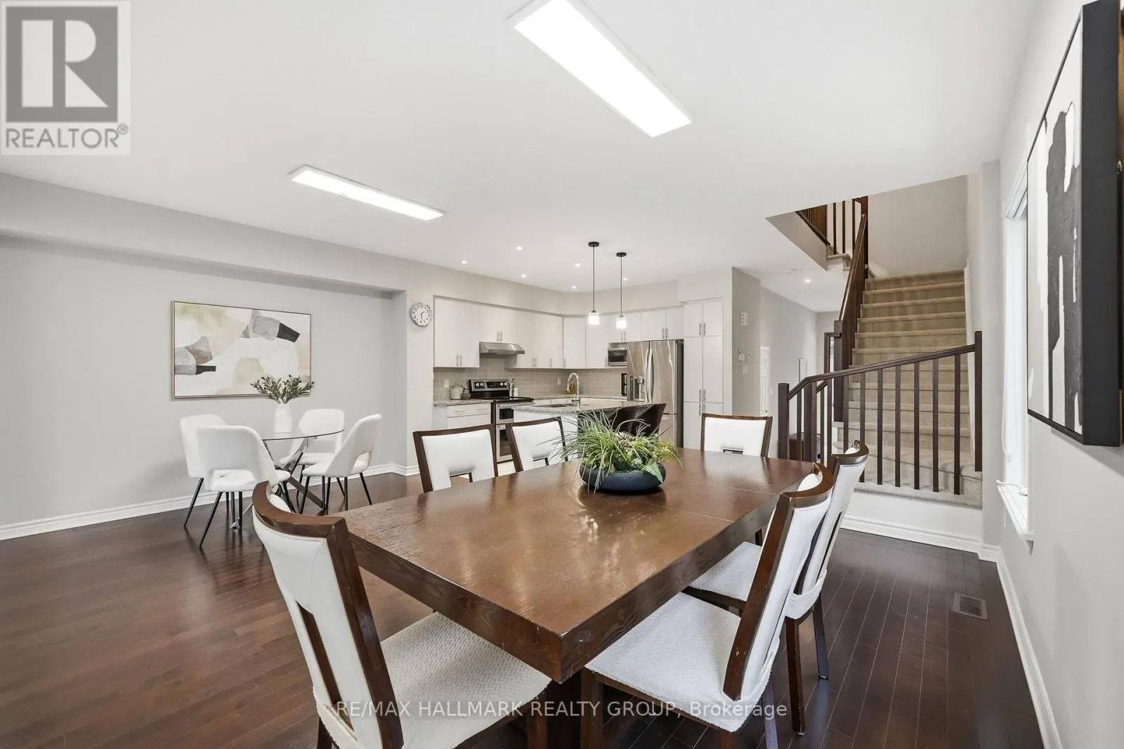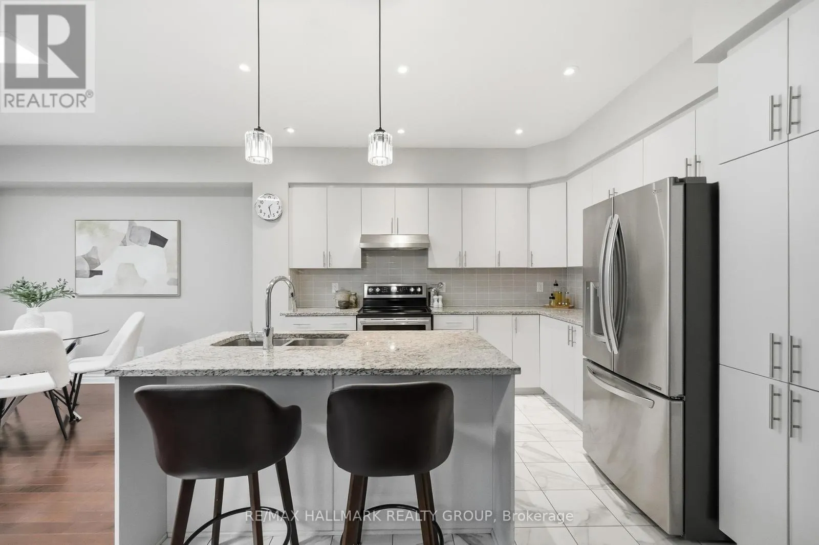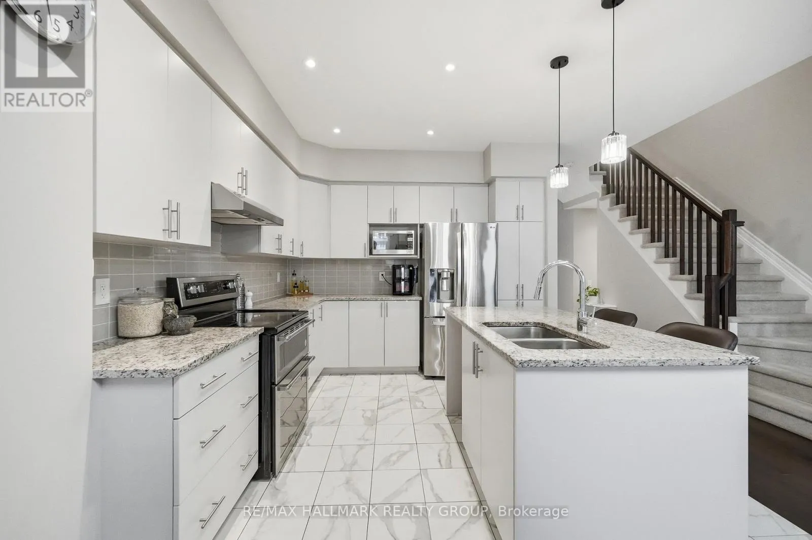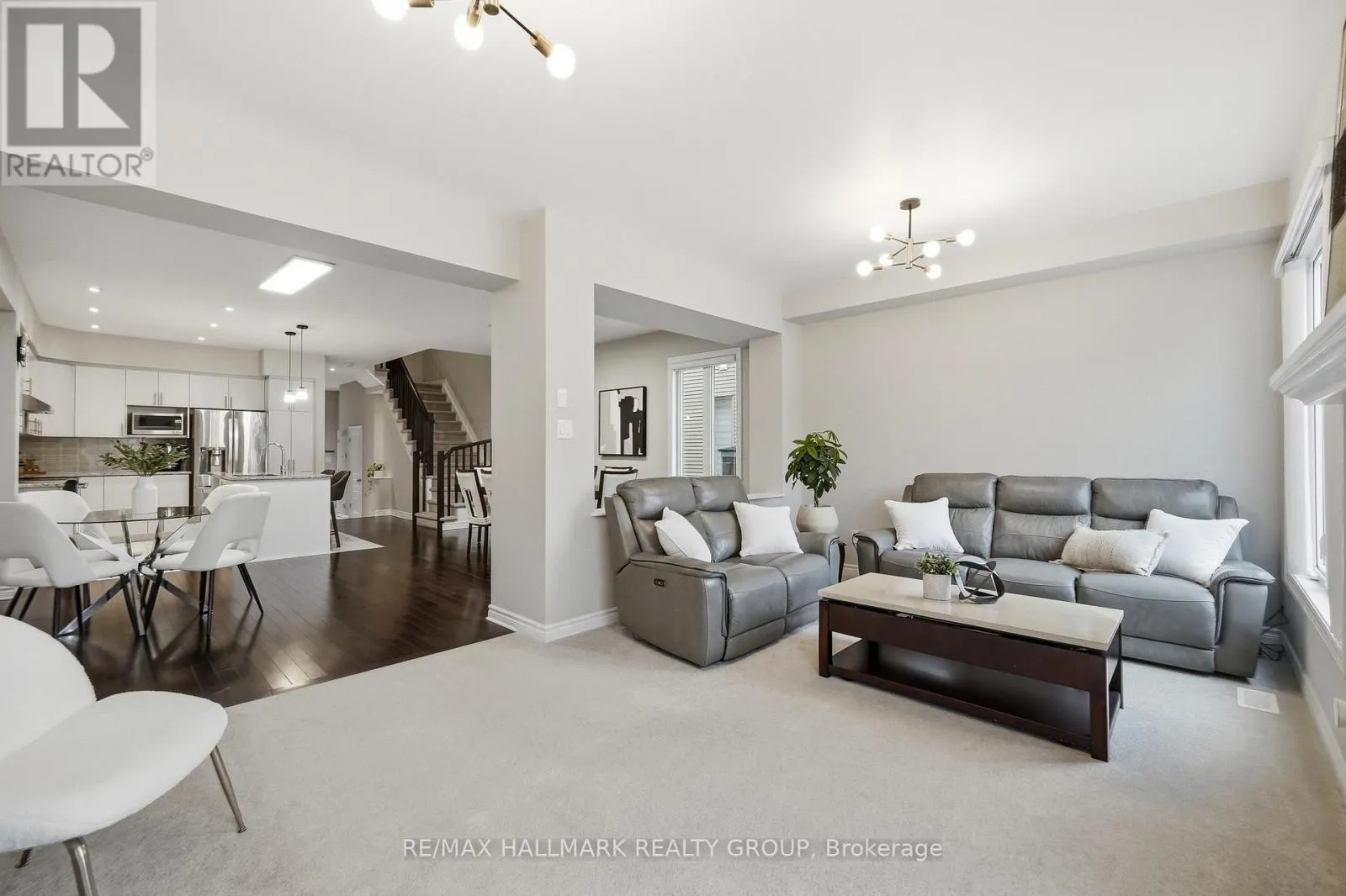 Cross Streets: Brian Coburn Boulevard and Fern Casey Street. ** Directions: Brian Coburn Boulevard, South on Fern Casey Street, West on Axis Way, North on Compass Street, West on Rainrock Crescent, South on Wild Calla Way OR Renaud Road, North on Compass Street, West on Rainrock Crescent, North on Wild Calla Way. Welcome to 137 Wild Calla Way, a beautifully upgraded Richcraft Fairhaven End Unit townhome offering approx 2,539 sq ft of total living space, located in the desirable Bradley Estates community in Orleans. A rare 4 bedroom layout with the builder loft professionally converted to a 4th bedroom & 3 bathrooms, this home provides both space and functionality for modern living. Main level features a bright open concept design with hardwood flooring throughout the main hallway & dining areas. The inviting living room is finished with cozy carpeting, a gas fireplace & access to the backyard. The modern white kitchen overlooks the living space and includes stainless steel appliances, double oven, ice-maker fridge, centre island with double sink & breakfast bar, and plenty of cabinetry for storage. Upstairs you will find 4 spacious carpeted bedrooms including the primary suite, along with the convenience of second-floor laundry. All 3 bathrooms feature granite countertops, with upgraded power showers in the primary ensuite & second bathroom, and the main bath includes tile extended to the ceiling. Additional upgrades include oak stairs, modern light fixtures in the living room, kitchen island, dining room and primary bedroom, flow-through humidifier, central air conditioning, updated kitchen faucet, and plumbing improvements including new sink stoppers in all bathrooms & the powder room. The home has also been freshly painted throughout with updated baseboards. The finished lower level recreation room provides additional living space, while a large unfinished storage/utility area offers excellent storage potential. Outside, enjoy extended driveway parking with interlock for two vehicles, a single garage with inside entry featuring built-in tire rack and custom storage, plus a convenient side storage shed. Located close to parks, schools, transit, and everyday amenities, this move-in ready end unit offers comfort, upgrades, and an excellent family-friendly location! (id:27476)
