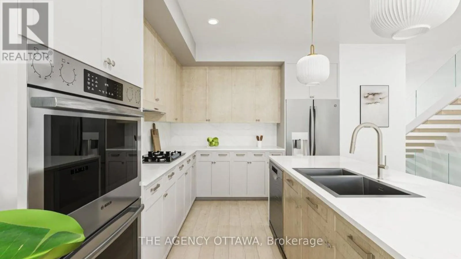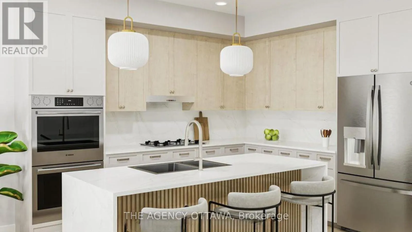 Cross Streets: Riverside Drive & Walkley Road. ** Directions: Hunt Club Road to Riverside Drive North past Walkley Road. Experience riverside living at The Docks, a thoughtfully planned community designed for those seeking comfort, style, and connection to nature within the heart of the city. This well-designed 3-bedroom townhome offers 1,664 sq. ft. of modern living space with a private backyard, single-car garage, and additional laneway parking.The main floor features an open-concept layout with hardwood flooring throughout and a contemporary kitchen complete with a 60" x 36" island, Silestone countertops, and modern cabinetry. Upstairs, all three bedrooms feature vaulted ceilings. The primary suite includes a private balcony and ensuite bathroom, while second-floor laundry adds everyday convenience.Steps to Mooney's Bay Beach, Carleton University, Hogs Back Park, and transit routes to downtown Ottawa. (id:27476)