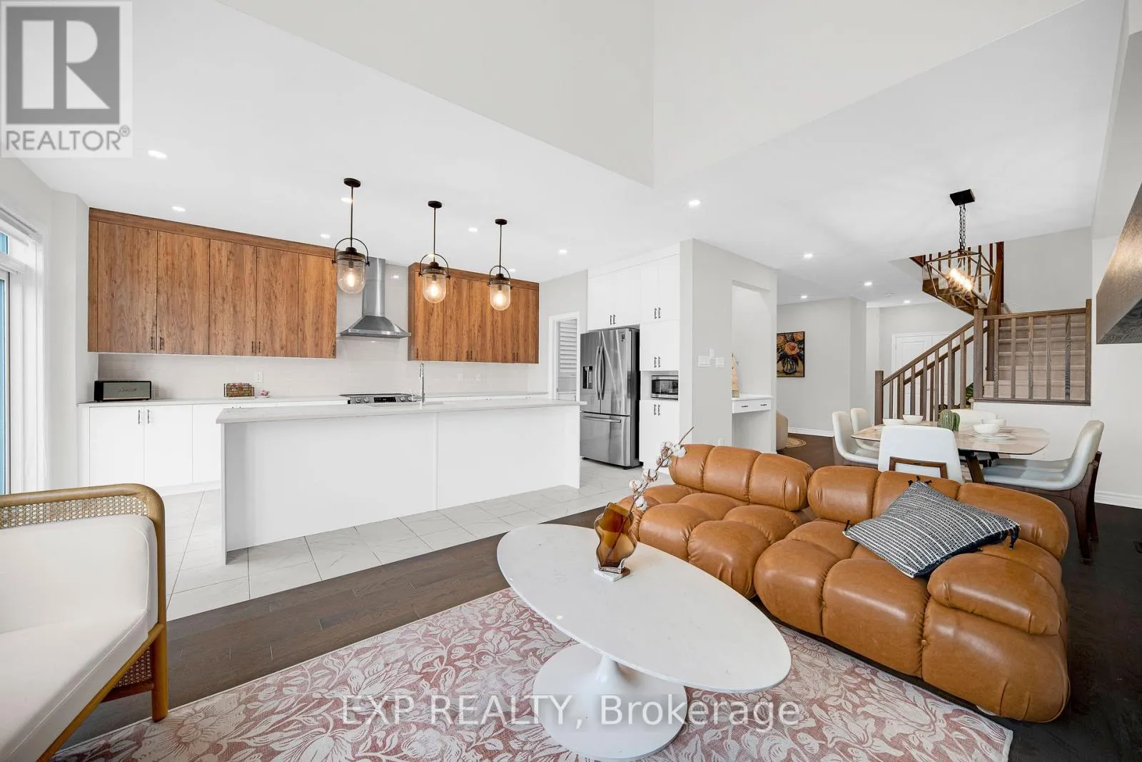 Cross Streets: Canvasback Rdg and Whooping Crane Rdg. ** Directions: Earl armstrong turns to Spratt, turns to Borbridge then Canvasback then Whooping Crane. Welcome to this STUNNING SOUTH-FACING SINGLE DETACHED HOME with 4 BED/4BATH/DOUBLE GARAGE, and a breathtaking OPEN-TO-ABOVE DESIGN in the heart of RIVERSIDE SOUTH. From the moment you step inside, the home feels BRIGHT, AIRY, and INVITING. The main floor features a thoughtfully designed OPEN-CONCEPT LAYOUT with a versatile FLEX ROOM at the front, perfect as a HOME OFFICE or KIDS' PLAY AREA. The living and dining area is truly the heart of the home, highlighted by a DRAMATIC 18-FOOT OPEN-TO-ABOVE LIVING ROOM with FLOOR-TO-CEILING WINDOWS that flood the space with NATURAL LIGHT all day long thanks to the desirable SOUTH-FACING EXPOSURE. Just beside it, the GRAND CHEF'S KITCHEN is both beautiful and functional, showcasing an OVERSIZED CENTER ISLAND, STYLISH TWO-TONE CABINETRY, and a cleverly designed PANTRY WITH A SECOND SINK AND WORKSTATION, perfect for keeping prep and cleanup tucked away while offering plenty of EXTRA STORAGE. Upstairs you'll find FOUR SPACIOUS BEDROOMS including a serene PRIMARY SUITE with COFFERED CEILINGS and CUSTOM BEDSIDE LAMPS, along with a LUXURIOUS FIVE-PIECE ENSUITE featuring QUARTZ COUNTERS, a SEPARATE SHOWER, and a SOAKER TUB. Three additional WELL-SIZED BEDROOMS, a FULL BATH, and CONVENIENT SECOND-FLOOR LAUNDRY complete the level. The FULLY FINISHED BASEMENT adds fantastic BONUS SPACE for ENTERTAINING, MOVIE NIGHTS, or simply relaxing with family. Located CLOSE TO THE LRT, RIDEAU RIVER, FUTURE TOWN CENTRE, PARKS, and SCHOOLS, with an EASY COMMUTE TO DOWNTOWN, this is the kind of home that instantly feels special. BEAUTIFUL, SUN-FILLED, AND INCREDIBLY INVITING, it truly MUST BE SEEN TO BE APPRECIATED. (id:27476)