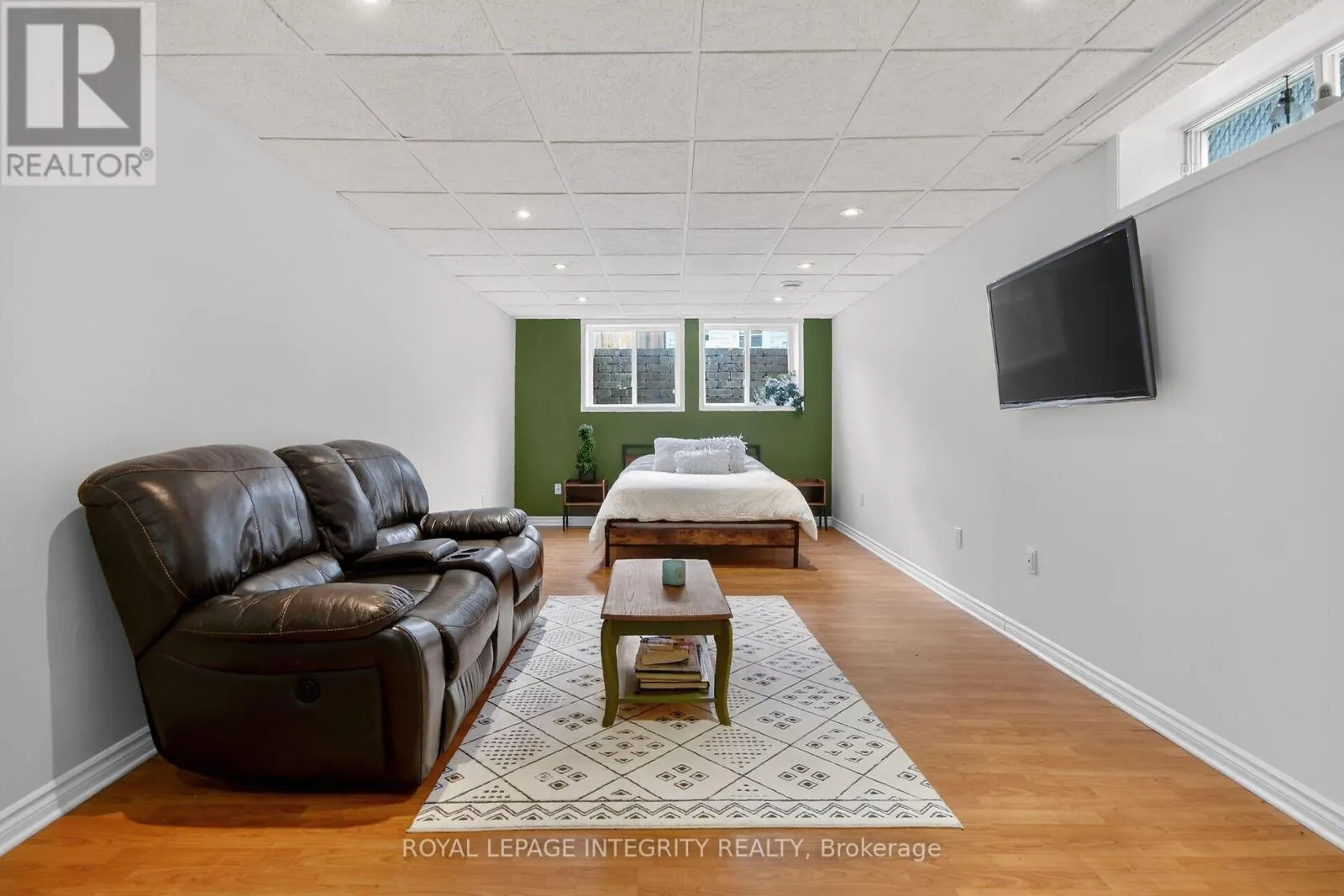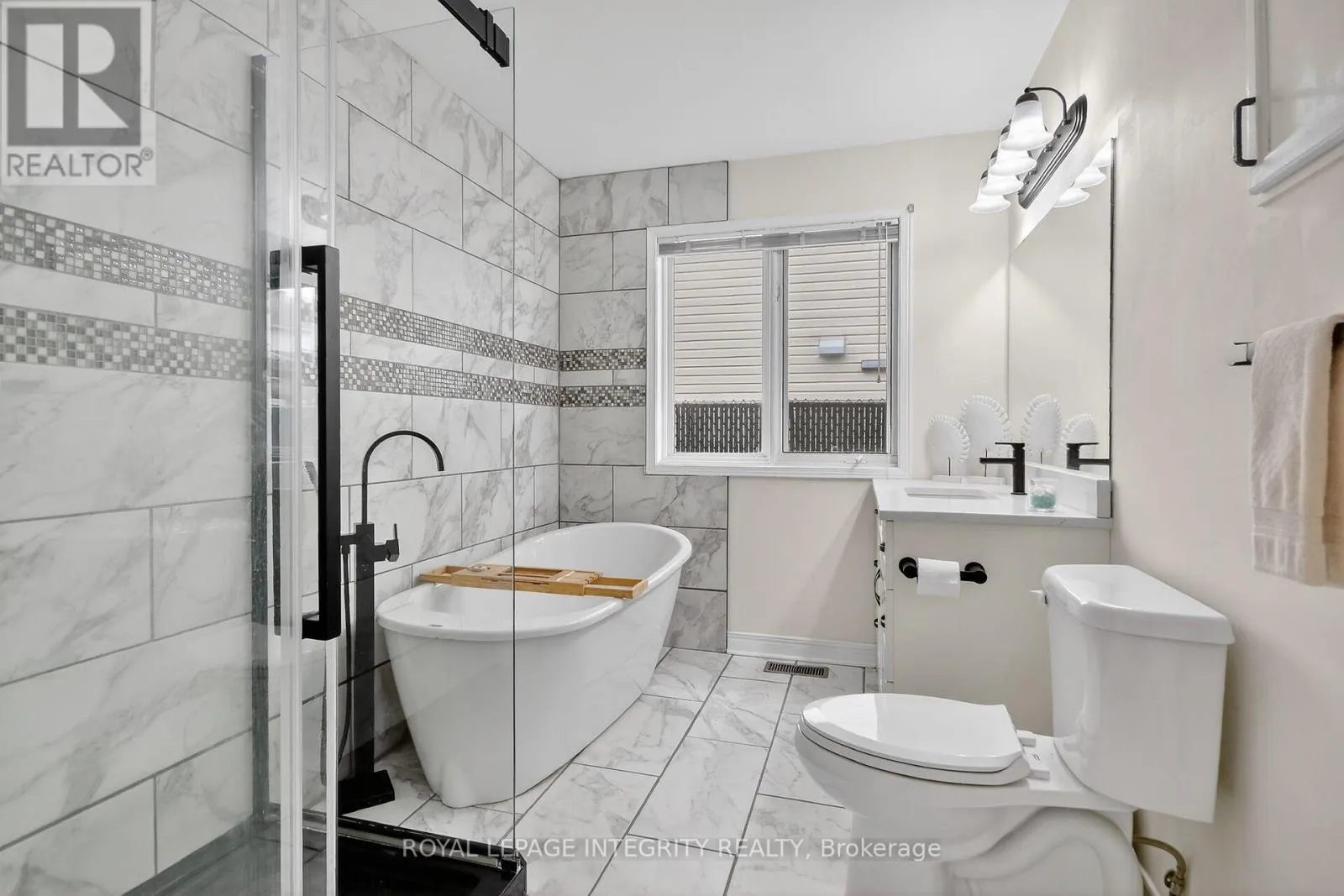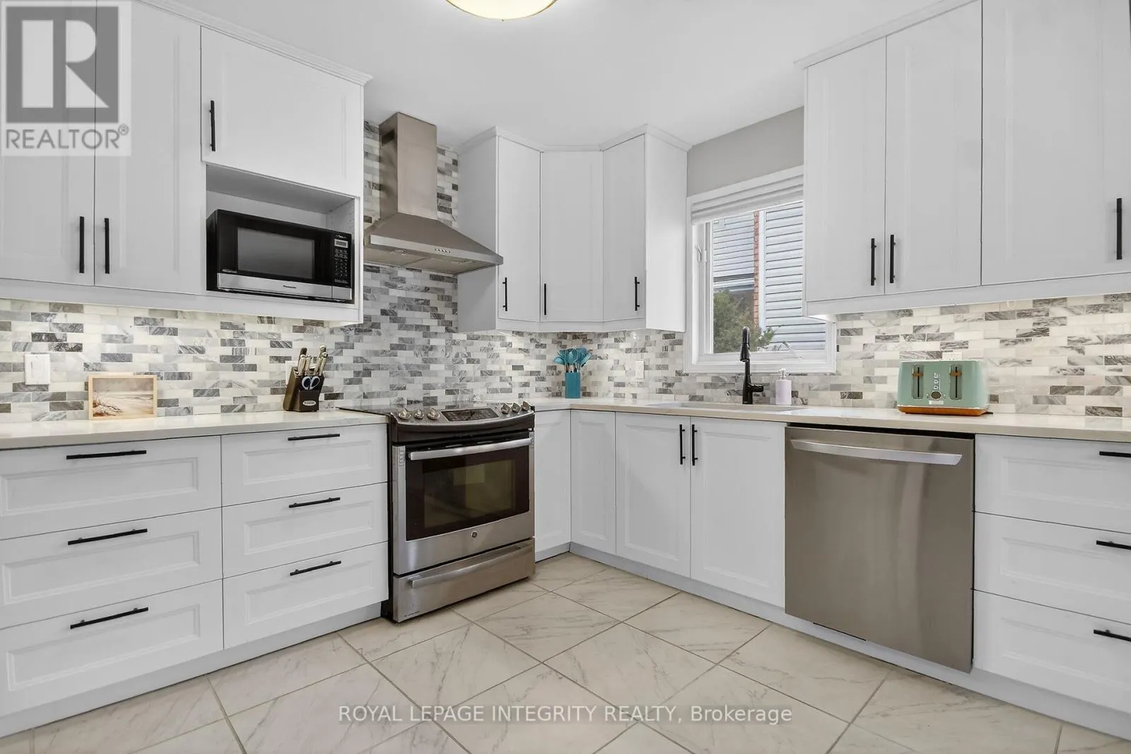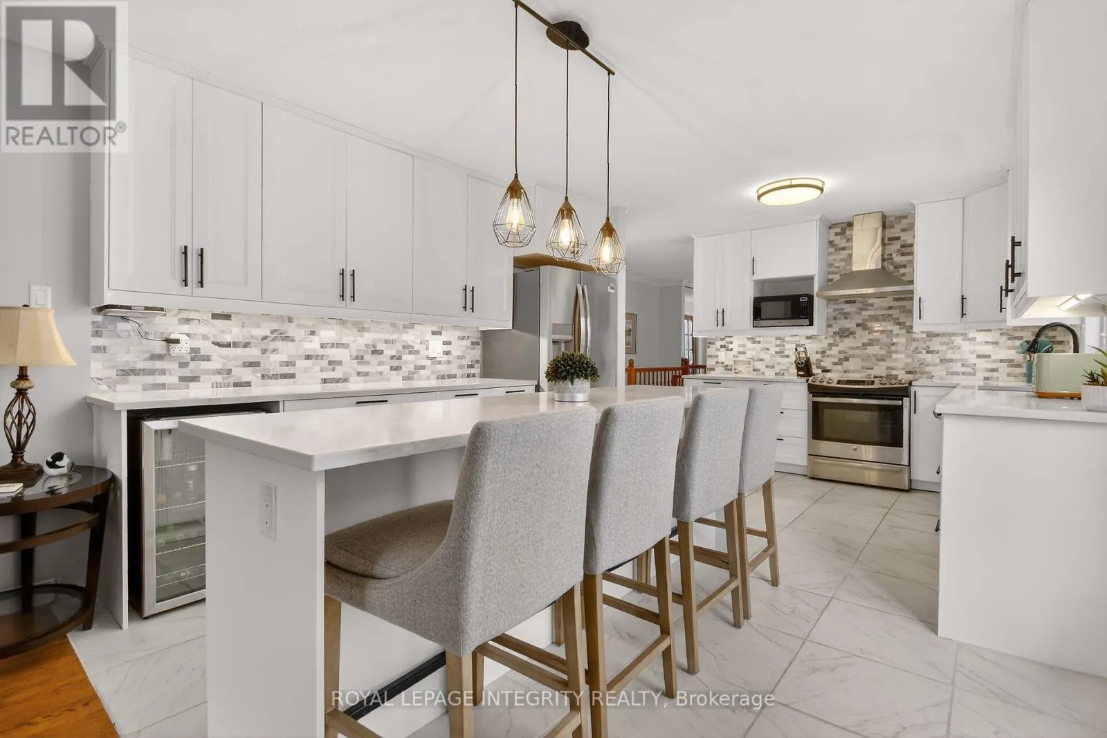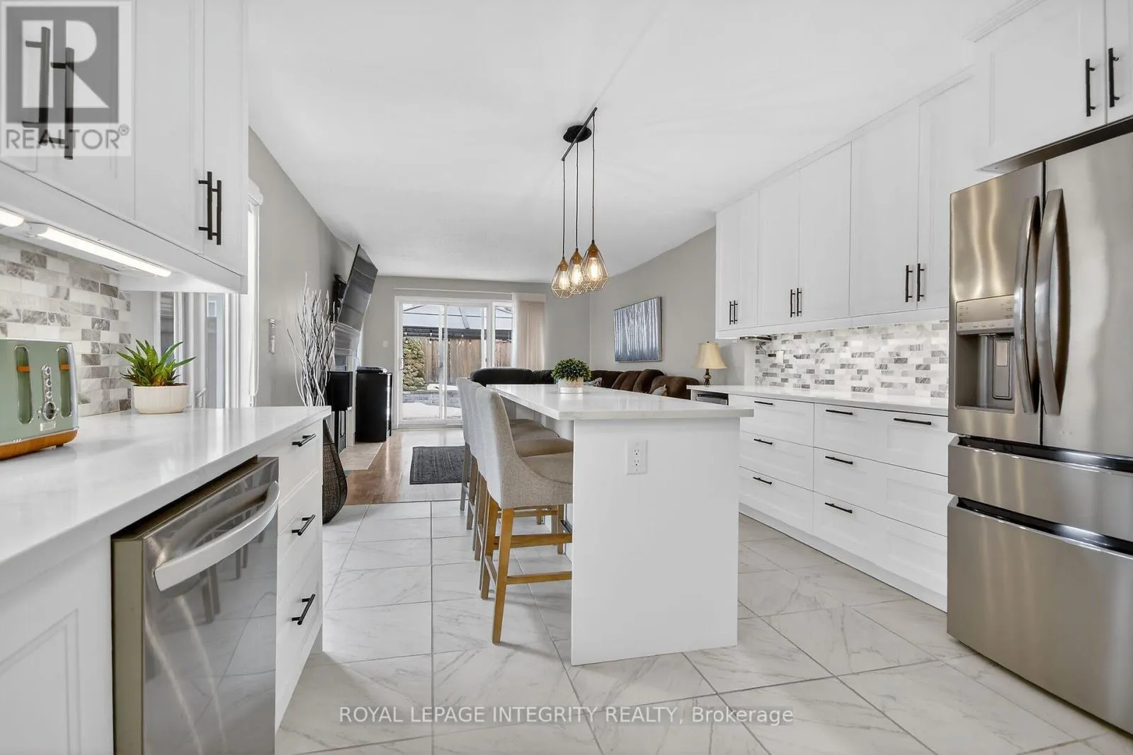 Cross Streets: Woodroffe and Queensbury. ** Directions: Woodroffe south, west on Queensbury, right on Doulton, left on Longshire. Look no further-this home has it all. It is a rare, well-maintained single bungalow located on a beautiful, established street in the heart of Barrhaven. The property features excellent curb appeal with a brick front, interlock details, and a widened driveway that accommodates two cars. interior is deceptively large and very clean, featuring:- Main Floor: A spacious entryway leads to hardwood floors, a bright living room with double French doors, and a separate dining room.- Kitchen: Recently renovated with quartz countertops, a double sink, stainless steel appliances, ample cabinetry, and a large island for storage and casual dining.- Living Spaces: A cozy family room with a fireplace.- Bedrooms & Baths: The primary suite includes a large, newly renovated bathroom with a standalone tub and modern finishes. The second bedroom and second bathroom (including laundry) have also been recently updated.- Basement: A spacious finished area with large windows, currently used as a bedroom and family room combo. It includes an oversized walk-in closet with built-ins and a recently installed bathroom. There is also a room with kitchen cupboards that could easily be converted into a full secondary suite (no separate entry).- Storage: The basement offers a huge storage area, a separate utility room, and a workshop. The backyard features a beautiful patio with a gazebo and a storage shed. This is a perfect home for either empty nesters or a young family. Please let me know if you would like to schedule a viewing. (id:27476)