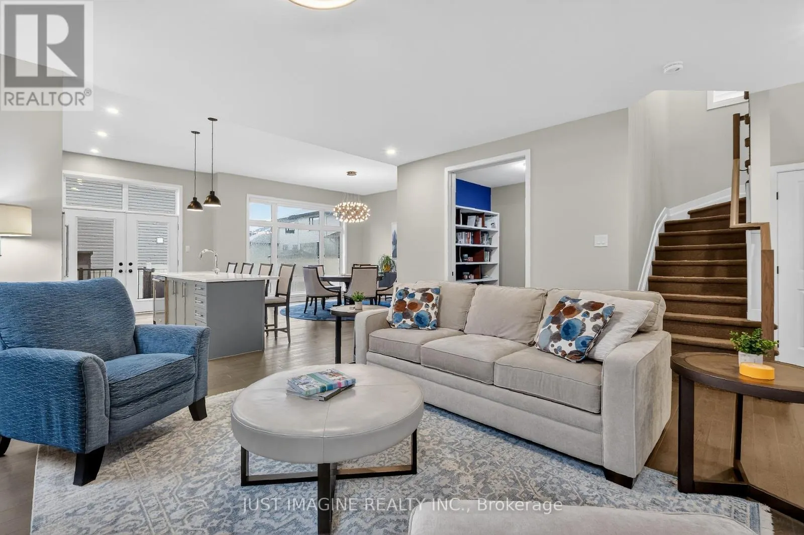 Cross Streets: Triangle and Honeylocust. ** Directions: Terry Fox or Robert Grant to Abbott St, North on Triangle St. OPEN HOUSE Saturday 2:00 pm - 4:00 pm. Situated between the vibrant communities of Stittsville & Kanata, Bradley Commons offers the perfect balance of tranquility and convenience. This immaculate Urbandale Westport - Pacific Series home sits on a deep 100' lot on a quiet street overlooking Bradley-Craig Park. Thoughtfully upgraded throughout, the home features a well-designed open layout with the rare addition of two home offices; one on the main floor, another in the lower level. The welcoming entrance includes a mudroom and powder room, while the spacious living room is highlighted by a gas fireplace flanked by floor-to-ceiling windows. Bright and airy, the home boasts soaring 10 ft ceilings, stylish lighting, and gleaming Oak hardwood flooring throughout the mail level. The modern kitchen features a generous island, quartz countertops & quality appliances. Upstairs, the spacious primary suite offers a walk-in closet, Ensuite bath, and beautiful western views over the park. Two additional bedrooms, one with a walk-in closet, a full 4 pc. bath, and a convenient laundry room complete the upper level. The builder-finished basement features oversized windows, a large family room, home office, exercise area, 3 pc bath, with the option to convert the office into a 4th bedroom. An unfinished section provides abundant storage space. Enjoy nearly maintenance-free landscaping! Interlock patio stone extends along both sides of the double driveway, providing easy access to the fully fenced backyard & deck with Gas BBQ Hook-up, the patio area beautifully framed by decorative stone. Residents enjoy access to excellent schools, convenient shopping & entertainment. Outdoor enthusiasts will appreciate walking along the scenic Trans Canada or Terry Fox Pond Trails, while nearby amenities include Canadian Tire Centre, the CRC, and Walter Baker Sports Park. An ideal setting for families seeking an active lifestyle in a welcoming, well-supported community. See 3D Multimedia Tour! (id:27476)