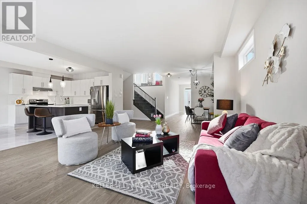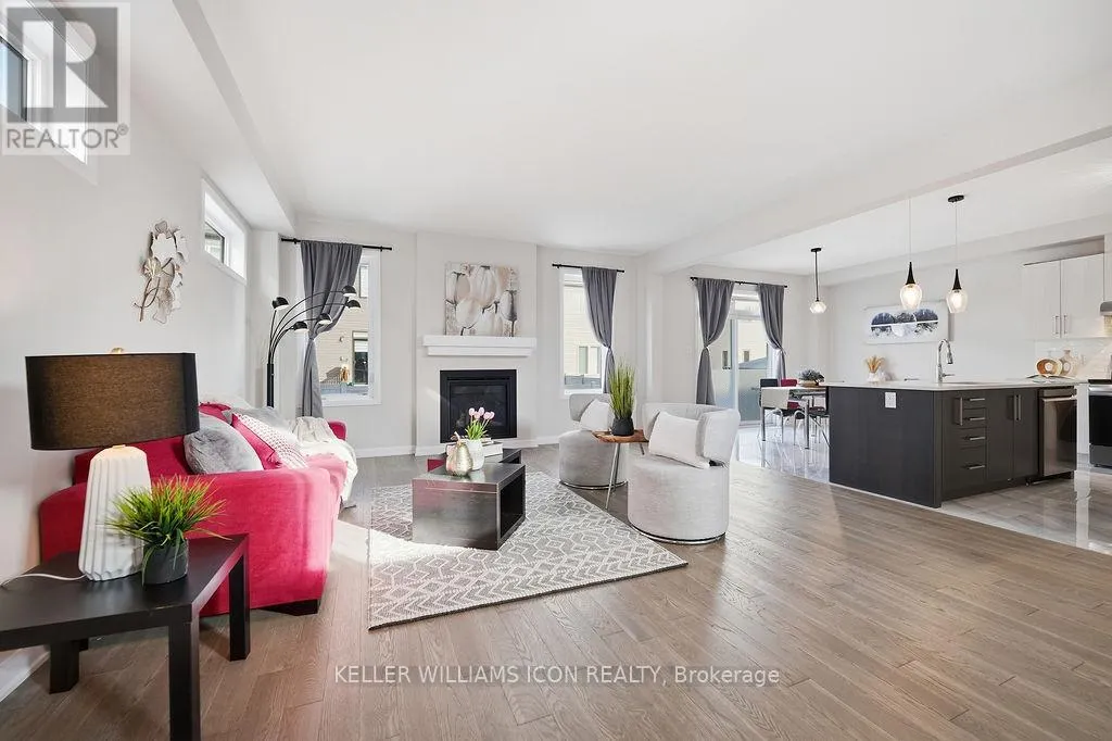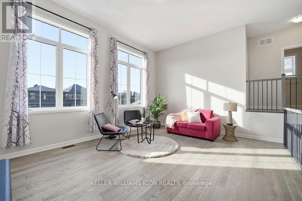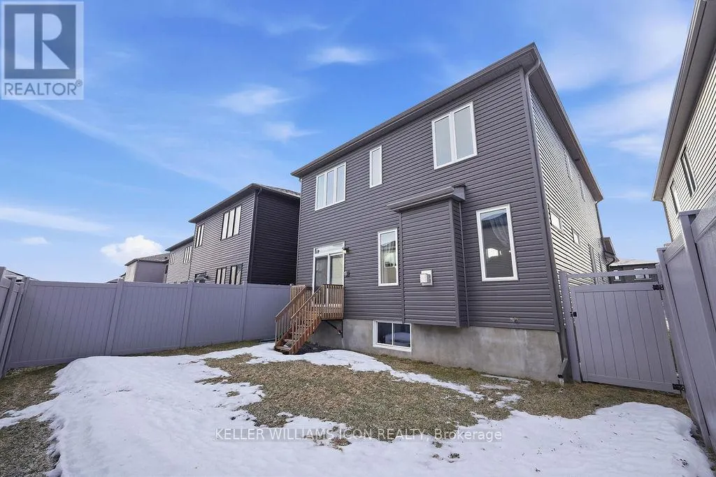 Cross Streets: Cappamore Drive and Robin Easey Ave. ** Directions: Located on the west/north side of Cappamore Drive near Robin Easey Ave. This 3-bedroom single-family home in Quinn's Pointe features 9-ft ceilings on both the main and second floors and a striking 15-ft ceiling in the loft-style family room, creating a bright and airy living space with impressive architectural appeal. The home offers a functional layout with spacious living and dining areas and a well-designed kitchen with a large island and breakfast bar, ideal for everyday living and entertaining. The sun-filled loft overlooking the main floor provides a perfect space for a lounge or media area. Upstairs includes three well-sized bedrooms, including a primary bedroom with walk-in closet and ensuite. The fully fenced backyard is great for outdoor enjoyment, and the unfinished basement offers ample storage and future potential. Conveniently located near Strandherd Dr and Greenbank Rd, close to parks, trails, rivers, the Minto Recreation Complex, and excellent schools. (id:27476)
