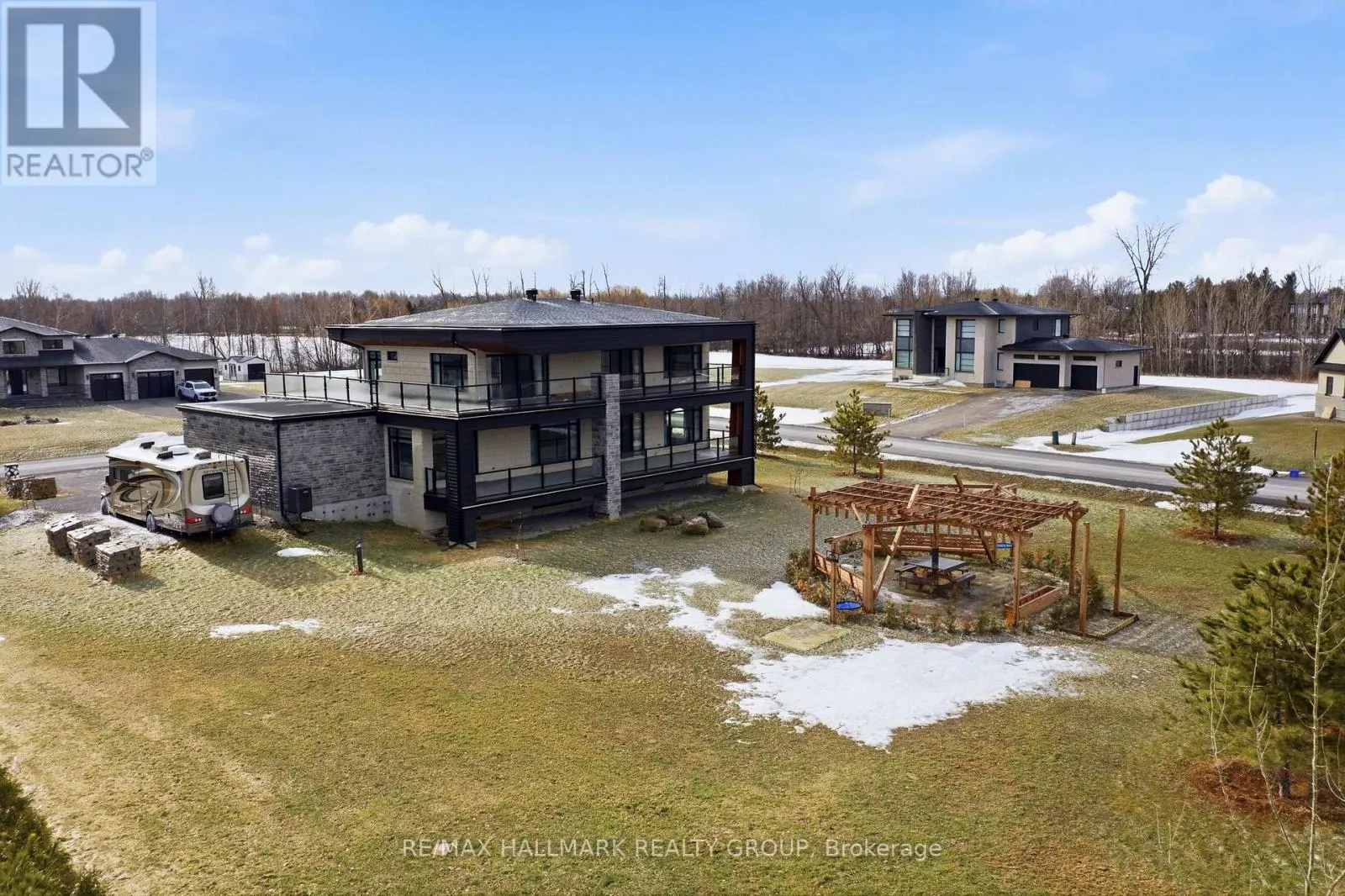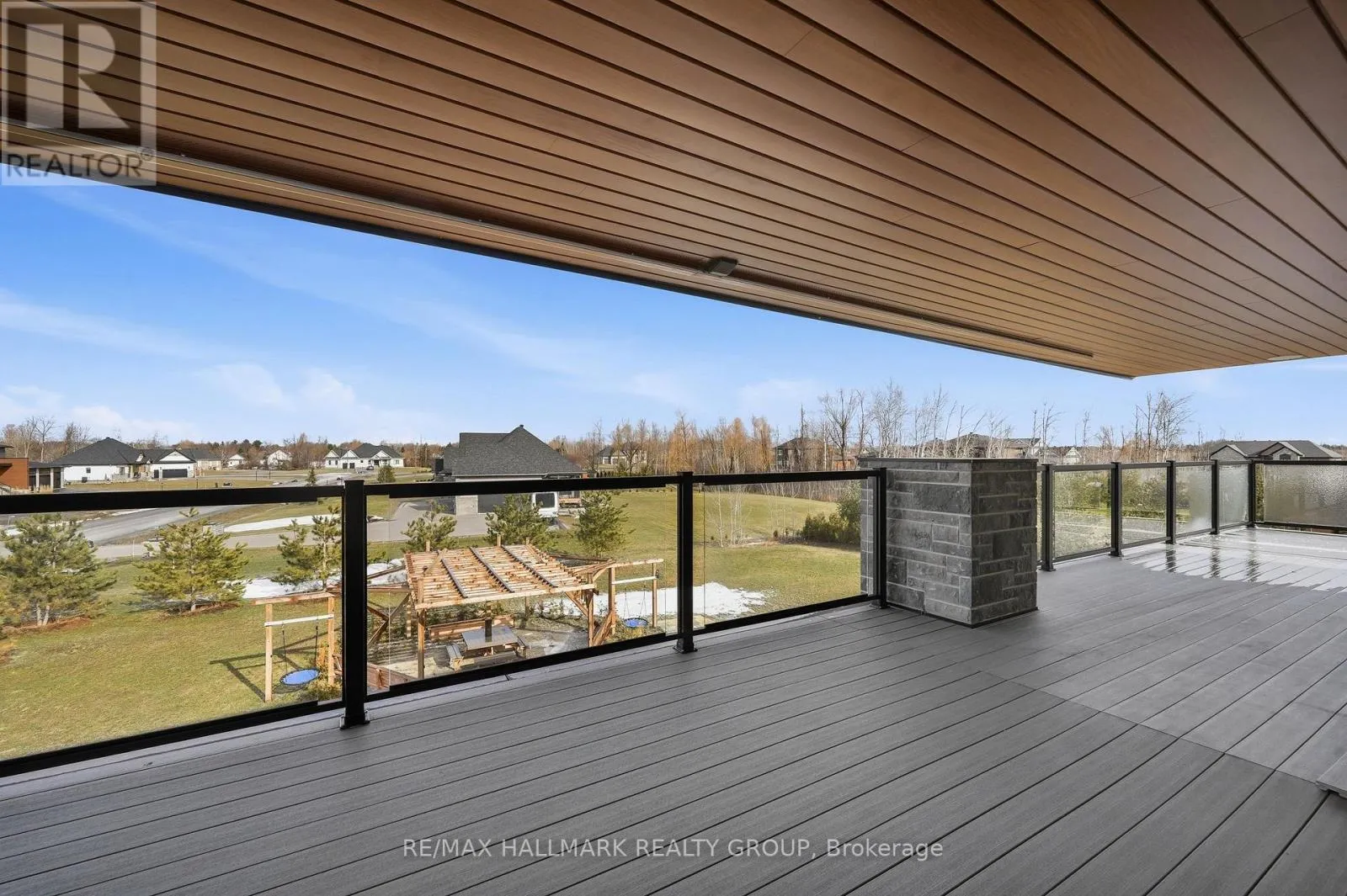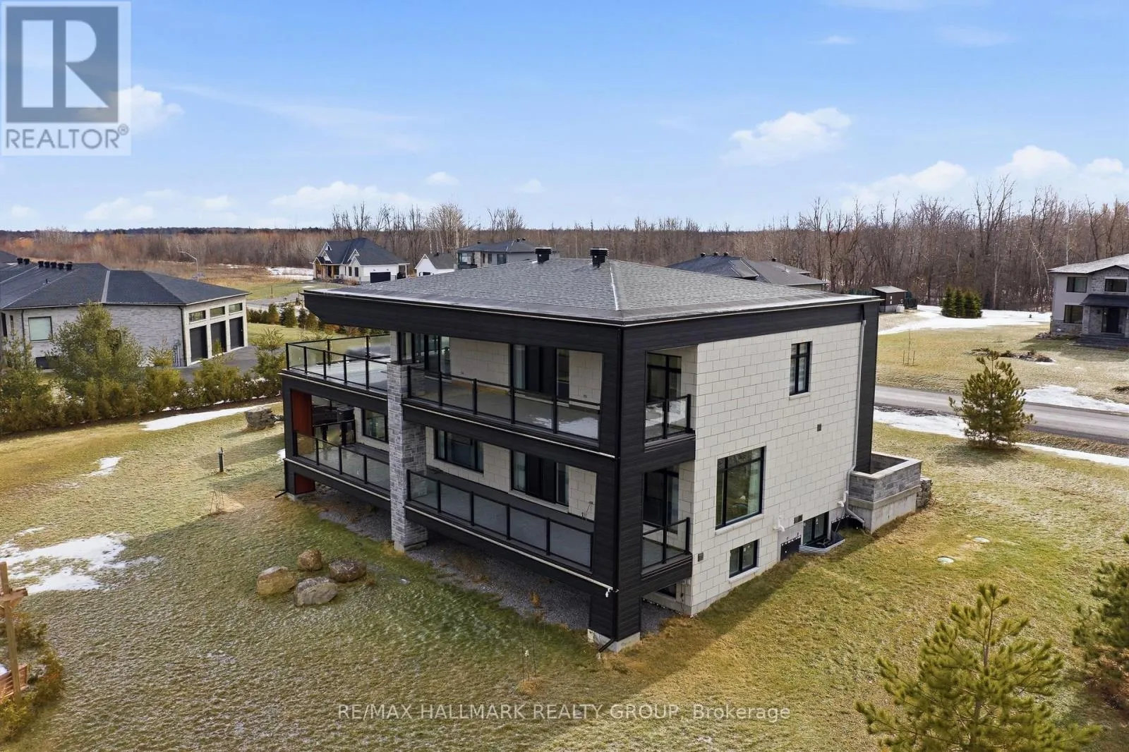 Cross Streets: Stagecoach Road and Lakeshore Drive. ** Directions: Stagecoach Road, East on Lakeshore Drive, East on Cadieux Way, South on Summerview Terrace. Welcome to this exceptional custom-built 2 storey home offering modern luxury and expansive indoor-outdoor living, set on a 0.94-acre property in the sought-after community of Greely. With 2,970 sq ft above grade, this home blends architectural elegance with everyday functionality. The striking exterior features a sophisticated combination of stone and contemporary finishes. A welcoming front porch leads to the main entrance, while the property offers a 3 car garage and an expansive driveway accommodating up to 12 vehicles, with RV parking available. Inside, the home showcases bright, open living spaces ideal for both comfort & entertaining. The gourmet kitchen features sleek modern cabinetry, built-in stainless steel appliances, and an oversized waterfall stone island. Large windows fill the space with natural light, while direct access to the main floor balcony creates seamless indoor-outdoor living. The main level also includes a bedroom and separate 3pc bathroom with walk-in shower, offering flexibility for guests or multi-generational living. Upstairs are 3 spacious bedrooms, each with its own walk-in closet and private ensuite, plus convenient second-floor laundry. The expansive wrap-around second-floor terrace is a standout feature. Combined with the main balcony, the outdoor spaces total approximately 2,400 sq ft and include gas lines for BBQs or heaters. The partially finished lower level (approx. 1,200 sq ft) offers excellent potential for additional living space with a bathroom rough-in and separate access to the garage, ideal for a future in-law suite. Additional features include alarm system, security cameras, sound system (including balconies), central vacuum on all levels, garden sprinkler system, and gas line ready for a backup generator. Large yard with plenty of space for outdoor enjoyment. Located in Greely, this property offers peaceful estate living just a short drive to schools, parks, golf courses, and Ottawa's south-end amenities! (id:27476)