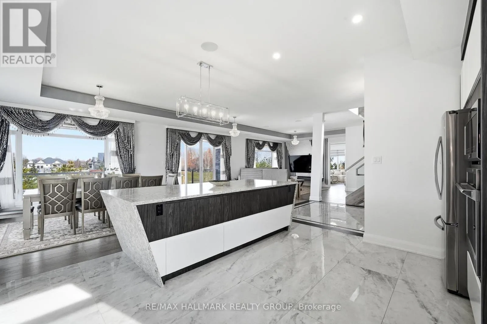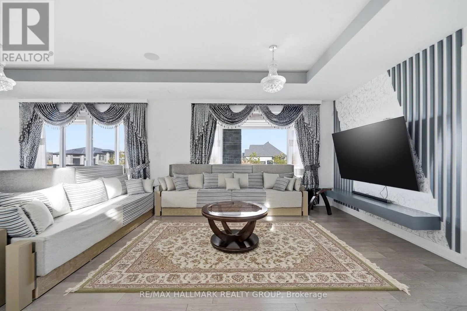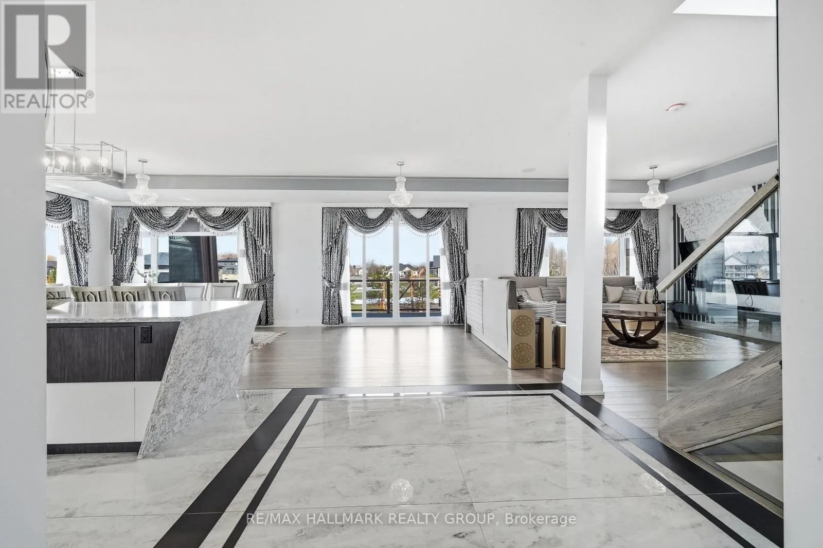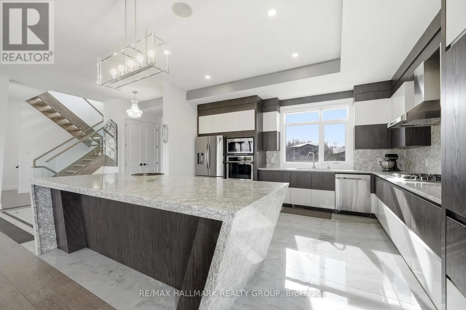 Cross Streets: Stagecoach Road and Lakeshore Drive. ** Directions: Stagecoach Road, East on Lakeshore Drive, East on Cadieux Way, South on Summerview Terrace. Welcome to this exceptional custom-built 2 storey home offering modern luxury and expansive indoor-outdoor living, set on a 0.94-acre property in the sought-after community of Greely. With 2,970 sq ft above grade, this home blends architectural elegance with everyday functionality. The striking exterior features a sophisticated combination of stone and contemporary finishes. A welcoming front porch leads to the main entrance, while the property offers a 3 car garage and an expansive driveway accommodating up to 12 vehicles, with RV parking available. Inside, the home showcases bright, open living spaces ideal for both comfort & entertaining. The gourmet kitchen features sleek modern cabinetry, built-in stainless steel appliances, and an oversized waterfall stone island. Large windows fill the space with natural light, while direct access to the main floor balcony creates seamless indoor-outdoor living. The main level also includes a bedroom and separate 3pc bathroom with walk-in shower, offering flexibility for guests or multi-generational living. Upstairs are 3 spacious bedrooms, each with its own walk-in closet and private ensuite, plus convenient second-floor laundry. The expansive wrap-around second-floor terrace is a standout feature. Combined with the main balcony, the outdoor spaces total approximately 2,400 sq ft and include gas lines for BBQs or heaters. The partially finished lower level (approx. 1,200 sq ft) offers excellent potential for additional living space with a bathroom rough-in and separate access to the garage, ideal for a future in-law suite. Additional features include alarm system, security cameras, sound system (including balconies), central vacuum on all levels, garden sprinkler system, and gas line ready for a backup generator. Large yard with plenty of space for outdoor enjoyment. Located in Greely, this property offers peaceful estate living just a short drive to schools, parks, golf courses, and Ottawa's south-end amenities! (id:27476)
