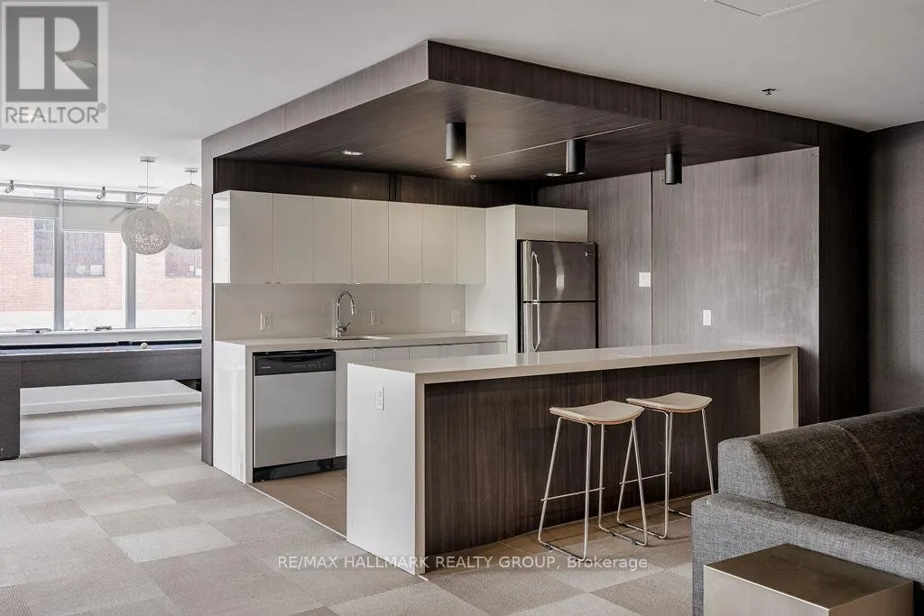Cross Streets: Bank St. at McLeod St. ** Directions: North on Bank St., right on McLeod. Welcome to Unit 203 at 360 McLeod St. - Central 2! This chic & modern style condo apartment offers an unbeatable location in Centretown Ottawa, which leaves you within walkable distance from all shops, amenities, great trendy restaurants, Lansdowne Park & TD Place, Parliament Hill, the canal & many walking/biking paths & if driving, only 1 minute from both East & West hwy 417 access! Building amenities include: Outdoor swimming pool, gym, party room, outdoor space & BBQ area. This 1 bed + Den unit boasts hardwood floors throughout, an open concept floorplan that is functional, & high-end finishes. As you enter the unit, there is a walk-in closet for coats/shoes, etc. that is combined with in-unit laundry (stacked washer/dryer); then the open living/dining & kitchen areas are filled with natural light by the wall-to-wall windows. Kitchen boasts glossy red & white cabinets, quartz countertops, & stainless steel appliances. Primary bedroom offers tons of space, large closet and roller blinds, and there is a Den that also has sliding doors and could be fully enclosed. Large 20' balcony facing North gives you all of the day's sunlight. Tenant pays Hydro. Available immediately! (id:27476)