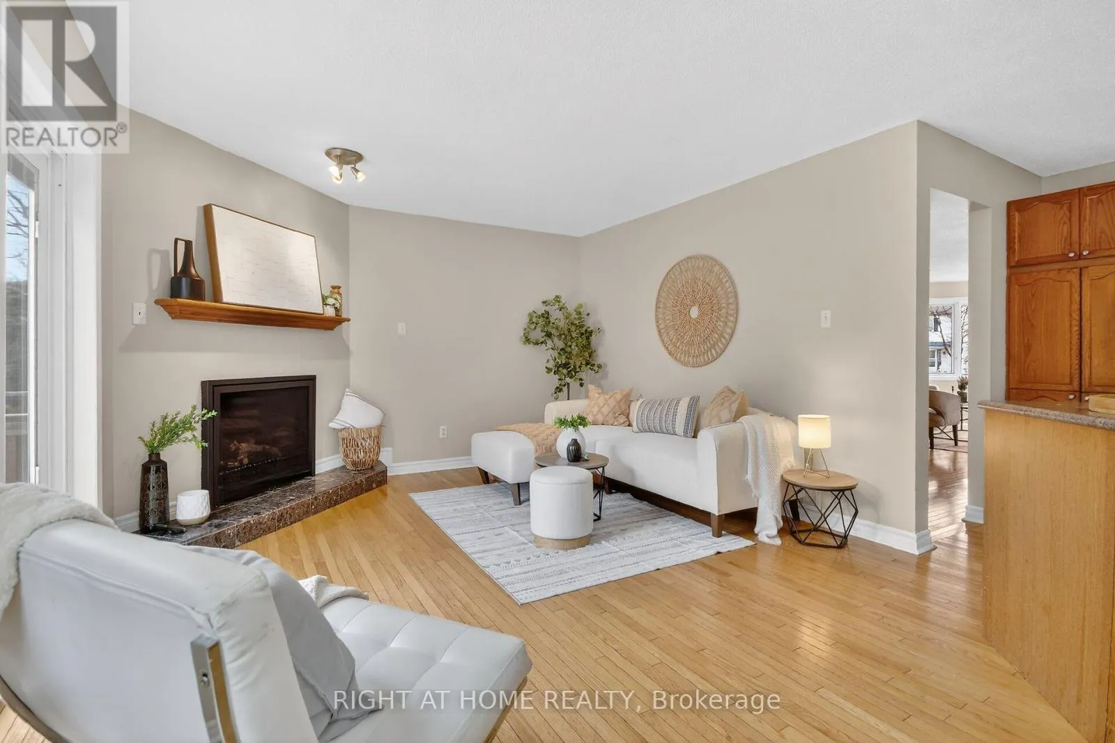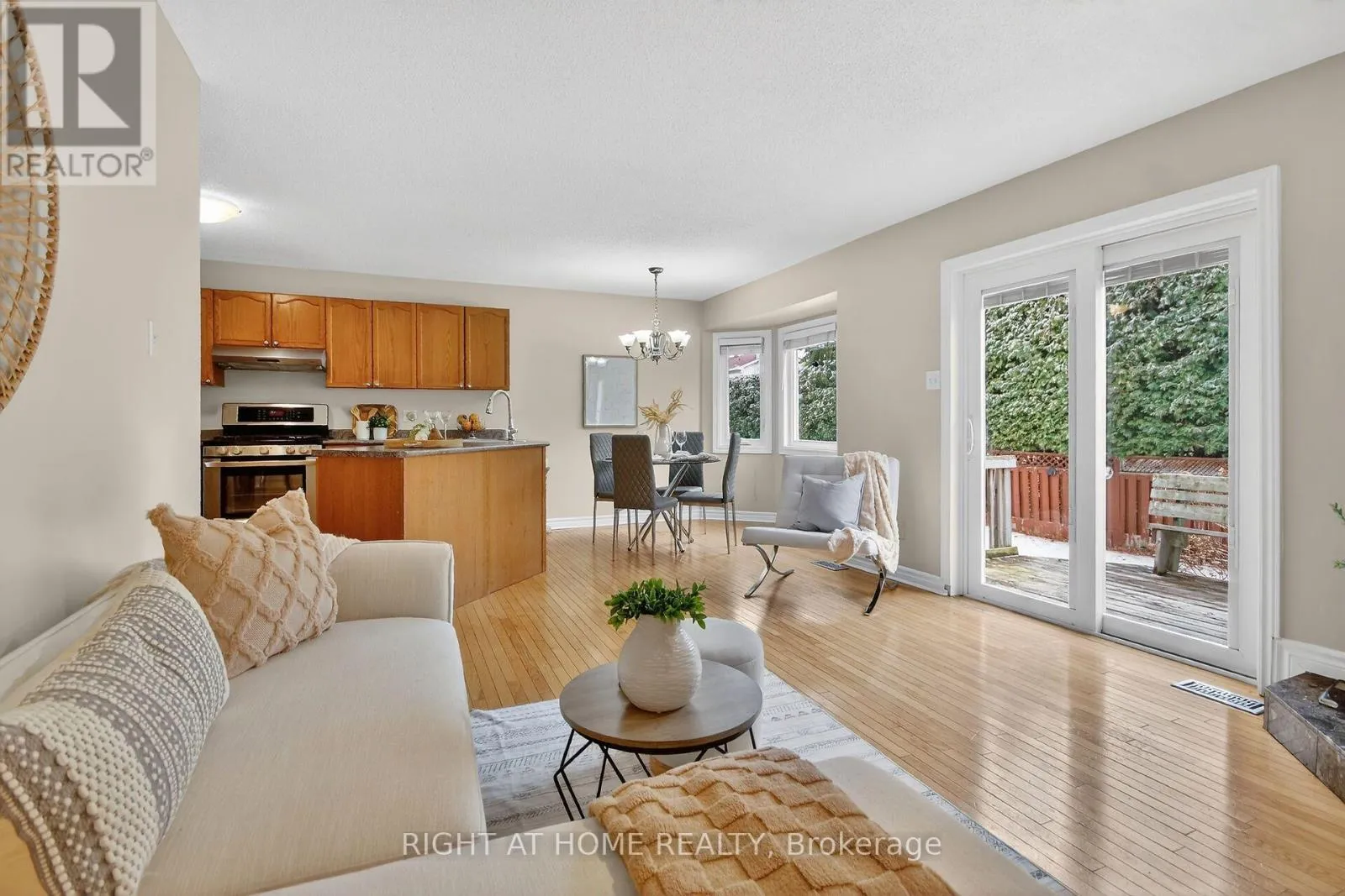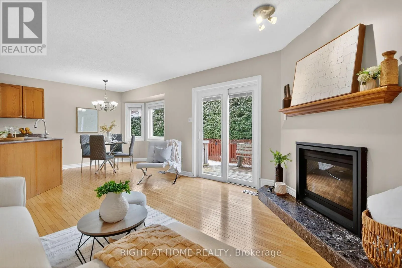 Cross Streets: Abbott and Amy. ** Directions: Hazeldean to right on Abbott, Right on Amy Right on Kathleen, right on Randall James. This is a beautiful bungalow offering 3 beds and 2 baths on the main floor in a sought-after Stittsville neighbourhood. A double-car garage and convenient main-floor laundry make downsizing easy without sacrificing space or storage.The bright, open-concept living and dining area features hardwood flooring and a large bay window, creating the perfect setting for everyday living and entertaining. The well-appointed kitchen offers abundant cabinetry and flows seamlessly into the cozy family room with a stunning gas fireplace. From the kitchen, step out to a spacious deck overlooking a very private backyard, ideal for relaxing or hosting guests.The primary bedroom features new carpeting, a walk-in closet, and a 3-piece ensuite. Two additional bedrooms also include new carpeting and share the main bathroom; with the third bedroom easily adaptable as a home office or den.The unfinished basement provides excellent storage or the opportunity to finish the space to suit your needs.Recent updates include furnace (2015), gas fireplace (2024), dryer (2024), and newer windows (except front), New washing machine. Conveniently located close to parks, public transit, and the Trans Canada Trail, with easy access to the Cardel Rec. Centre, grocery stores, restaurants, cafés, and fitness centres. (id:27476)