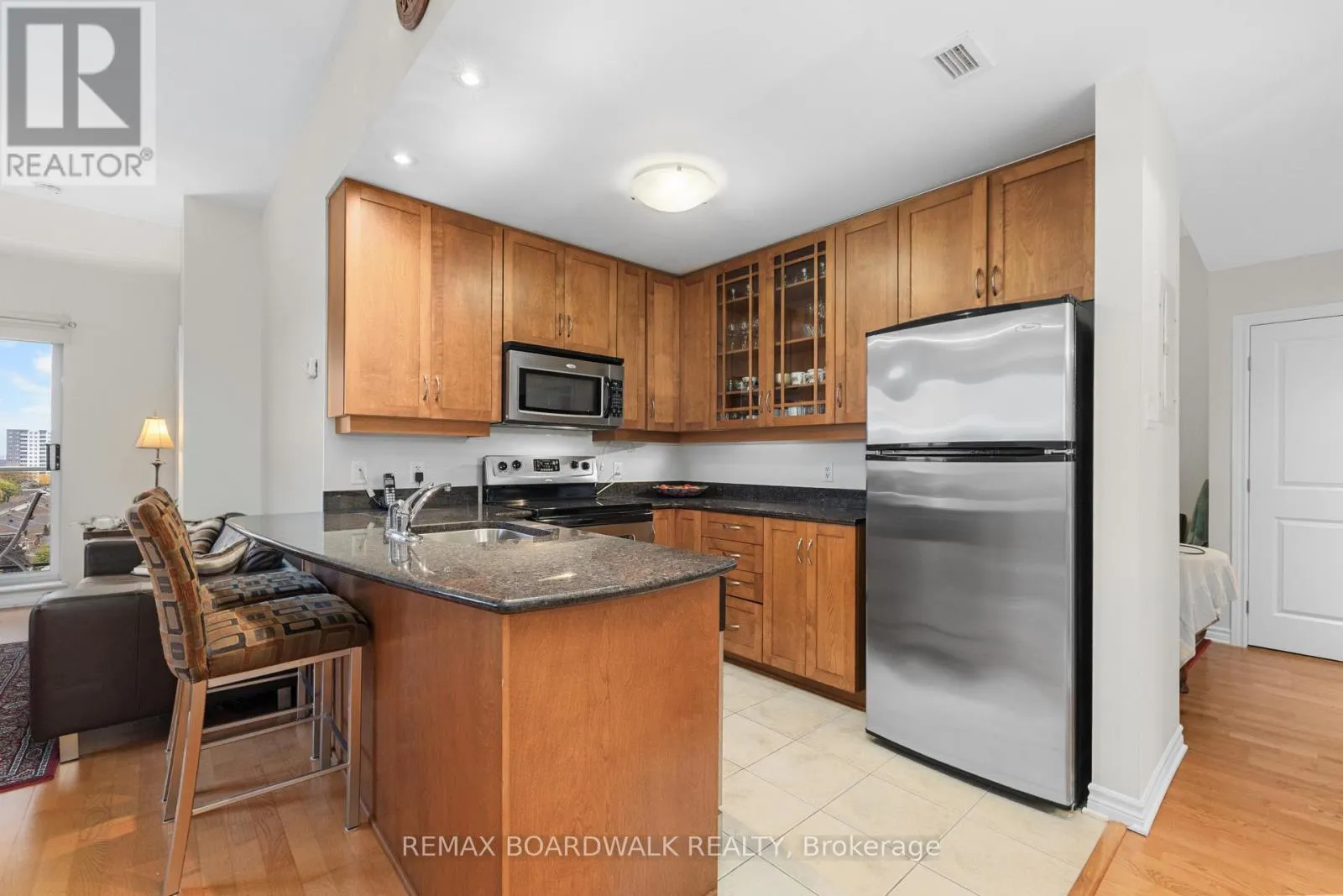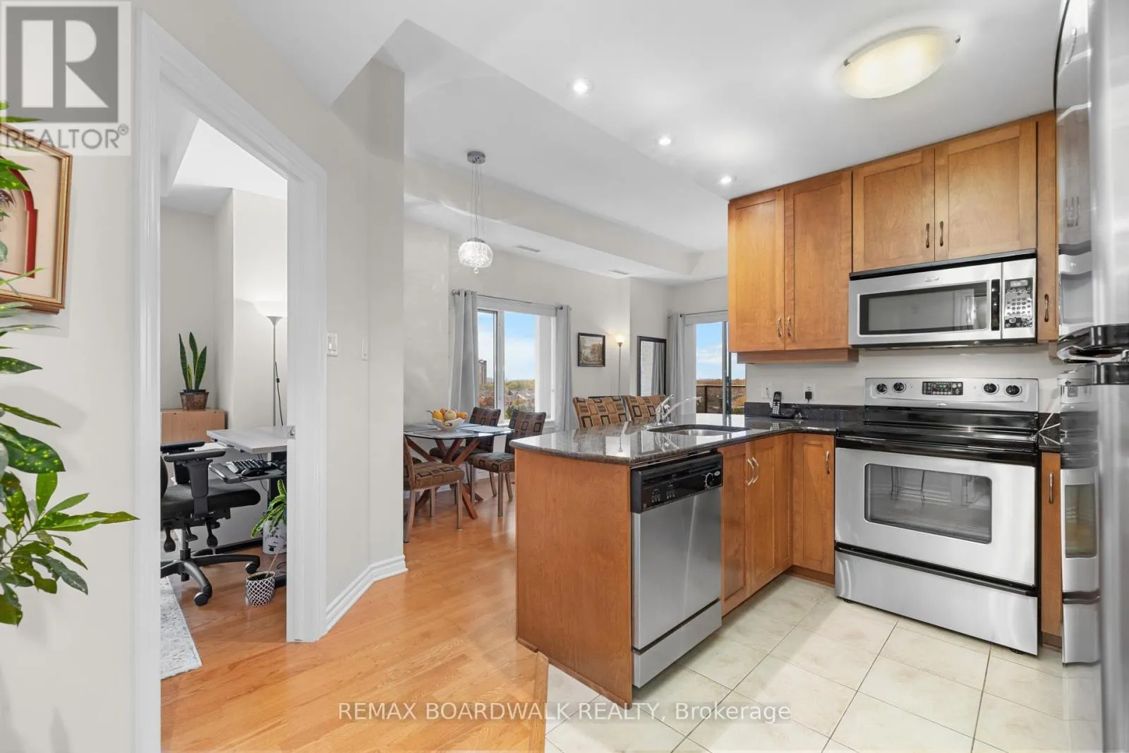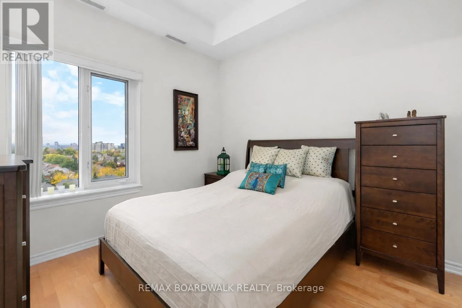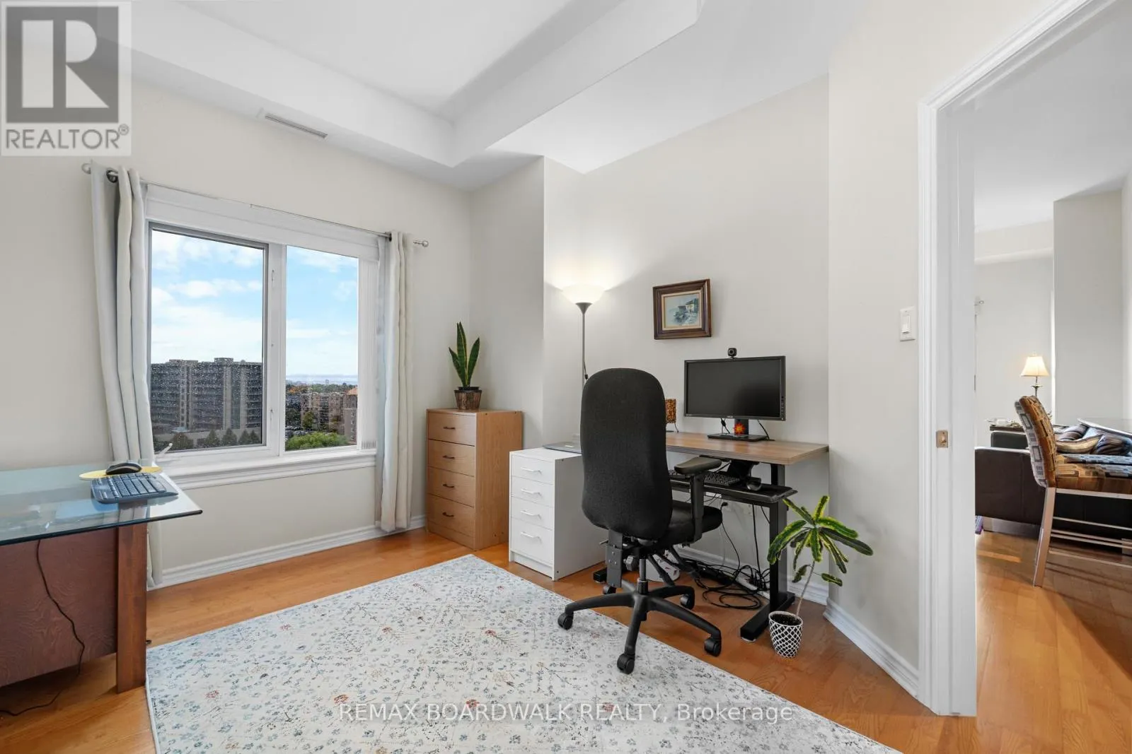Cross Streets: Merivale and Baseline. ** Directions: From Merivale Road & Baseline Drive. North on Merivale Road. Turn Left @ Central Park Drive. Turn Right @ 310 & 314 Central Park entry. Ample visitors parking. Welcome to corner penthouse living in an unbeatable lifestyle location. Unit 1004 is a bright 2 bedroom + den, 2 bathroom corner penthouse offering sweeping sunset views across the Gatineau Hills, the Central Experimental Farm, Celebration Park's ponds, and the surrounding skyline. Located on the top floor with no neighbour above, soaring ceilings and oversized windows create an airy feel while filling the home with natural light. The oversized private balcony provides a rare vantage point for evening skies and unobstructed Canada Day fireworks, making it the perfect space to relax or entertain. Enjoy immediate access to the Central Experimental Farm's walking and cycling paths, while nearby Celebration Park features ponds, a splash pad, tennis courts, soccer pitch, skating rink, and playgrounds. Daily conveniences including Loblaws, Walmart, Food Basics, Maryam Super Market, Tim Hortons, and a variety of restaurants are just minutes away, with two OC Transpo routes conveniently located right outside the building.Inside, the eat-in kitchen features granite countertops, stainless steel appliances, a breakfast bar, and builder luxury upgrades including display ("curio") cabinets. Hardwood flooring runs throughout the main living areas, complemented by Hunter Douglas blinds and blackout curtains. The primary bedroom includes a walk-in closet and spa-inspired ensuite, while the second bedroom and versatile den provide flexible space for guests, a home office, or hobbies. Custom shelving in all closets maximizes storage, and in-suite laundry adds everyday convenience.Lovingly maintained as an owner-occupied residence (never rented), the home shows clear pride of ownership throughout. Building amenities include a fitness room, party room, free car wash bay, and EV charging station. Parking, storage, bike storage, and heating and cooling are included in the condo fee of $641. A rare opportunity to enjoy top-floor privacy, spectacular views, and a fabulous location. (id:27476)