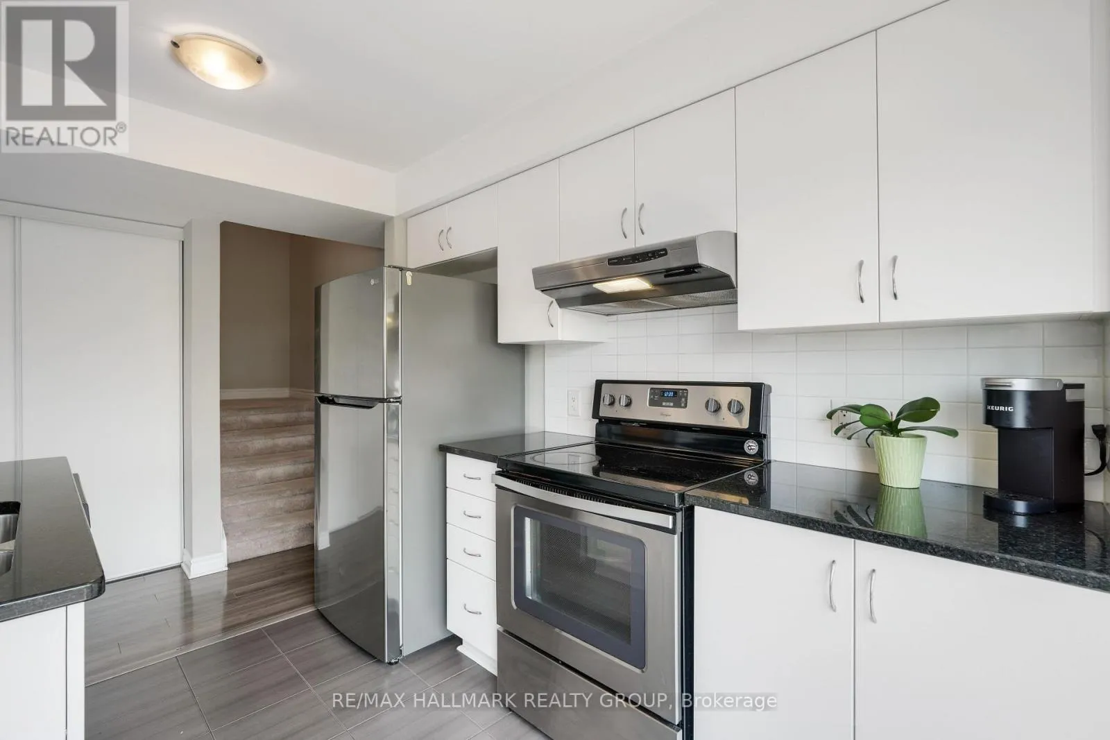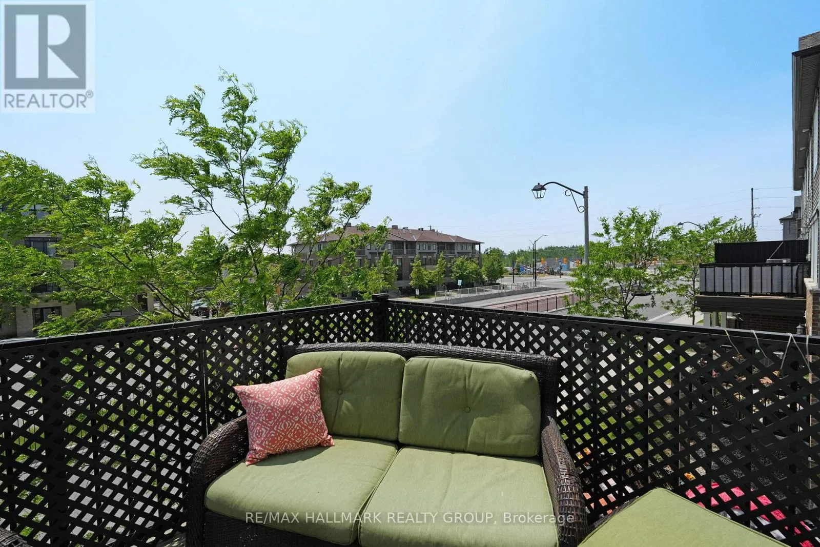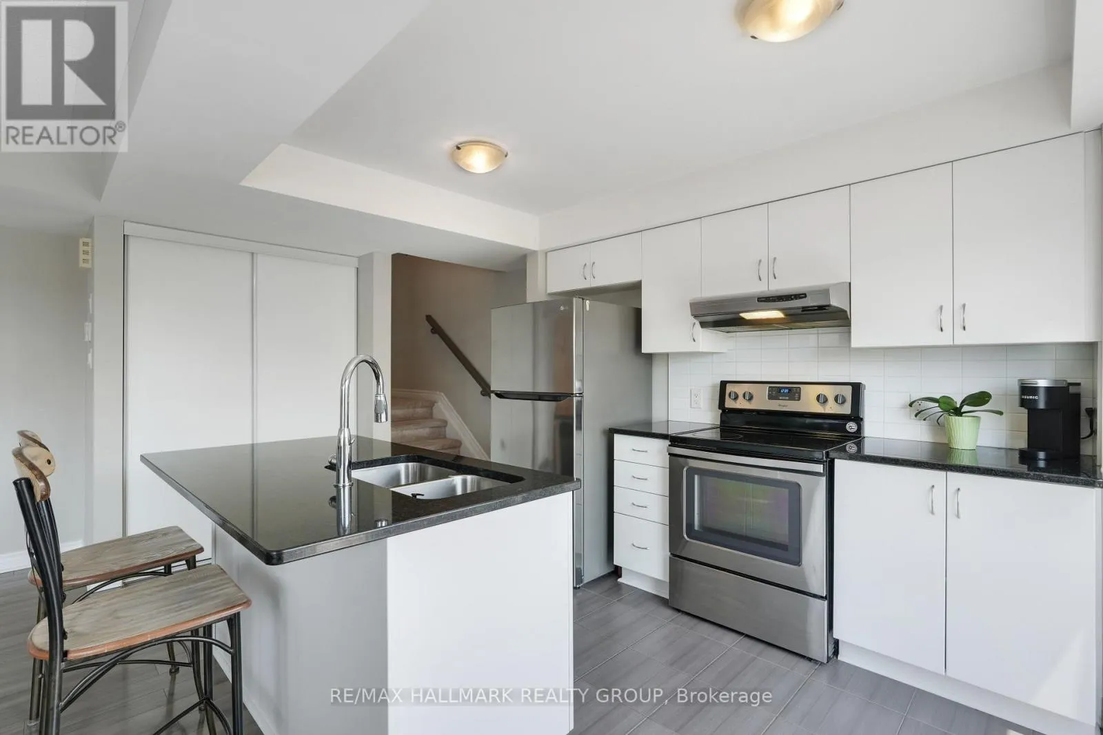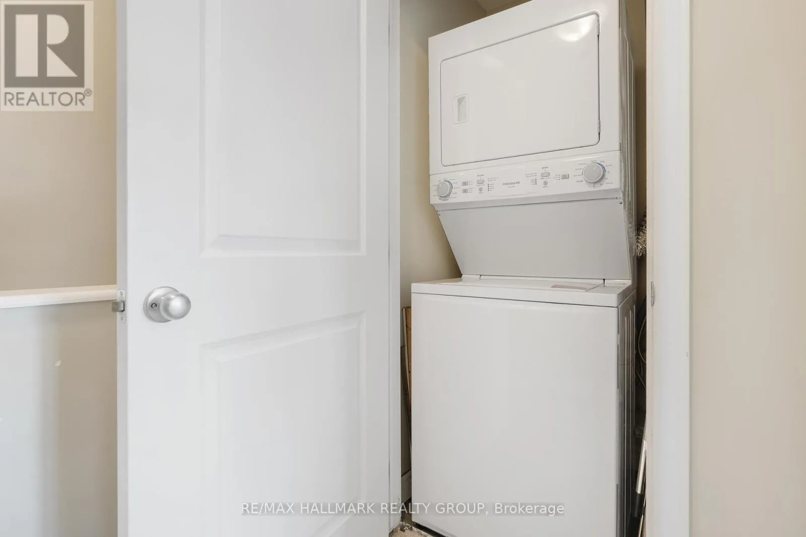 Cross Streets: Chapman Mills & Longfields. ** Directions: South on Woodroffe Avenue to Chapman Mills then turn West (right) property is on the northwest side of road (right) side just before Longfields Drive. Note: parking located behind the building. OPEN HOUSE: SUNDAY, MARCH 22, 2:00-4:00 PM. Stylish Upper End-Unit Condo in the Heart of Barrhaven. Welcome to this bright and beautifully maintained 2-bedroom, 1.5-bathroom upper end-unit condo, ideally located just steps from the vibrant amenities of Chapman Mills Marketplace. Enjoy the convenience of having restaurants, shops, Loblaws, a movie theatre, parks, and transit all within easy walking distance. Designed with comfort and style in mind, this home features an open-concept layout enhanced by abundant natural light from its desirable eastern exposure. The modern white kitchen is both elegant and functional, showcasing quartz countertops, ceramic tile flooring, stainless-steel appliances, and a large island with breakfast bar-perfect for casual dining or entertaining. The spacious living and dining areas feature wide plank grey laminate flooring, large windows with custom window coverings, and direct access to a generous private balcony-an ideal space to enjoy your morning coffee or evening BBQ. Upstairs, you'll find two generously sized bedrooms with wall-to-wall closets and neutral broadloom, along with a well-appointed 4-piece bathroom featuring ceramic tile flooring and a tiled tub/shower. A convenient second-floor laundry closet adds everyday practicality. Additional highlights include a dedicated parking space and ample visitor parking nearby. Perfectly suited for first-time buyers, professionals, downsizers, or investors, this move-in ready home offers exceptional value in one of Barrhaven's most walkable and connected neighbourhoods. With transit at your doorstep-including a direct 25-minute bus ride to downtown Ottawa-and monthly ownership costs comparable to renting, this is an outstanding opportunity to own in a sought-after community (id:27476)
