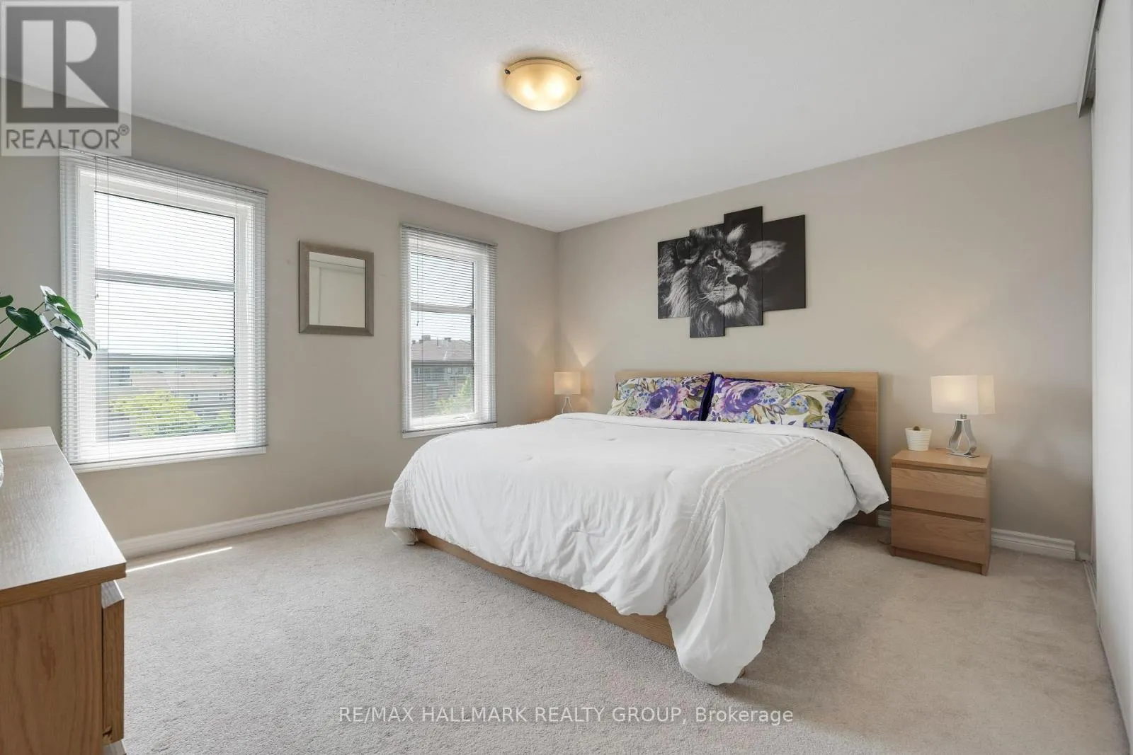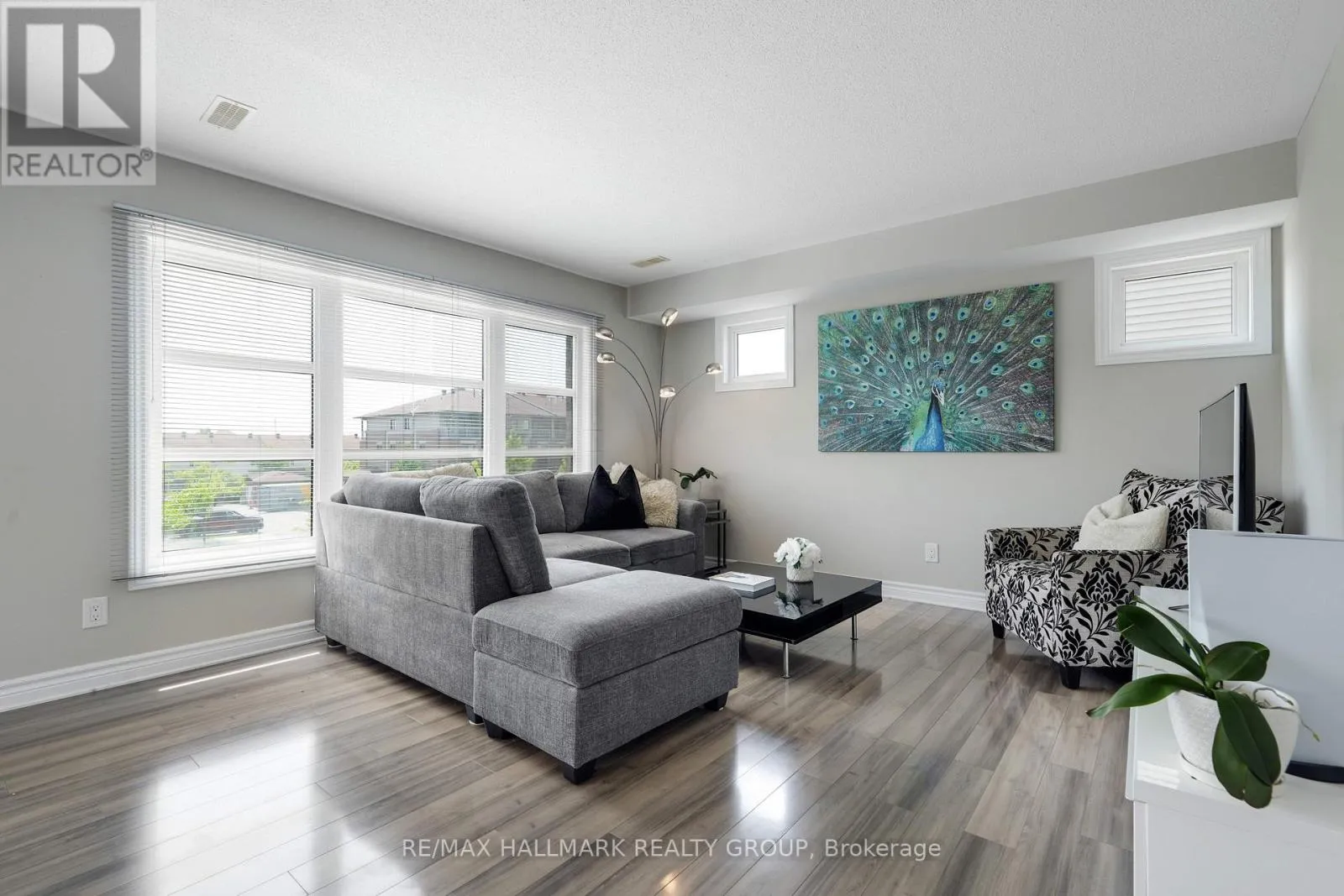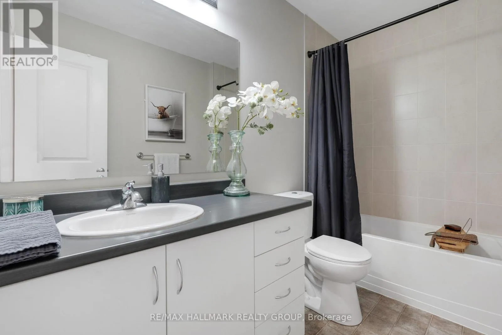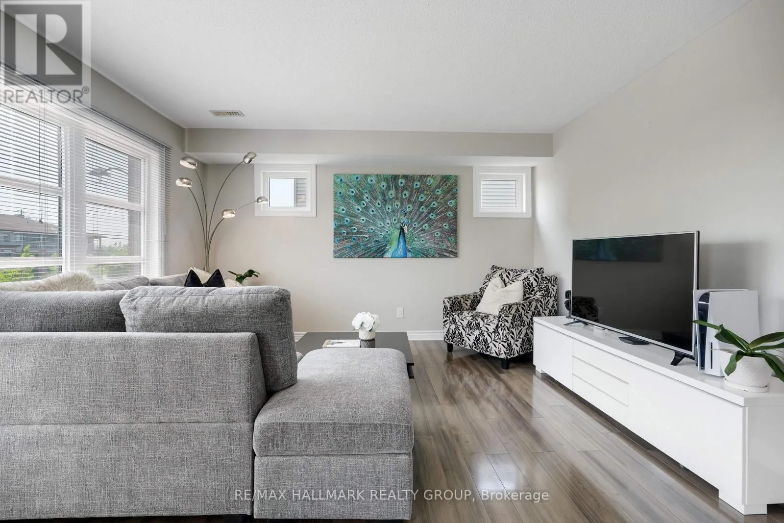 Cross Streets: Chapman Mills & Longfields. ** Directions: South on Woodroffe Avenue to Chapman Mills then turn West (right) property is on the northwest side of road (right) side just before Longfields Drive. Note: parking located behind the building. OPEN HOUSE: SUNDAY, MARCH 22, 2:00-4:00 PM. Stylish Upper End-Unit Condo in the Heart of Barrhaven. Welcome to this bright and beautifully maintained 2-bedroom, 1.5-bathroom upper end-unit condo, ideally located just steps from the vibrant amenities of Chapman Mills Marketplace. Enjoy the convenience of having restaurants, shops, Loblaws, a movie theatre, parks, and transit all within easy walking distance. Designed with comfort and style in mind, this home features an open-concept layout enhanced by abundant natural light from its desirable eastern exposure. The modern white kitchen is both elegant and functional, showcasing quartz countertops, ceramic tile flooring, stainless-steel appliances, and a large island with breakfast bar-perfect for casual dining or entertaining. The spacious living and dining areas feature wide plank grey laminate flooring, large windows with custom window coverings, and direct access to a generous private balcony-an ideal space to enjoy your morning coffee or evening BBQ. Upstairs, you'll find two generously sized bedrooms with wall-to-wall closets and neutral broadloom, along with a well-appointed 4-piece bathroom featuring ceramic tile flooring and a tiled tub/shower. A convenient second-floor laundry closet adds everyday practicality. Additional highlights include a dedicated parking space and ample visitor parking nearby. Perfectly suited for first-time buyers, professionals, downsizers, or investors, this move-in ready home offers exceptional value in one of Barrhaven's most walkable and connected neighbourhoods. With transit at your doorstep-including a direct 25-minute bus ride to downtown Ottawa-and monthly ownership costs comparable to renting, this is an outstanding opportunity to own in a sought-after community (id:27476)
