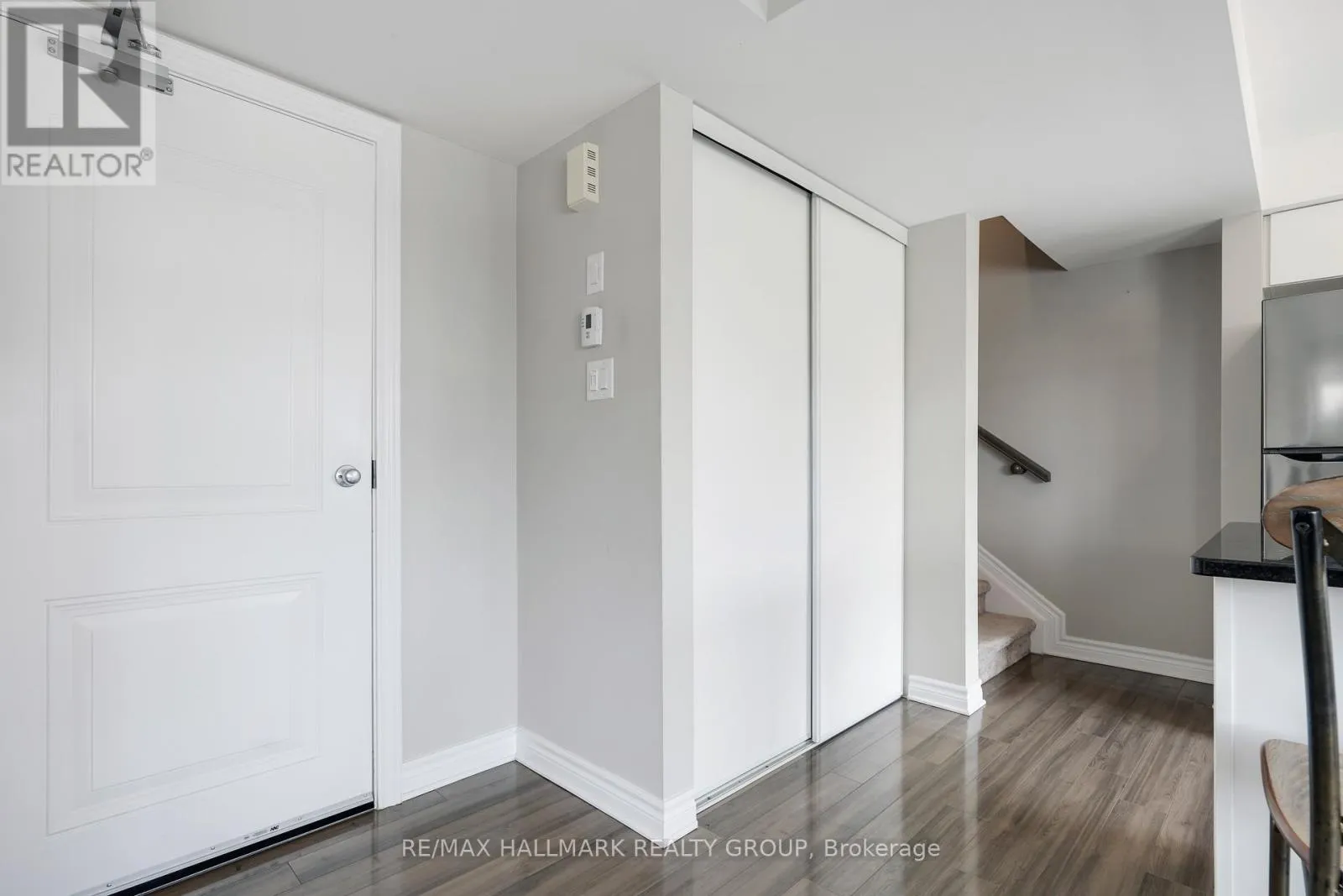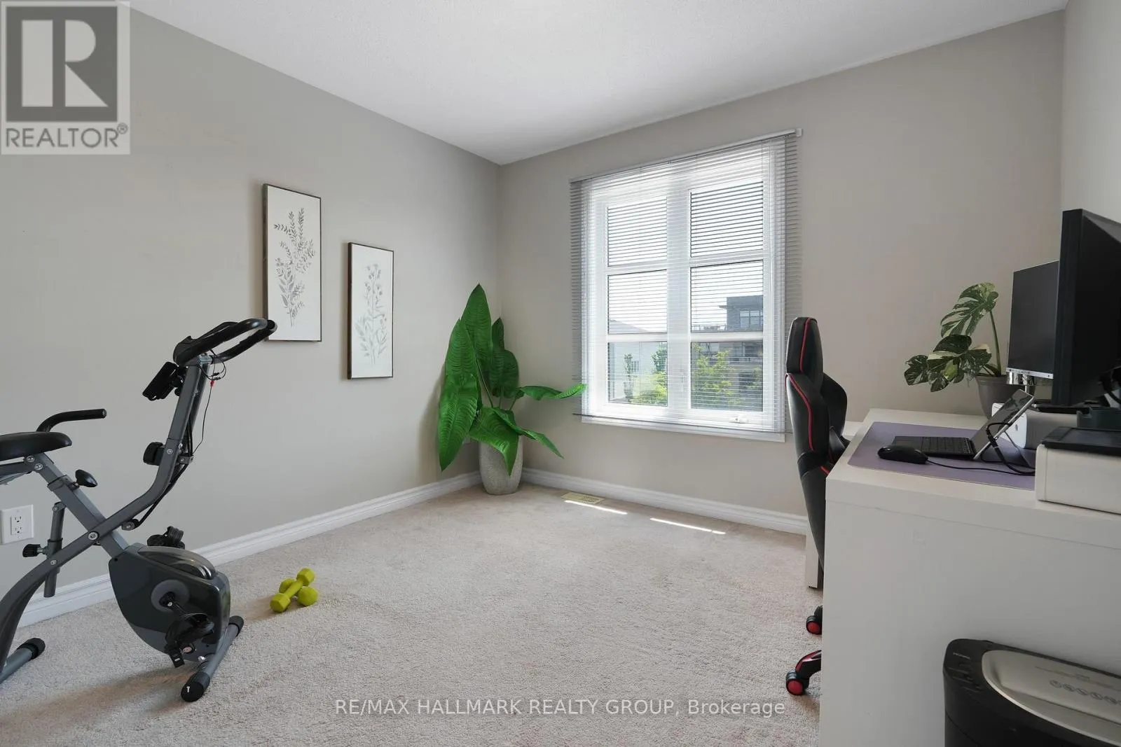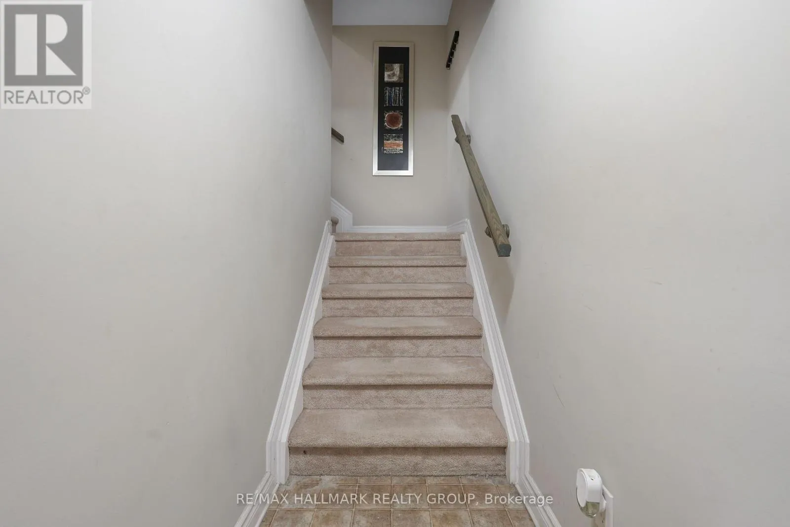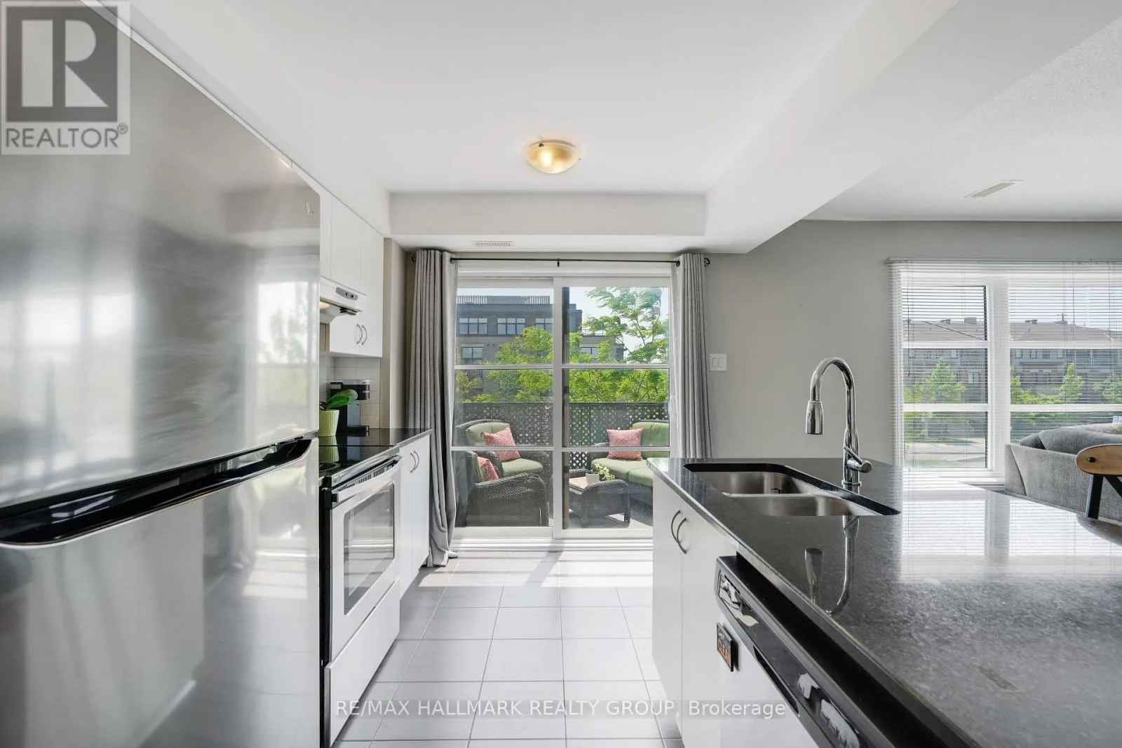 Cross Streets: Chapman Mills & Longfields. ** Directions: South on Woodroffe Avenue to Chapman Mills then turn West (right) property is on the northwest side of road (right) side just before Longfields Drive. Note: parking located behind the building. OPEN HOUSE: SUNDAY, MARCH 22, 2:00-4:00 PM. Stylish Upper End-Unit Condo in the Heart of Barrhaven. Welcome to this bright and beautifully maintained 2-bedroom, 1.5-bathroom upper end-unit condo, ideally located just steps from the vibrant amenities of Chapman Mills Marketplace. Enjoy the convenience of having restaurants, shops, Loblaws, a movie theatre, parks, and transit all within easy walking distance. Designed with comfort and style in mind, this home features an open-concept layout enhanced by abundant natural light from its desirable eastern exposure. The modern white kitchen is both elegant and functional, showcasing quartz countertops, ceramic tile flooring, stainless-steel appliances, and a large island with breakfast bar-perfect for casual dining or entertaining. The spacious living and dining areas feature wide plank grey laminate flooring, large windows with custom window coverings, and direct access to a generous private balcony-an ideal space to enjoy your morning coffee or evening BBQ. Upstairs, you'll find two generously sized bedrooms with wall-to-wall closets and neutral broadloom, along with a well-appointed 4-piece bathroom featuring ceramic tile flooring and a tiled tub/shower. A convenient second-floor laundry closet adds everyday practicality. Additional highlights include a dedicated parking space and ample visitor parking nearby. Perfectly suited for first-time buyers, professionals, downsizers, or investors, this move-in ready home offers exceptional value in one of Barrhaven's most walkable and connected neighbourhoods. With transit at your doorstep-including a direct 25-minute bus ride to downtown Ottawa-and monthly ownership costs comparable to renting, this is an outstanding opportunity to own in a sought-after community (id:27476)